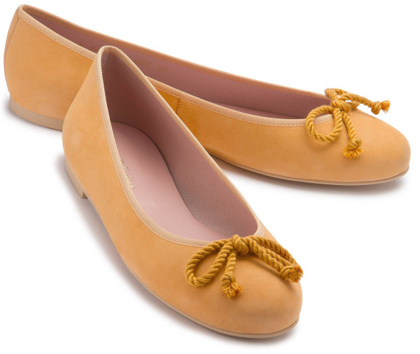 Absolut fein und alltagstauglich zeigt sich dieser edle Ballerina des spanischen Labels Pretty Ballerinas aus weichem Nubukleder in Orange mit einer edlen Schleife auf der Vorderkappe.