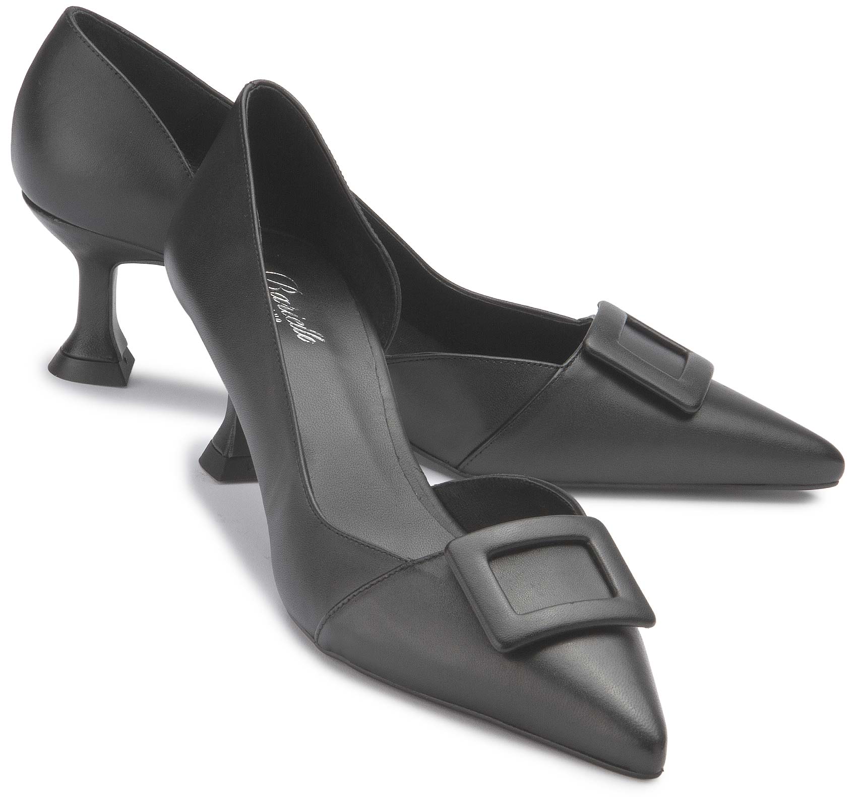 Aus hochwertigem Glattleder gefertigt, verspricht dieser Pump von Bariello lang anhaltenden Tragekomfort. Was die Pumps wirklich unvergesslich macht, sind die kunstvoll platzierten Broschen auf der Schuhspitze. Vervollständigen Sie Ihre Garderobe mit diesem fantastischen Schuh.