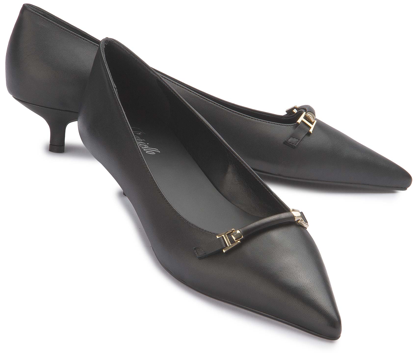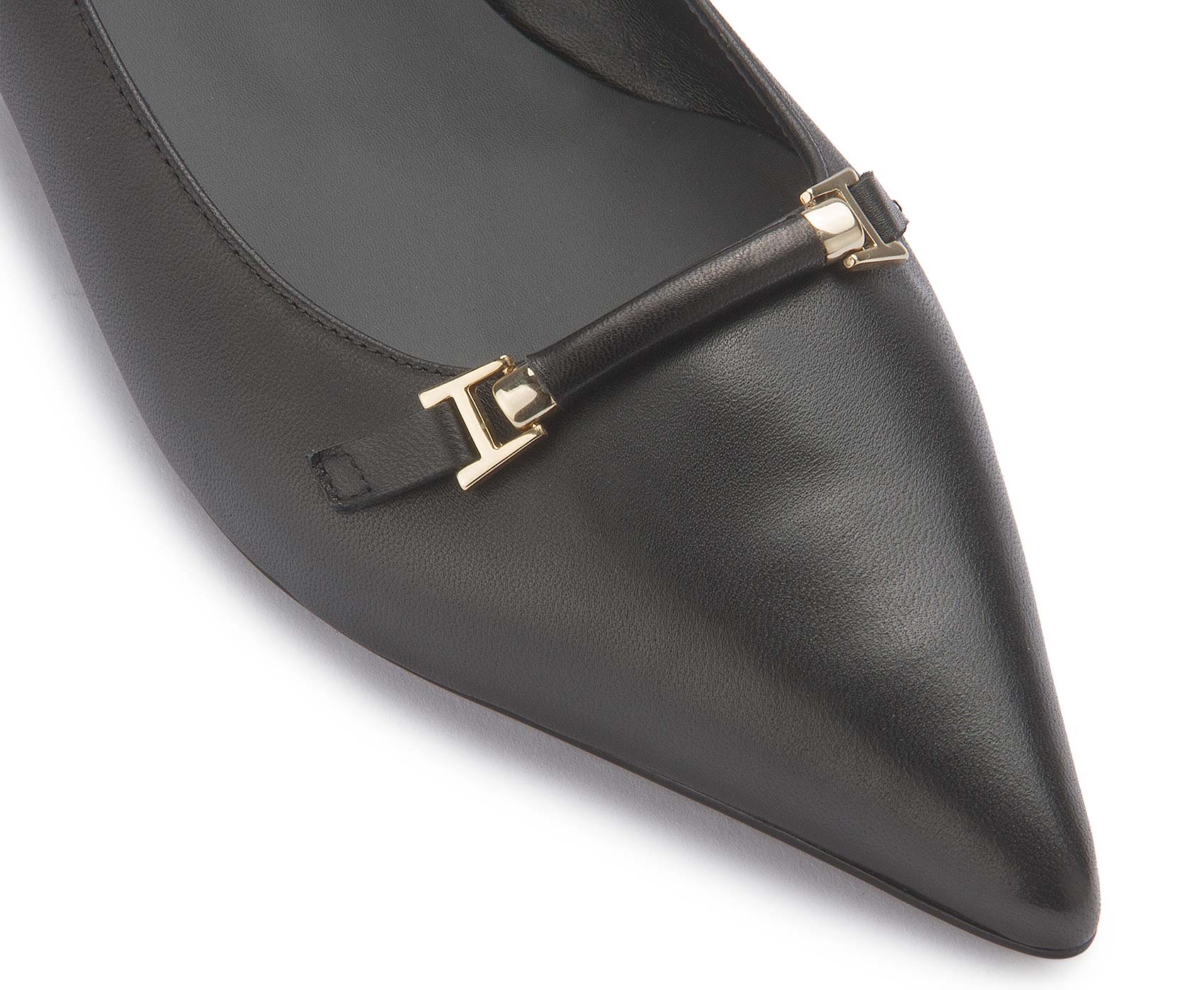 Diese eleganten Pumps von Bariello vereinen klassische Raffinesse mit modernem Minimalismus. Das feine Glattleder, die spitze Silhouette und das goldfarbene Zierdetail sorgen für einen edlen Look – perfekt für Büro, Dinner oder festliche Anlässe.