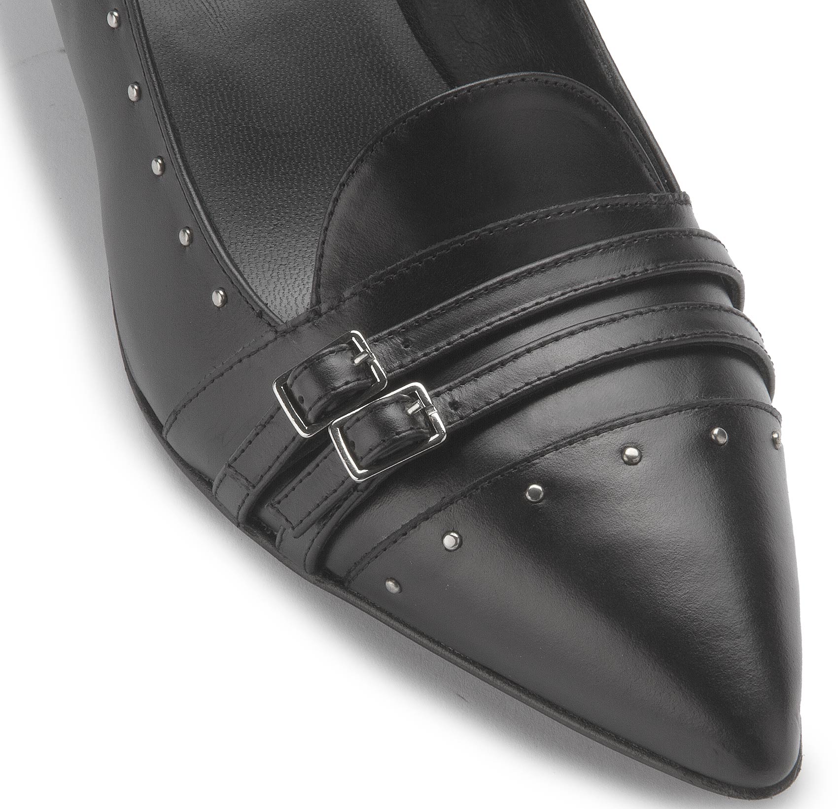 Dieser elegante Pump von Bariello setzt mit seinen silbernen Nieten stylische Akzente und verleiht dem klassischen Design eine moderne, punkige Note. Das edle schwarze Leder und die bequeme Passform bieten optimalen Tragekomfort und machen diesen Schuh zur perfekten Wahl für modebewusste Frauen, die Wert auf einen individuellen Look legen. Ideal für besondere Anlässe oder den Abend, wenn ein Hauch von Extravaganz gefragt ist.
