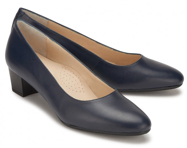 Das Schuh-Innere ist professionell ausgepolstert und zudem mit feinstem Kalbleder ausgestattet. Durch das Kalbleder ist bestes Schuhklima garantiert. Diese Pumps zieht man an und hat nicht das Gefühl nach einiger Zeit wieder auf flachere Schuhe wechseln zu müssen. Die Absatzhöhe beträgt 3 cm und ist somit sehr bequem zu tragen. Die Außensohle ist das Herzstück dieses Schuhs, denn die Flexibilität, lässt keine Wünsche offen und das Gummi ist rutschfest.
