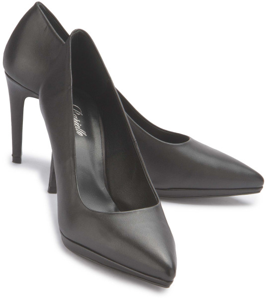 Die Pumps von Bariello in elegantem Schwarz sind eine stilvolle und elegante Wahl für jede Garderobe. Die weiche Innenausstattung garantiert hohen Tragekomfort, während der Stieletto-Absatz dem Schuh eine besondere Note verleiht. Vielseitig einsetzbar, passen diese Pumps perfekt zu formellen und legeren Outfits und sind ideal für Büro, Abendessen oder Partys.