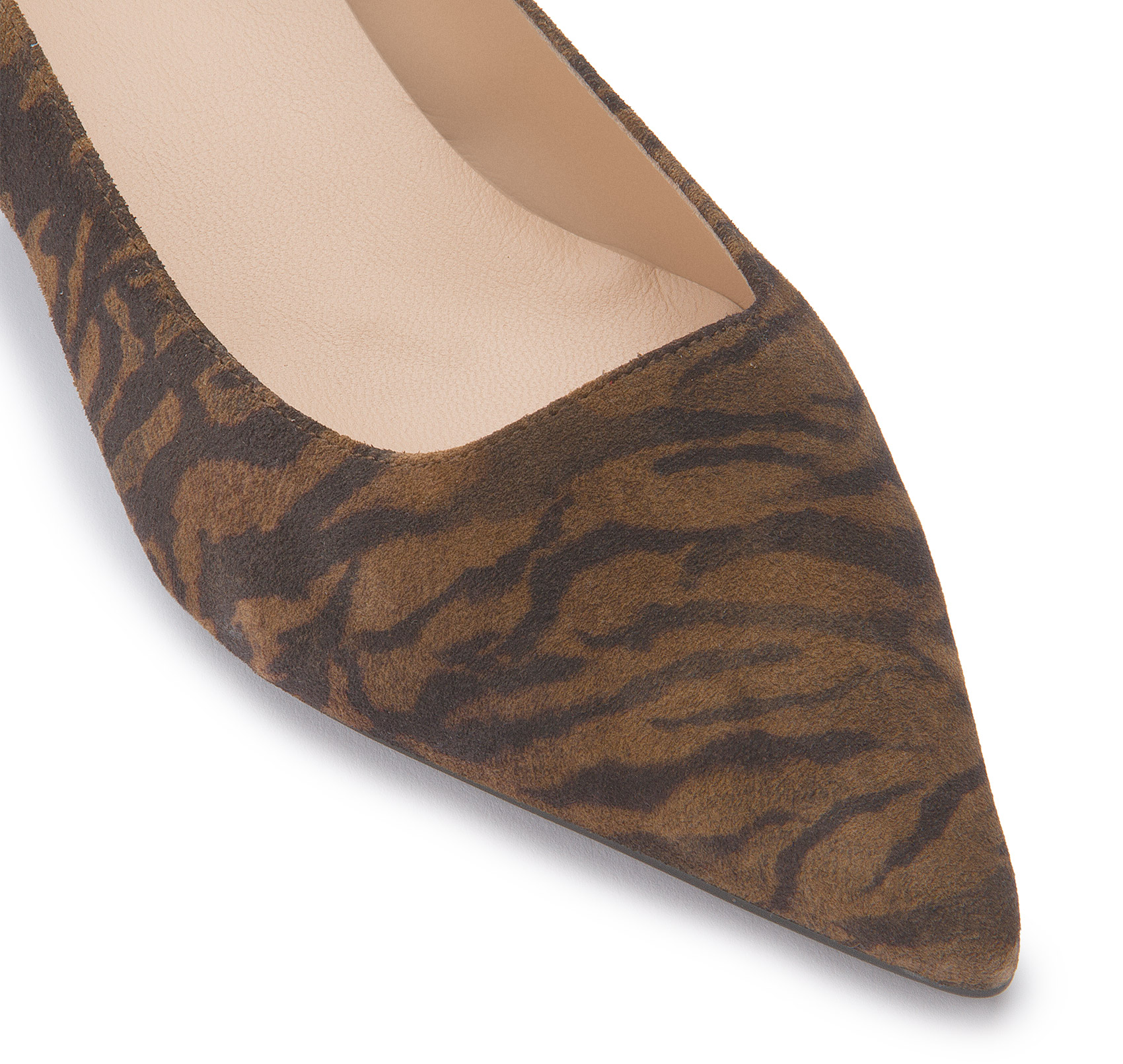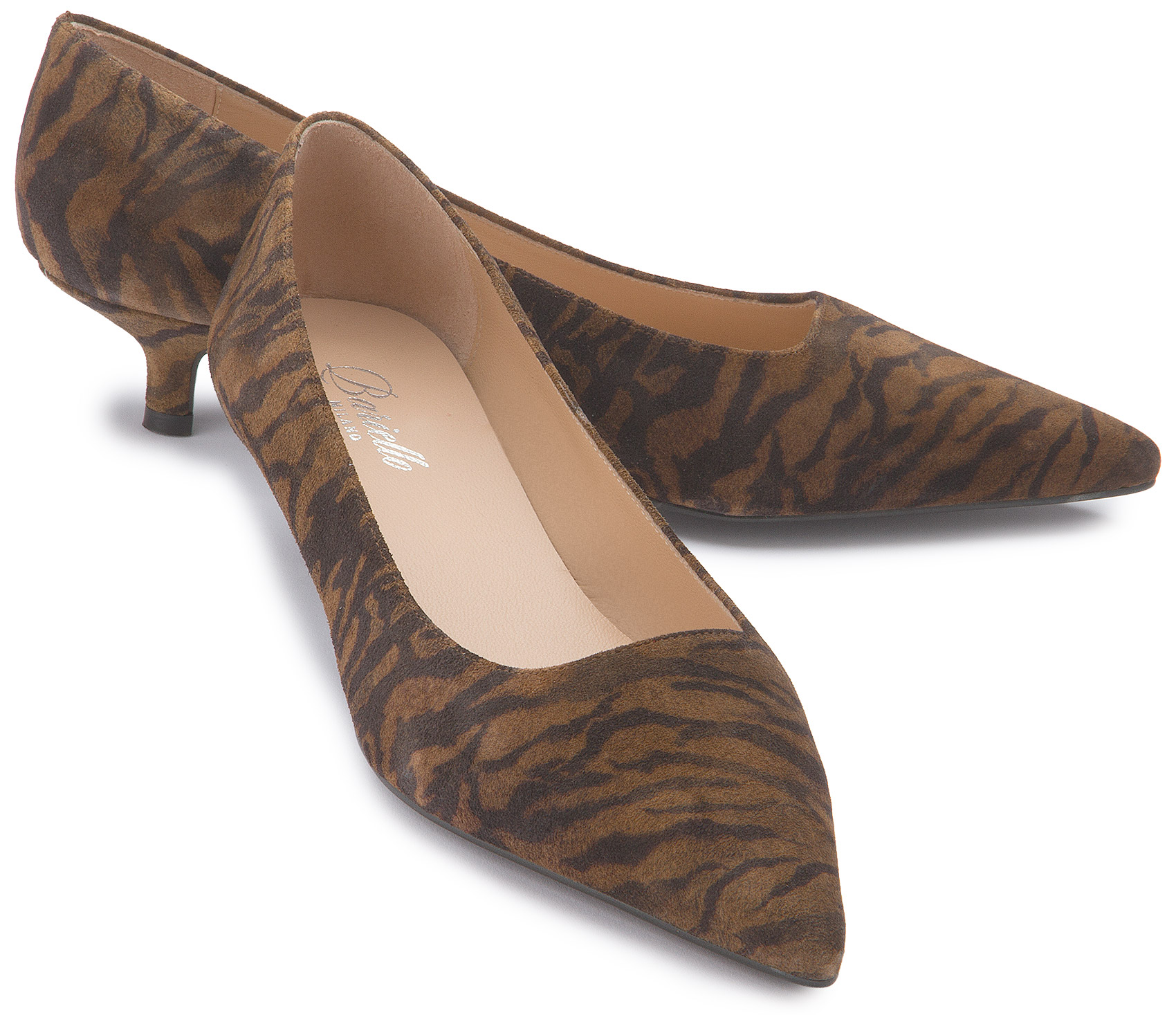 Zeitlos und edel zeigt sich dieser Bariellos Pumps aus weichem, braunen Rauleder. Klare Linien und ein markantes Zebramuster verleihen ihm eine stilvolle Ausstrahlung mit modischem Statement-Charakter. Ein vielseitiger Allrounder, der Business-Outfits genauso souverän ergänzt wie Looks für besondere Anlässe.