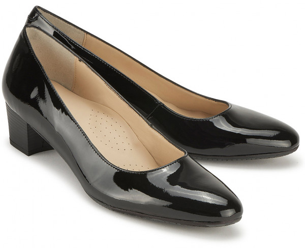 Das Schuh-Innere ist professionell ausgepolstert und zudem mit feinstem Kalbleder ausgestattet. Durch das Kalbleder ist bestes Schuhklima garantiert. Diese Pumps zieht man an und hat nicht das Gefühl nach einiger Zeit wieder auf flachere Schuhe wechseln zu müssen. Die Absatzhöhe beträgt 3 cm und ist somit sehr bequem zu tragen. Die Außensohle ist das Herzstück dieses Schuhs, denn die Flexibilität, lässt keine Wünsche offen und das Gummi ist rutschfest.