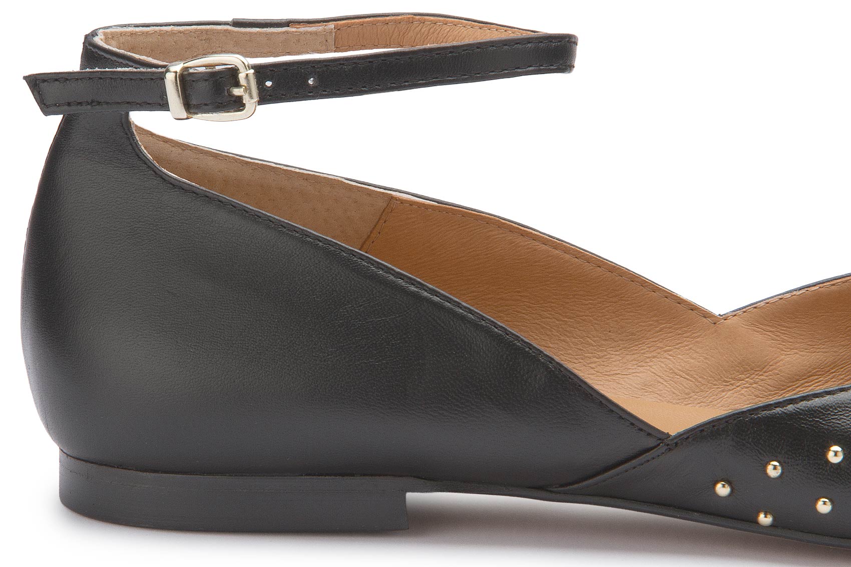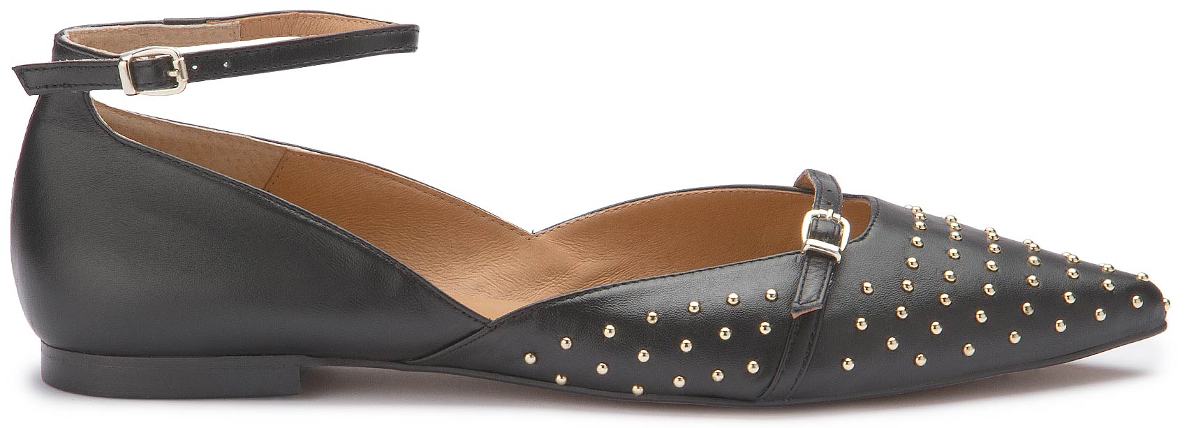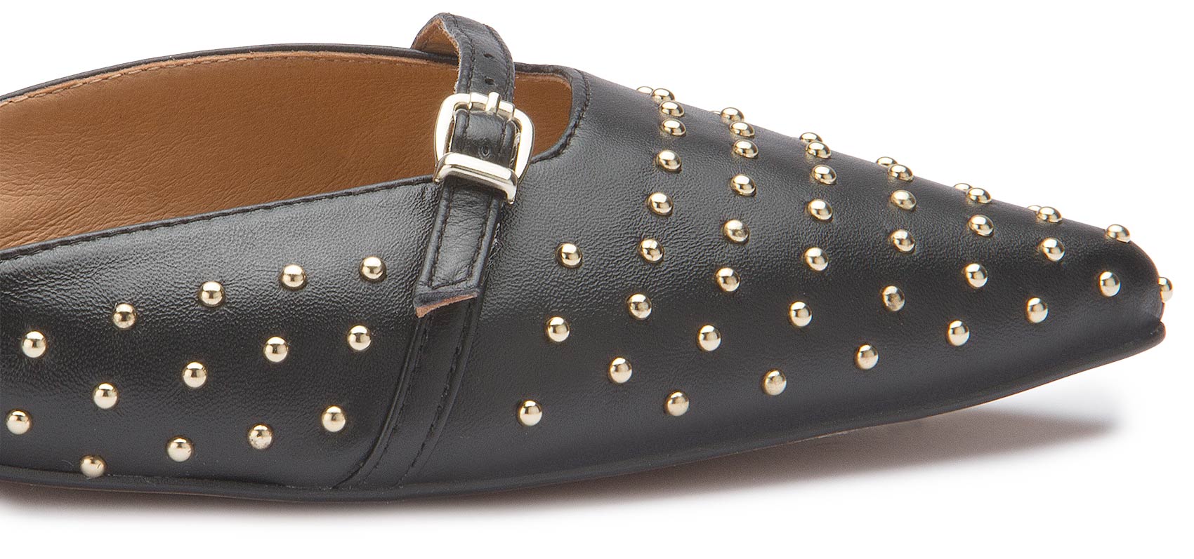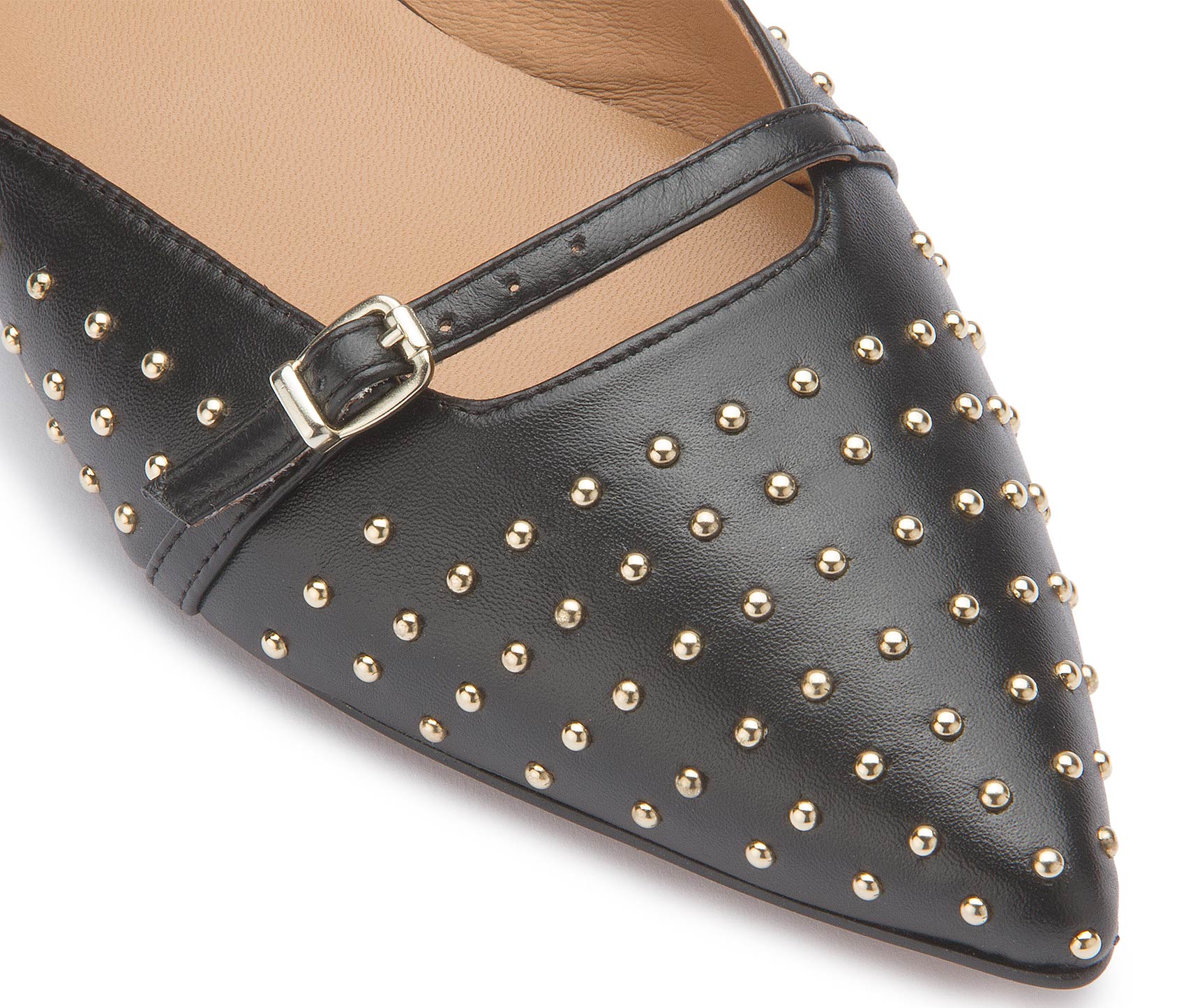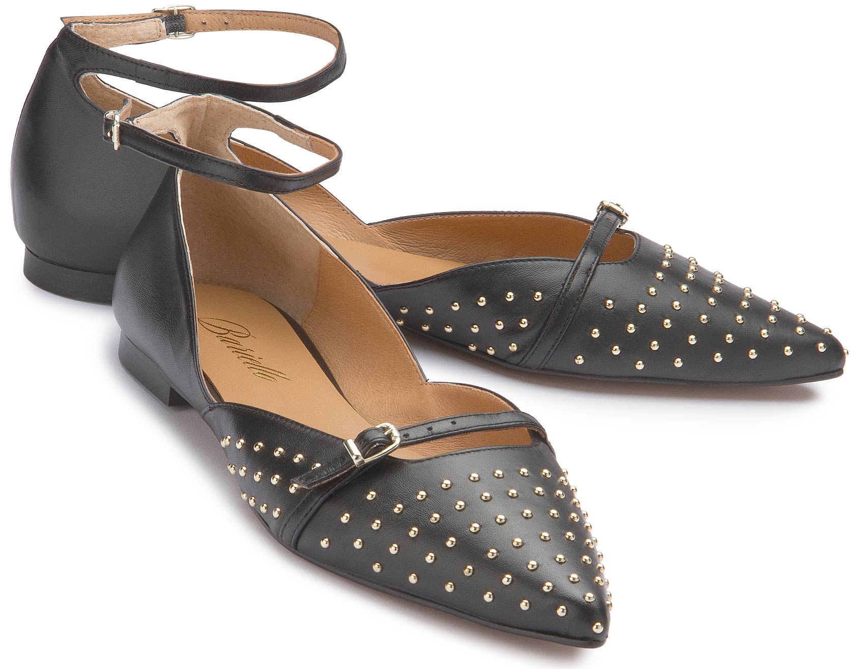 Diese ausdrucksstarke Sandale von Bariello vereint klassisches schwarzes Leder mit edlen goldfarbenen Nieten zu einem modernen Statement-Look. Die spitz zulaufende Form und die feinen Riemchen mit verstellbaren Schnallen sorgen für eine feminine Silhouette und sicheren Halt. Ein stilvoller Begleiter, der schlichte Outfits gekonnt aufwertet und besondere Akzente setzt.