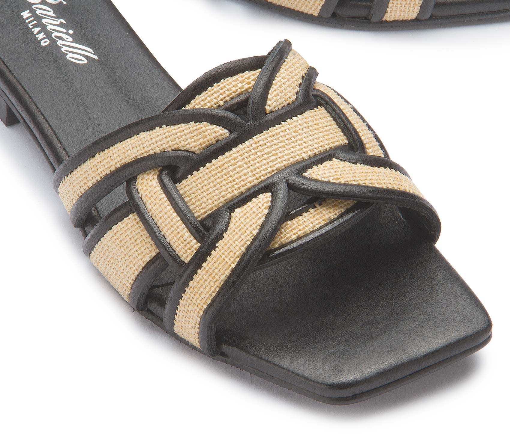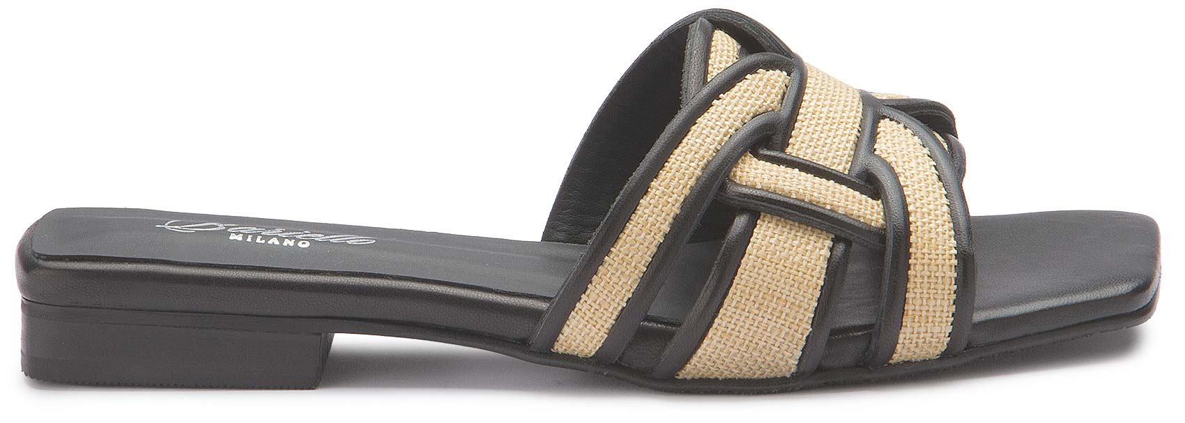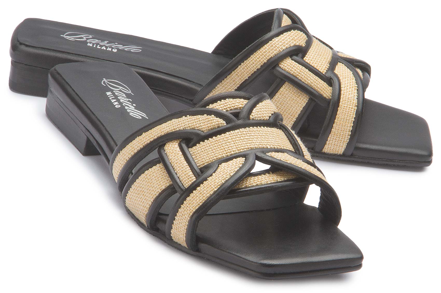Diese Sandale von Bariello Milano überzeugt mit einem stilvollen Materialmix aus strukturierter Oberfläche und feinen Riemendetails. Die geflochten wirkende Optik verleiht dem Design eine besondere Leichtigkeit, während die flache Sohle für angenehmen Tragekomfort sorgt. Ein moderner Schuh, der sommerlichen Outfits eine elegante Note gibt.