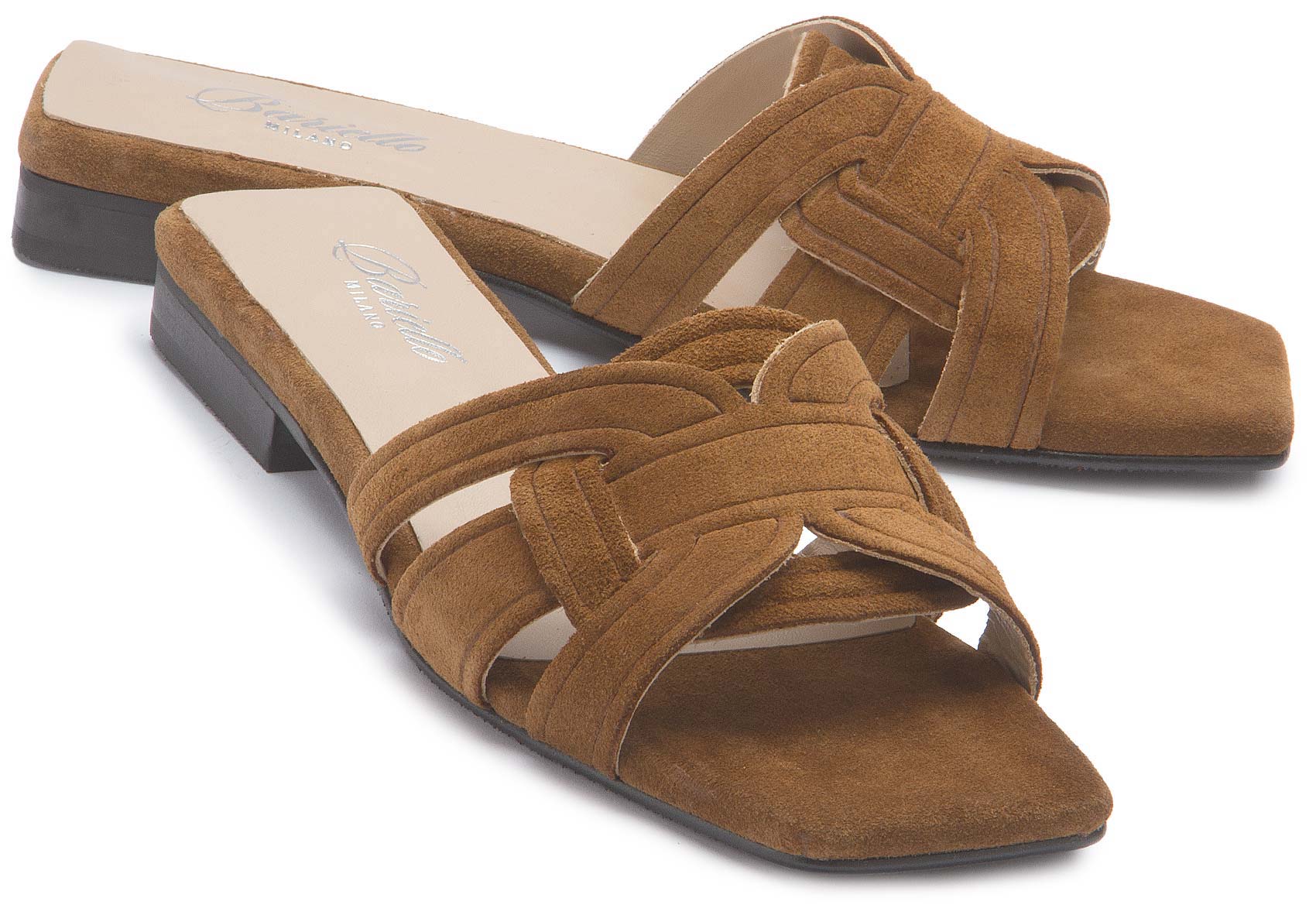 Diese Sandale von Bariello Milano überzeugt mit einem stilvollen Design aus weichem Rauleder und kunstvoll verflochtenen Riemen. Die flache Sohle sorgt für angenehmen Tragekomfort und unterstreicht die lässige Eleganz des Modells. Ein vielseitiger Schuh, der sommerliche Looks modern ergänzt.