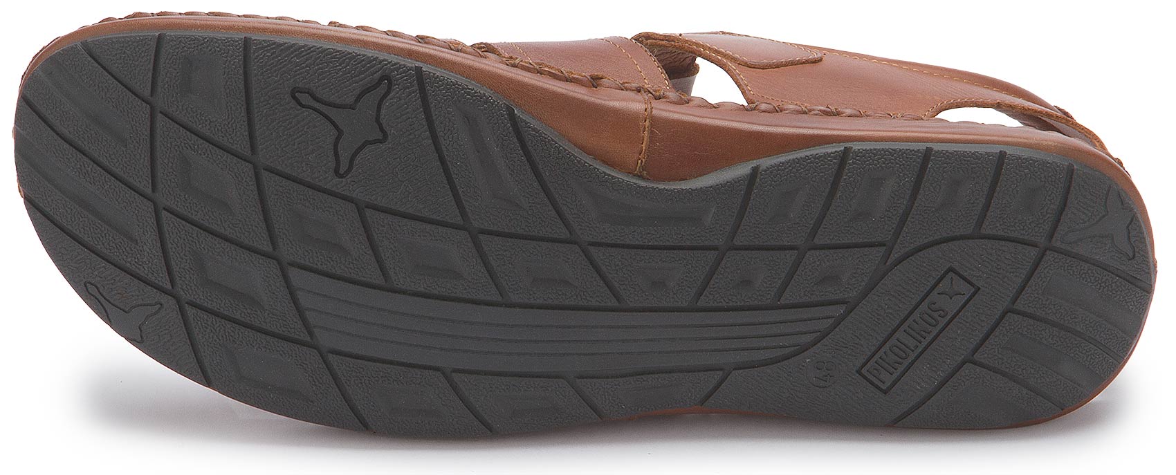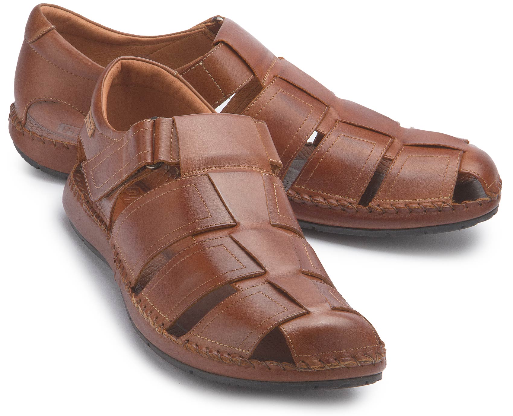 Hier präsentiert sich eine tolle Sandale mit Klettverschluss zum einfachen An-und Ausziehen. Dieses Ledermodell mit handgesteppten Nähten und Klettverschluss passt sich perfekt dem Fuß an.