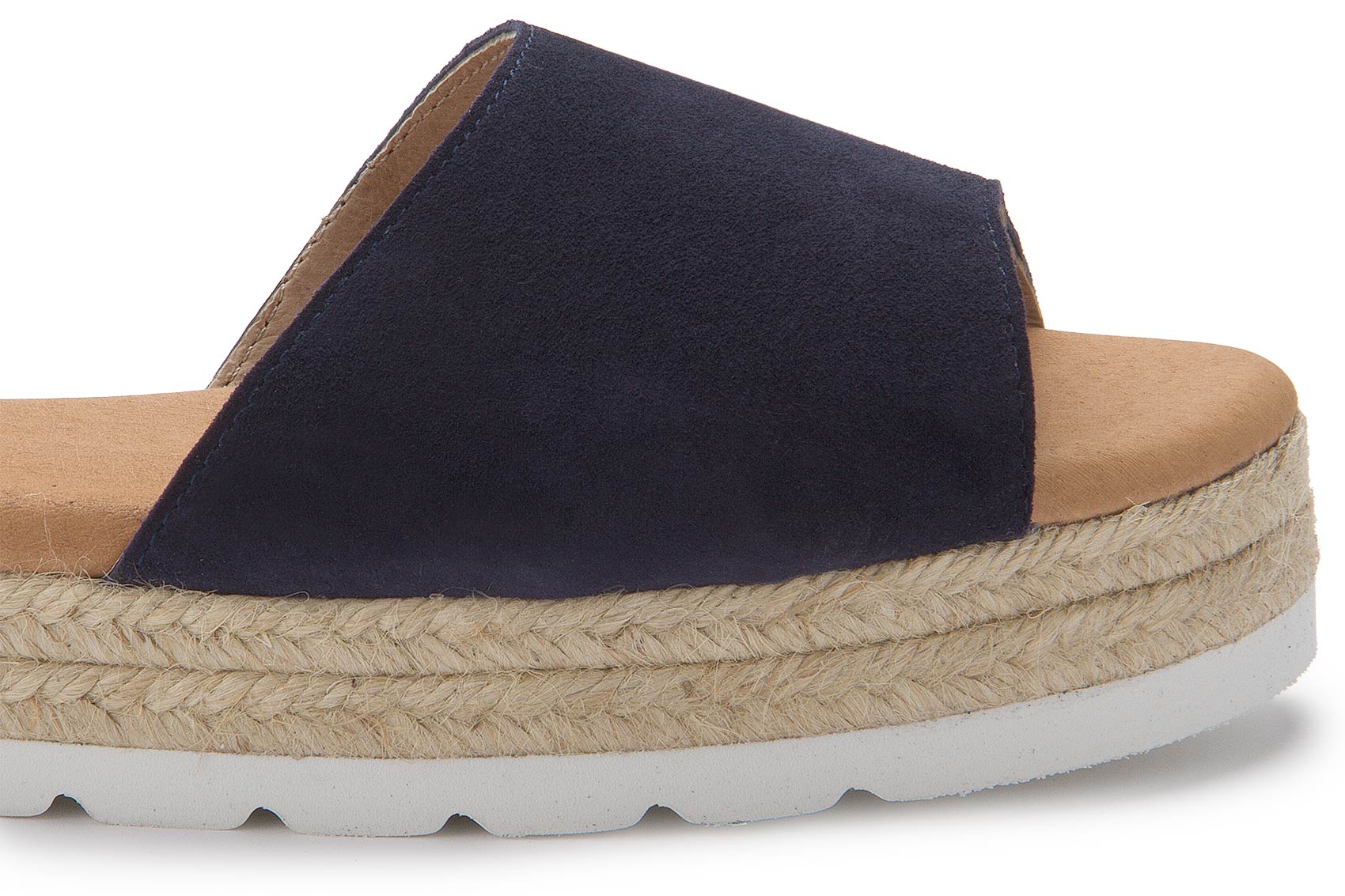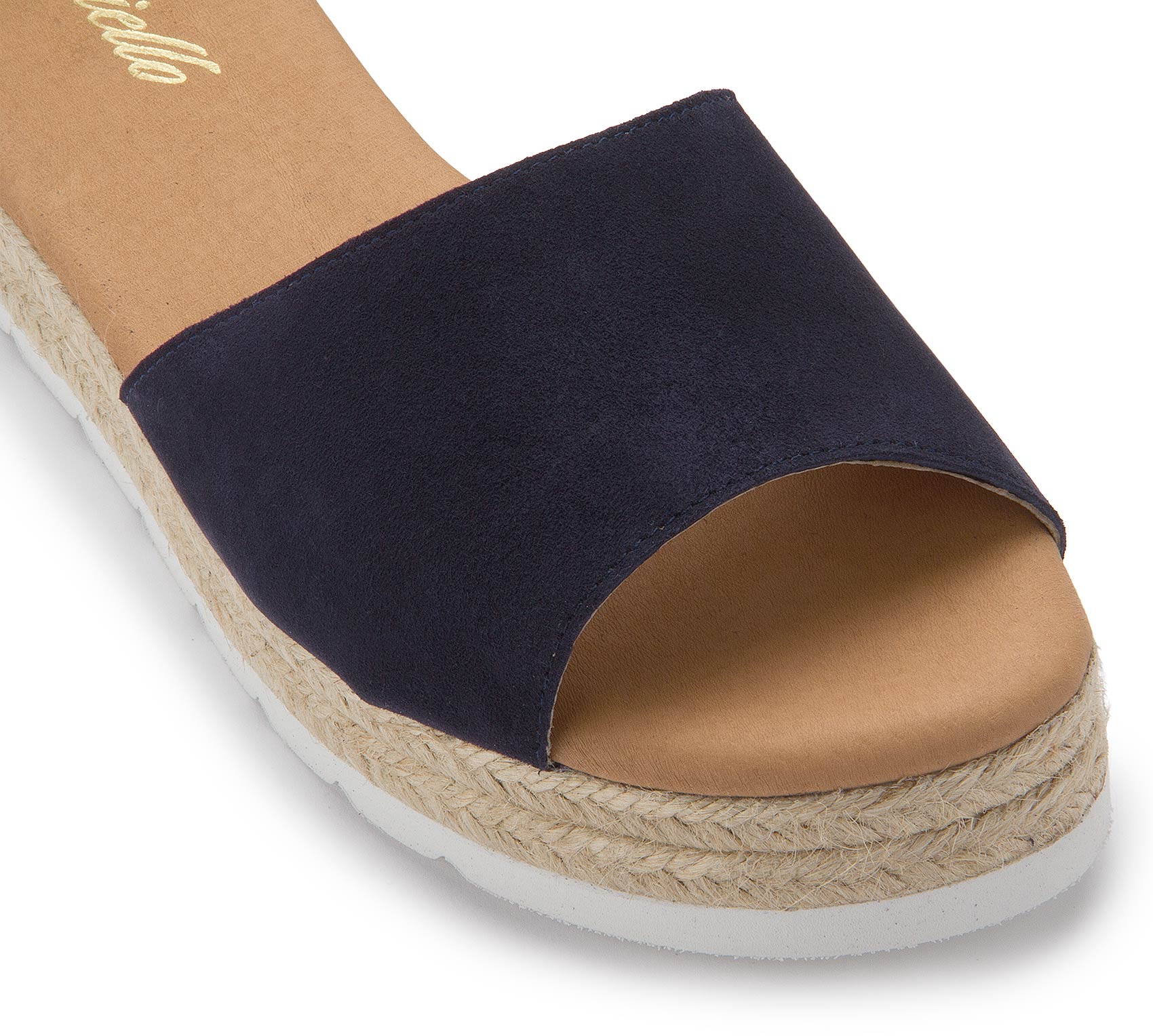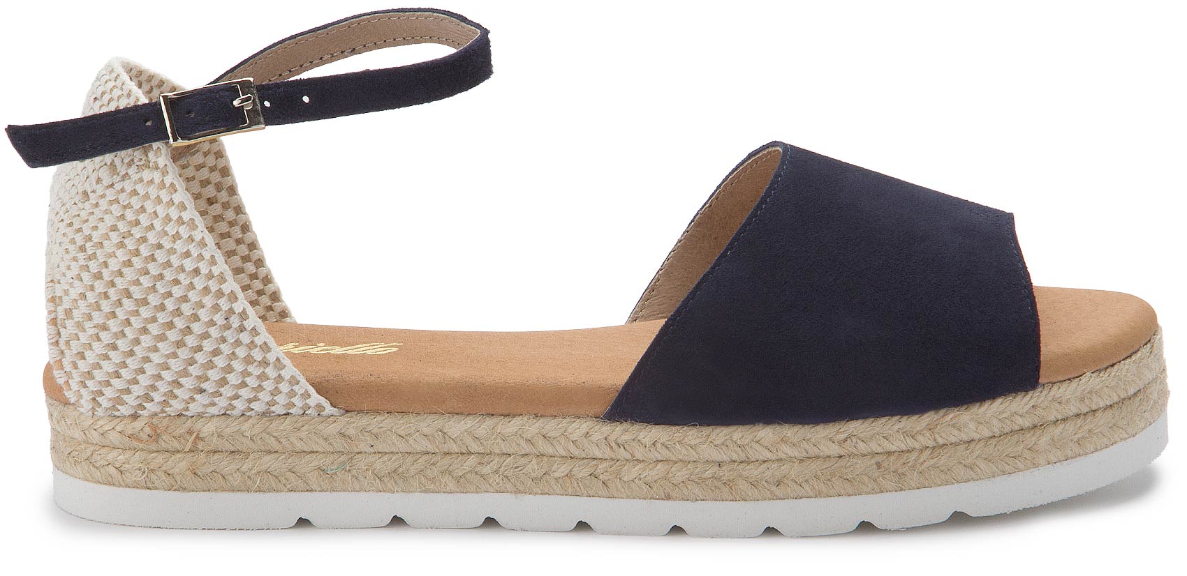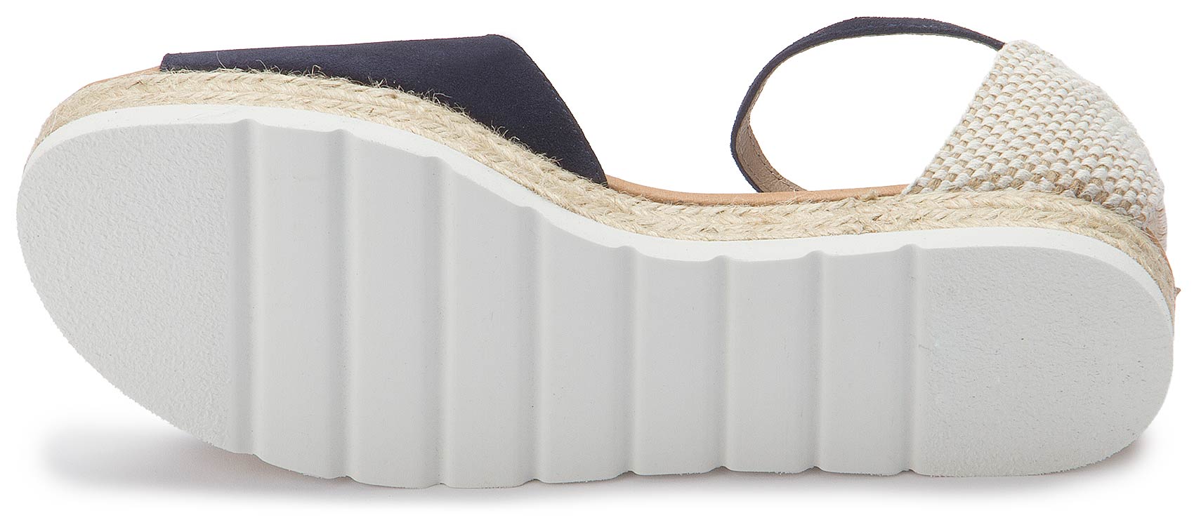 Tolle Sandale im Espadrille-Look aus dem Hause Bariello. Der breite Riemen über dem Vorderfuß ist aus butterweichem Rauleder. Die gepolsterte Innensohle aus Leder garantiert höchsten Komfort. Eine trendige Sandale, die als Allrounder wirklich immer funktioniert!