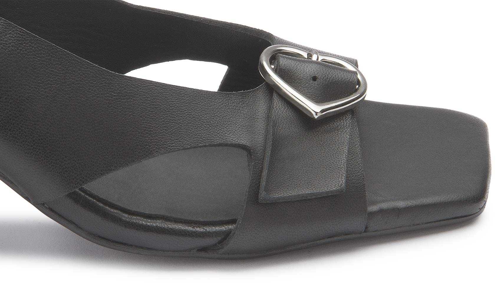 Die Sandalette von Bariello Milano überzeugt mit einem eleganten, klaren Design und einem stilvollen Herz-Detail als Blickfang. Der verstellbare Fersenriemen sorgt für angenehmen Halt, während der formschöne Absatz dem Schuh eine moderne Silhouette verleiht. Ein stilvoller Begleiter, der sommerlichen Outfits eine besondere Note gibt.