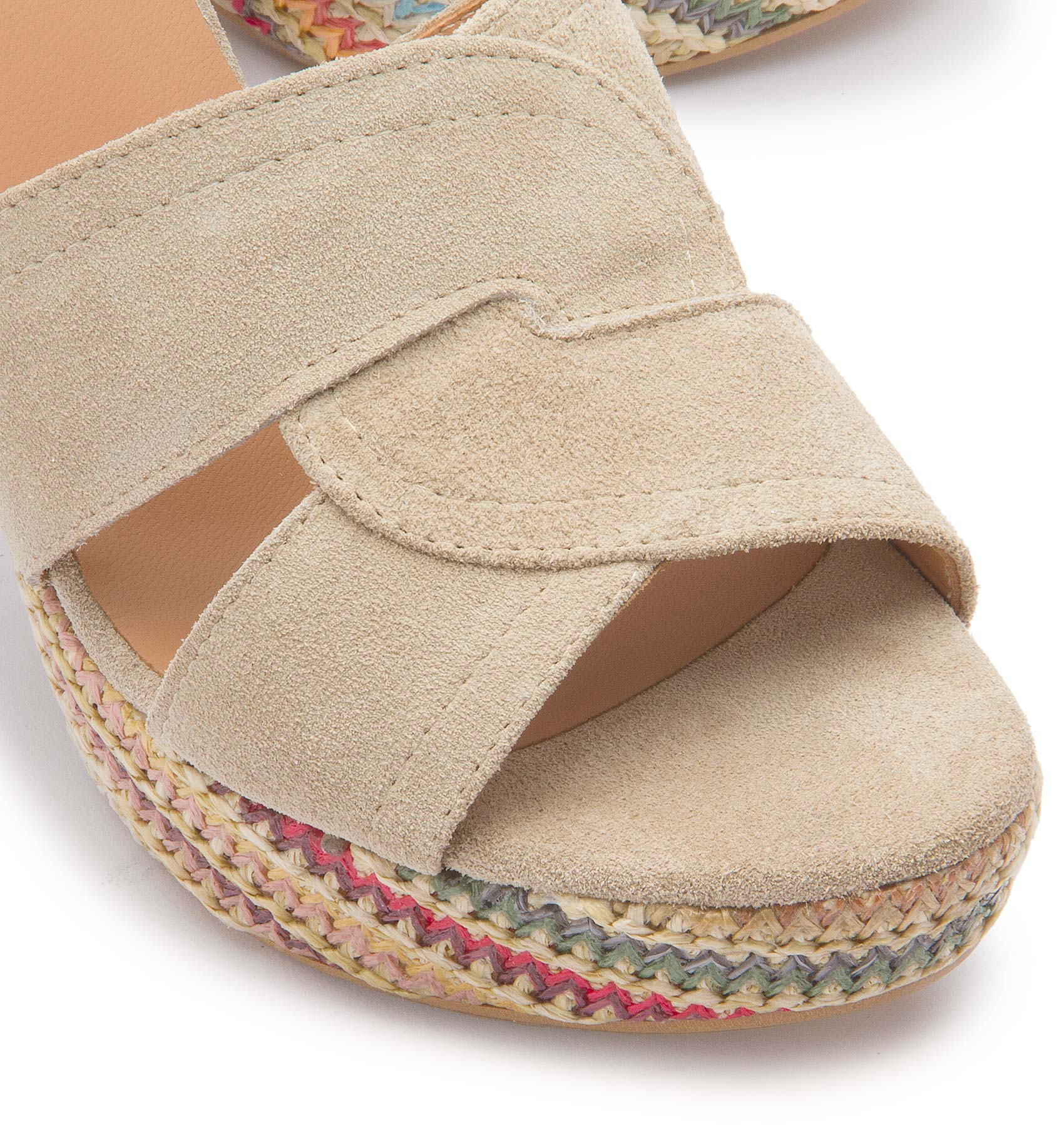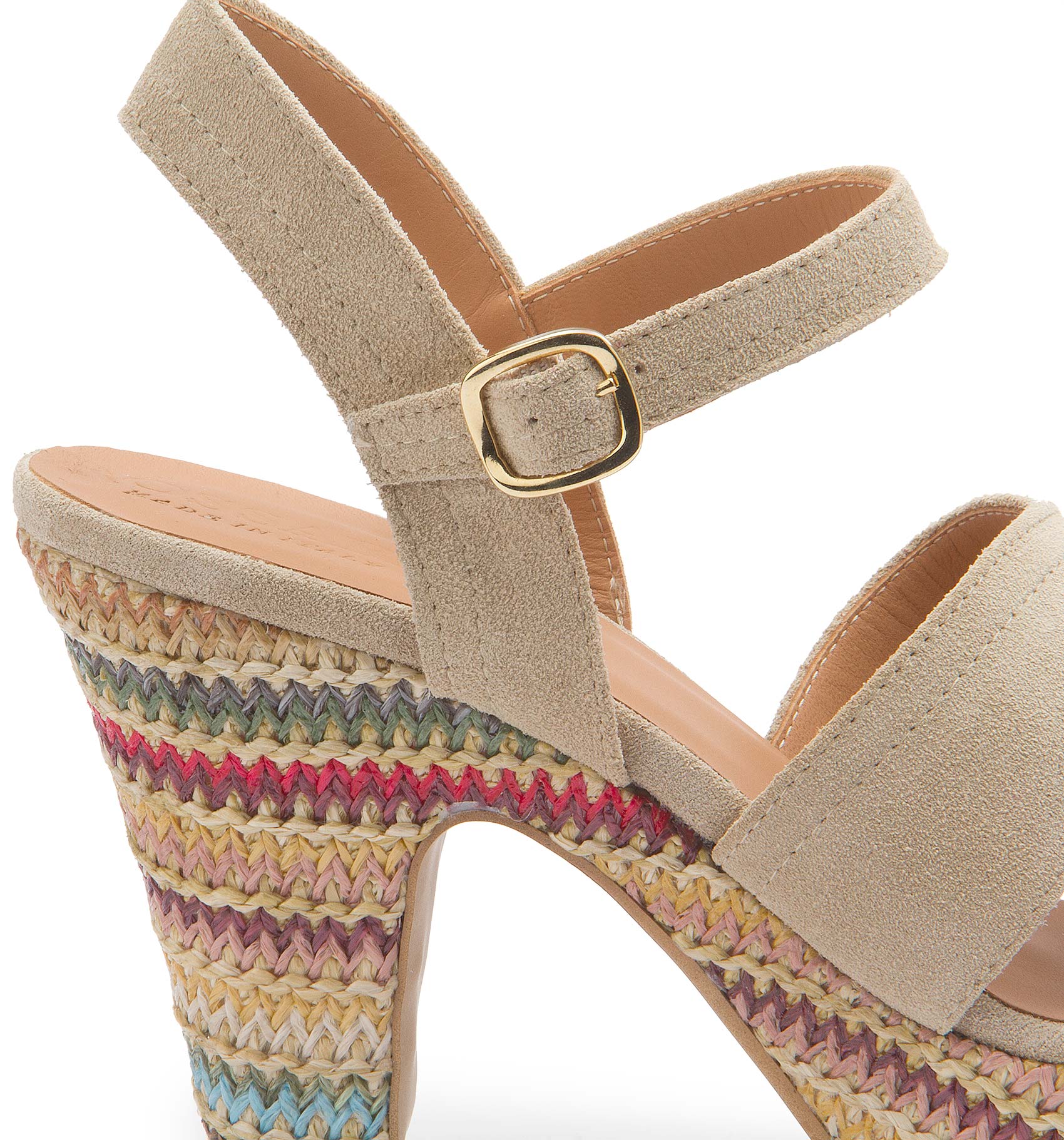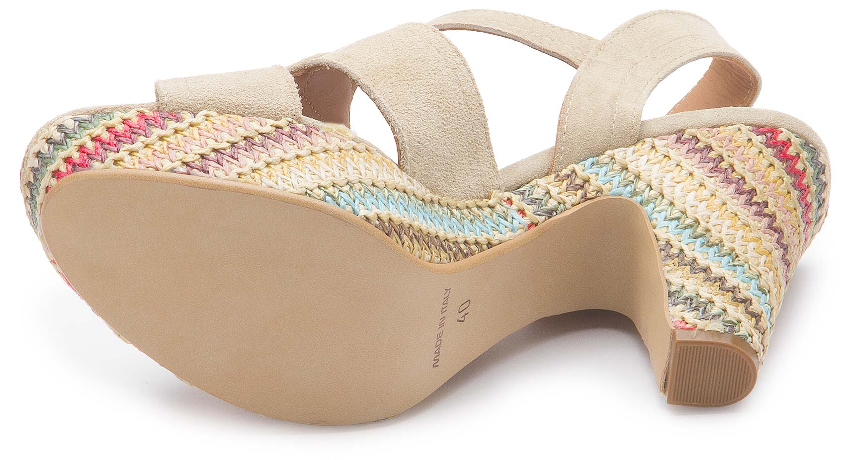 Schlüpfen Sie in diese trendigen Rossaro Sandalen! Das beige Nubukleder verleiht einen eleganten Touch, während die bunt geflochtene Sohle für einen verspielten Twist sorgt. Die Riemen bieten nicht nur Halt, sondern setzen auch stilvolle Akzente. Perfekt für einen stylischen Auftritt - Diese Sandalen vereinen Komfort und Chic in einem!