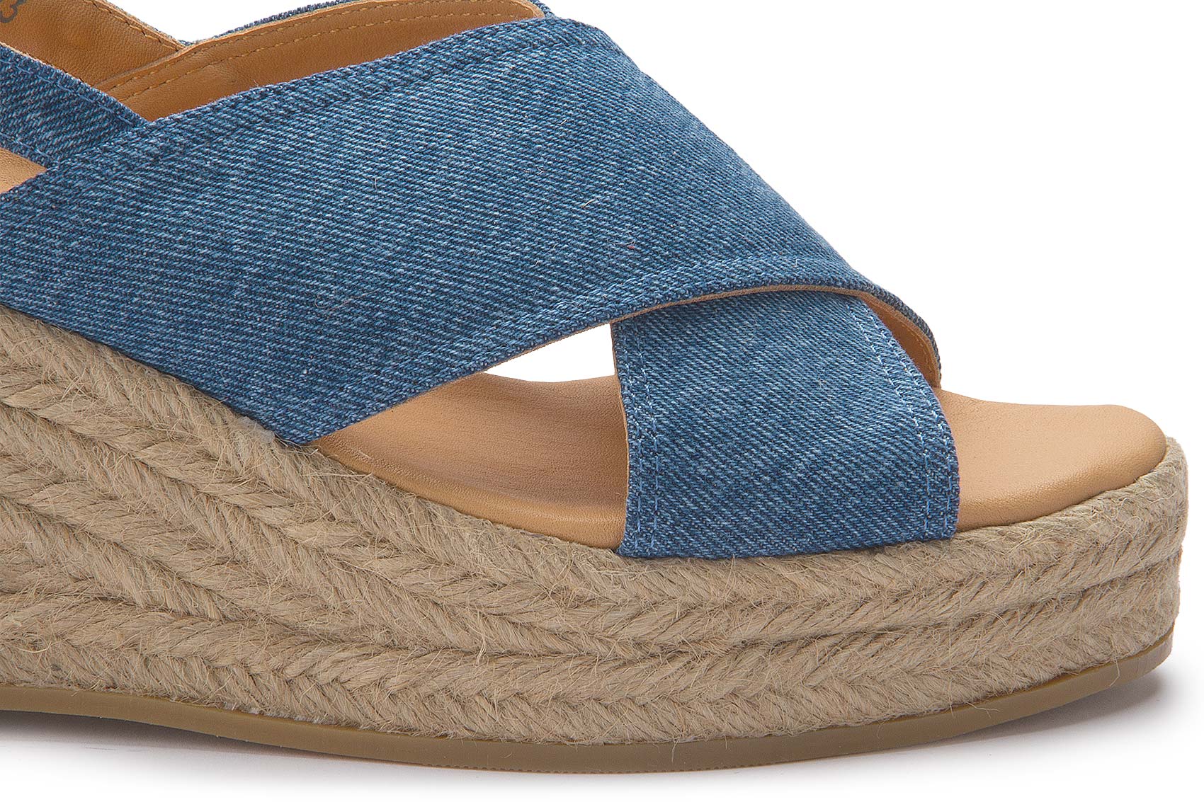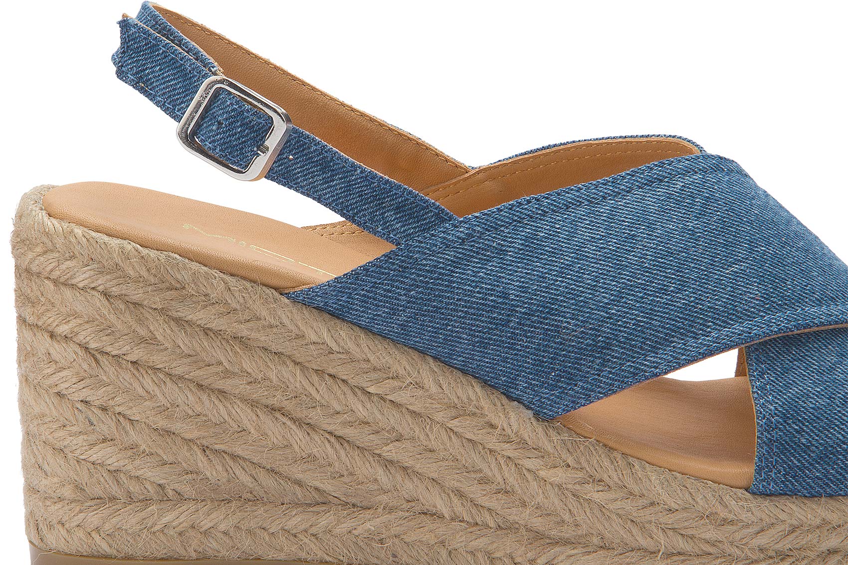 Mit diesem schicken Keil-Sandaletten-Modell von Miotti setzen Sie ein modisches Statement. Die Jeans-Optik verleiht dem Schuh einen trendigen Look, während der geflochtene Keilabsatz für sommerliches Flair sorgt. Dank des verstellbaren Knöchelriemens und des weichen Innenmaterials genießen Sie optimalen Halt und hohen Tragekomfort. Ein echter Hingucker für sonnige Tage und stilvolle Auftritte!