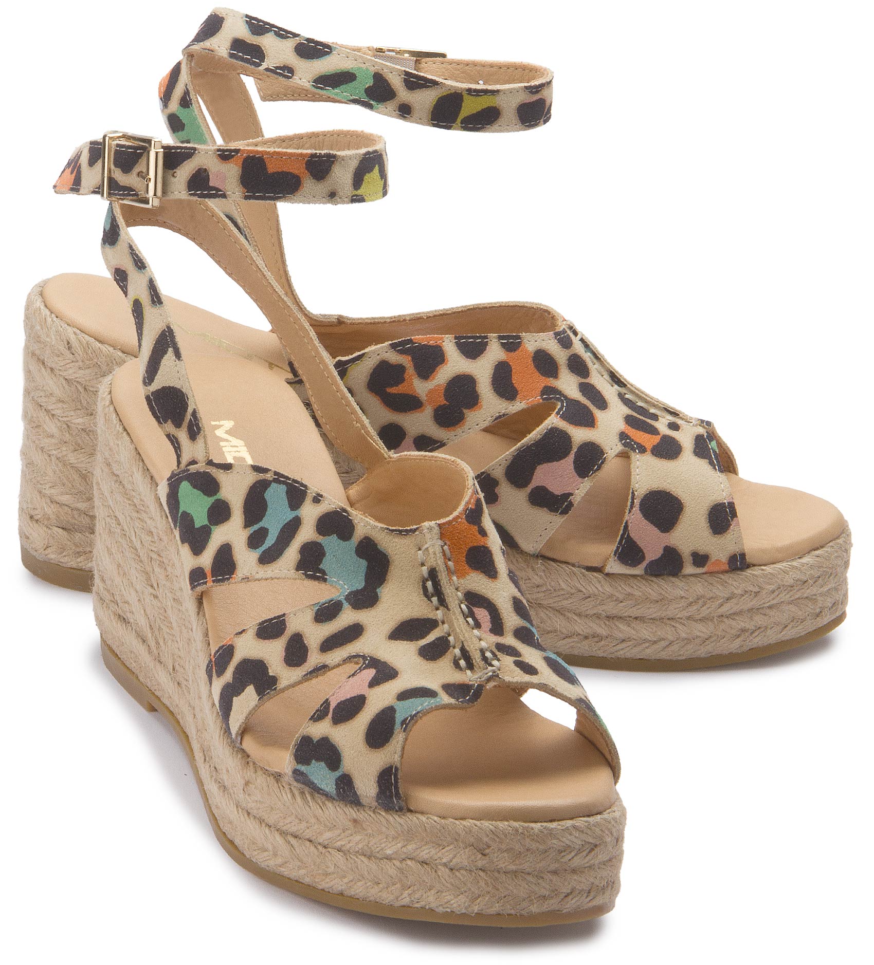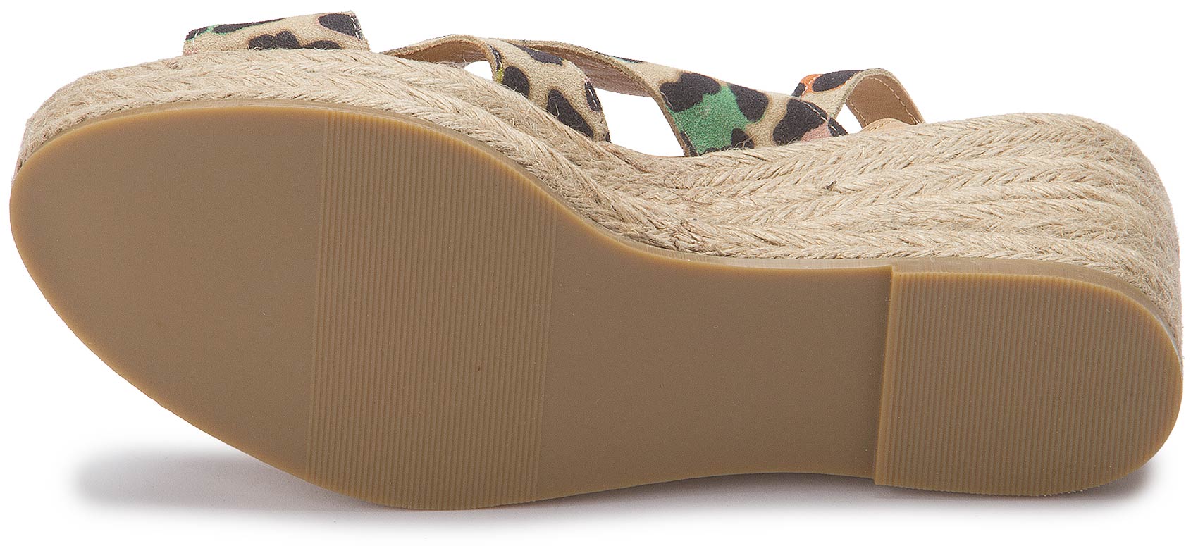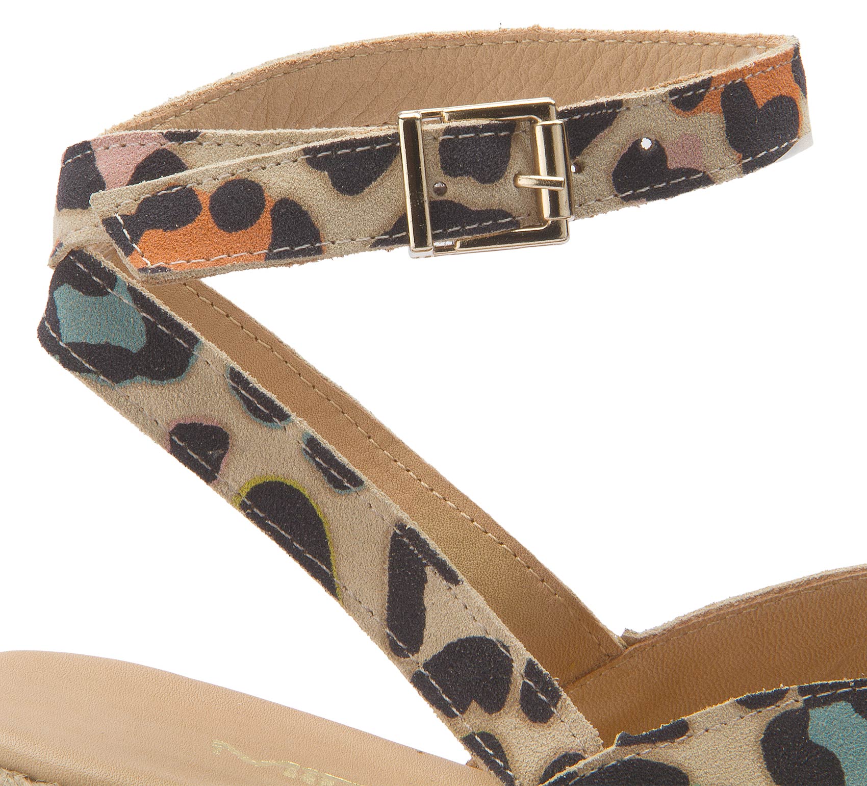 Mit diesem farbenfrohen Keil-Sandaletten-Modell von Miotti setzen Sie ein modisches Statement. Das mehrfarbige Leo-Muster auf hochwertigem Obermaterial verleiht dem Schuh einen trendigen Look, während der geflochtene Keilabsatz für sommerliches Flair sorgt. Dank des verstellbaren Knöchelriemens und des weichen Innenmaterials genießen Sie optimalen Halt und hohen Tragekomfort. Ein echter Hingucker für sonnige Tage und stilvolle Auftritte!