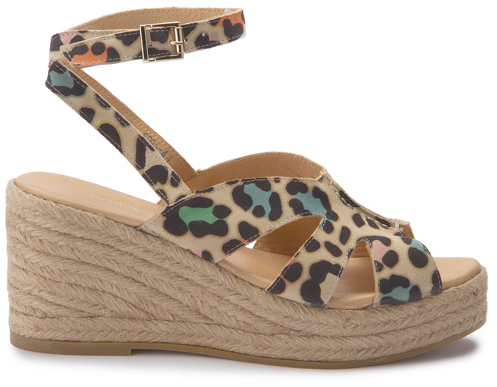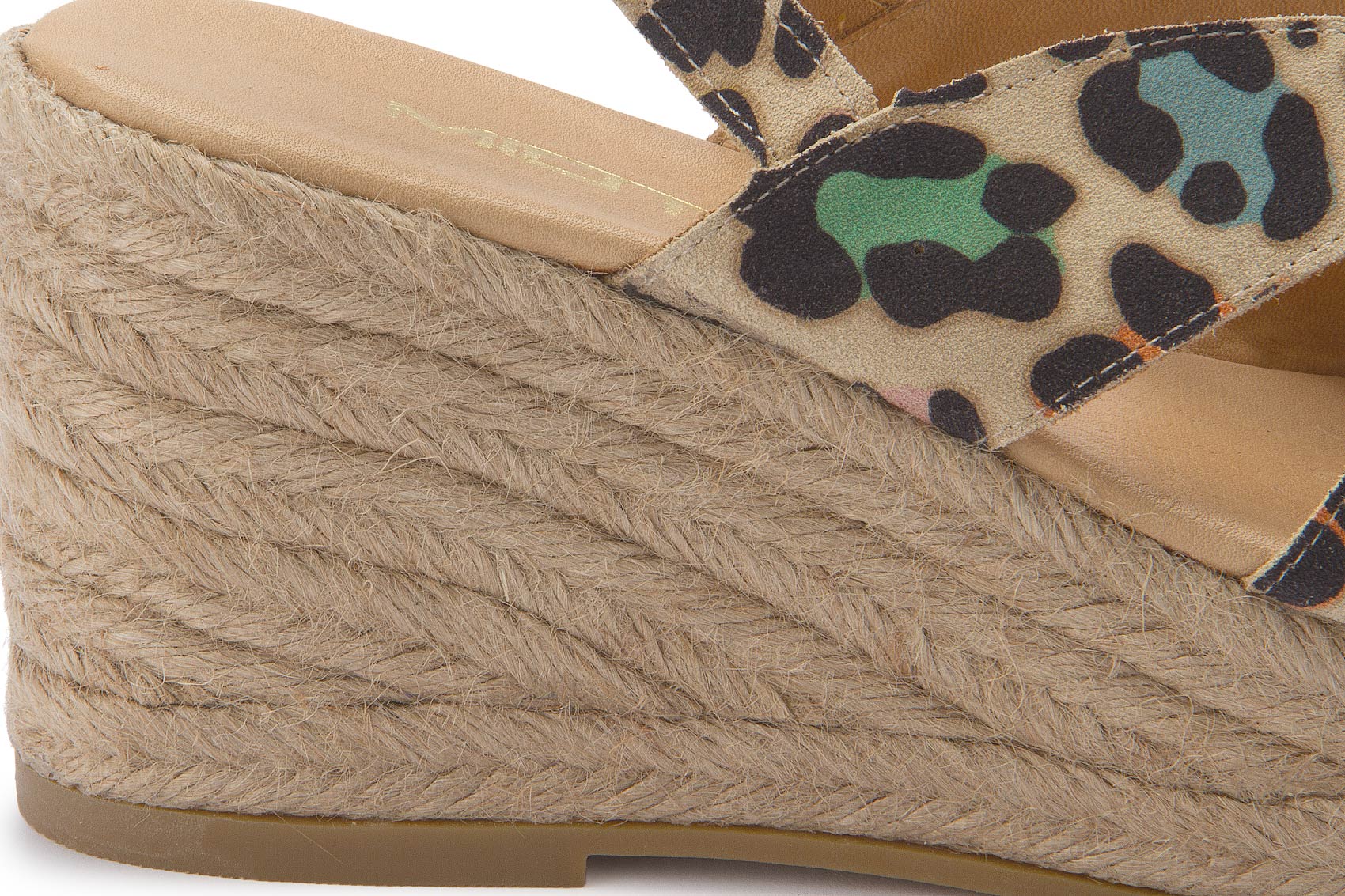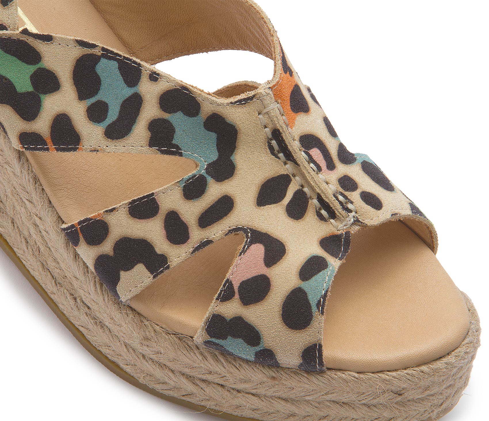 Mit diesem farbenfrohen Keil-Sandaletten-Modell von Miotti setzen Sie ein modisches Statement. Das mehrfarbige Leo-Muster auf hochwertigem Obermaterial verleiht dem Schuh einen trendigen Look, während der geflochtene Keilabsatz für sommerliches Flair sorgt. Dank des verstellbaren Knöchelriemens und des weichen Innenmaterials genießen Sie optimalen Halt und hohen Tragekomfort. Ein echter Hingucker für sonnige Tage und stilvolle Auftritte!