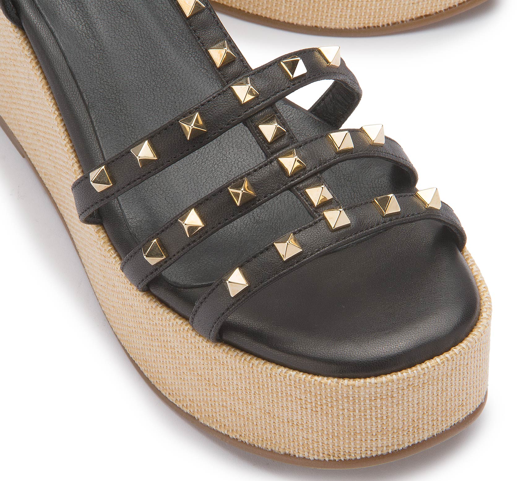 Ein großartiges Design, das für einen Wow-Effekt sorgt! Mit diesen Sandaletten von Bariello bringst du neuen Schwung in deine Schuhsammlung. Die applizierten Nieten in Gold harmonieren perfekt mit dem weichen Obermaterial aus Glattleder. Der Keilabsatz sieht stylisch aus und ist super bequem!