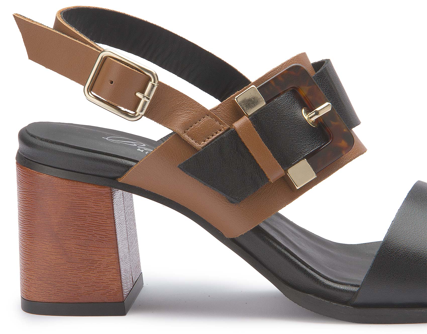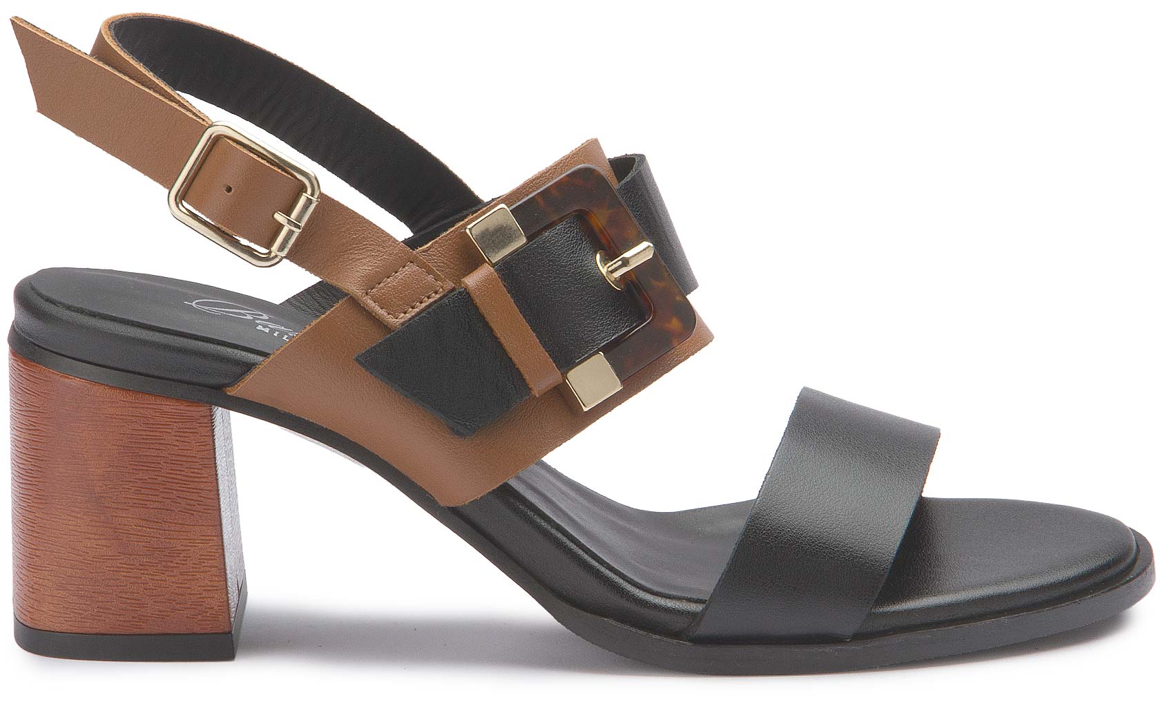 Die Sandalette von Bariello Milano verbindet modernes Design mit markanten Details. Breite Riemen und eine auffällige Schnalle setzen stilvolle Akzente, während der stabile Absatz in Holzoptik dem Schuh eine besondere Note verleiht. Ein ausdrucksstarker Begleiter für vielseitige Sommer-Looks.