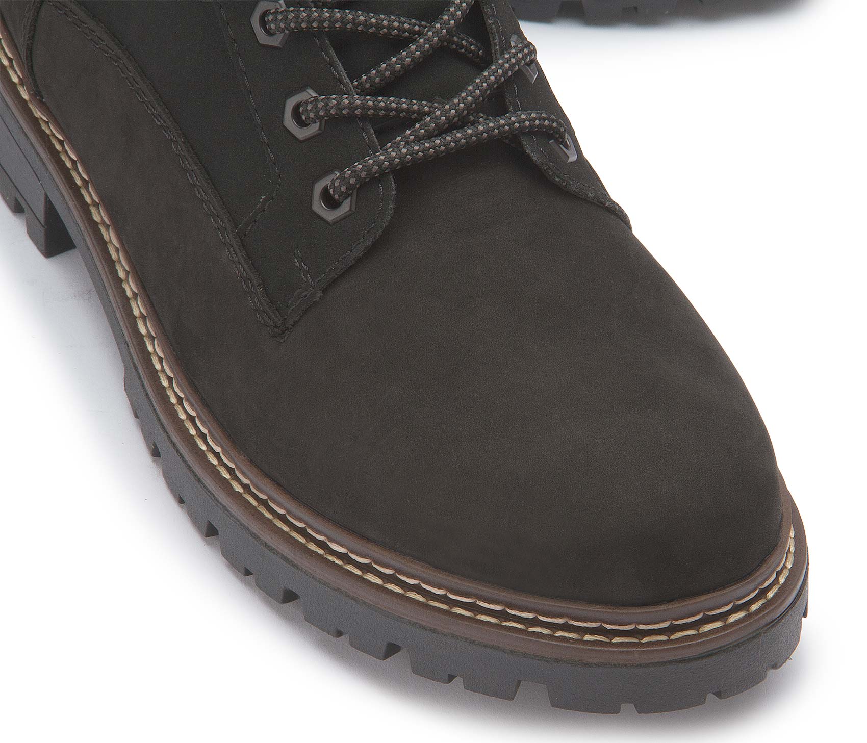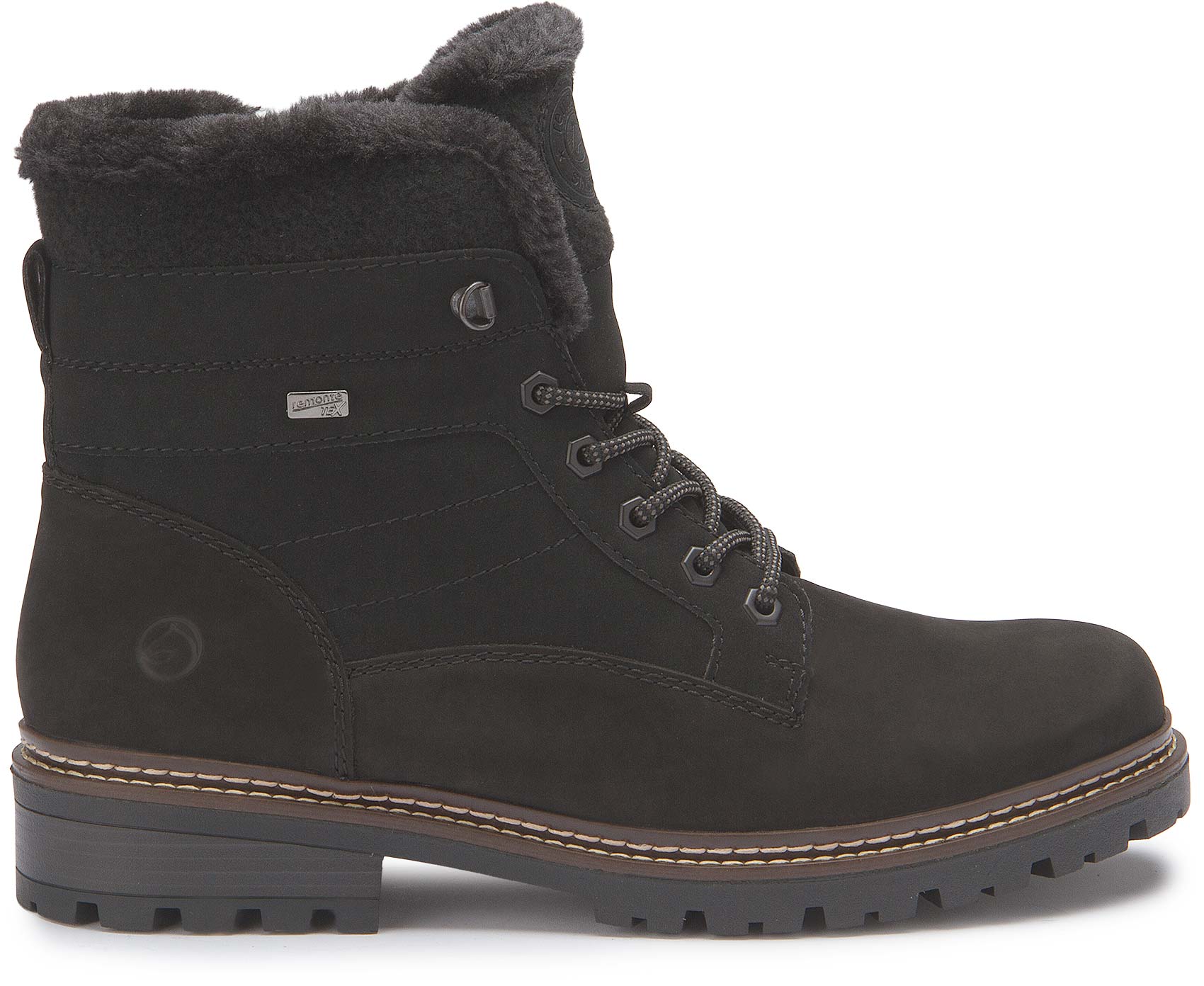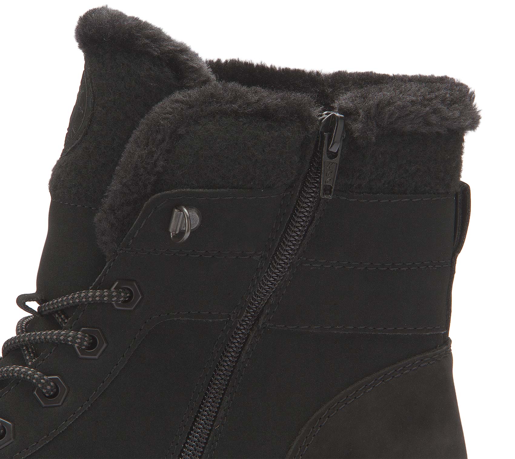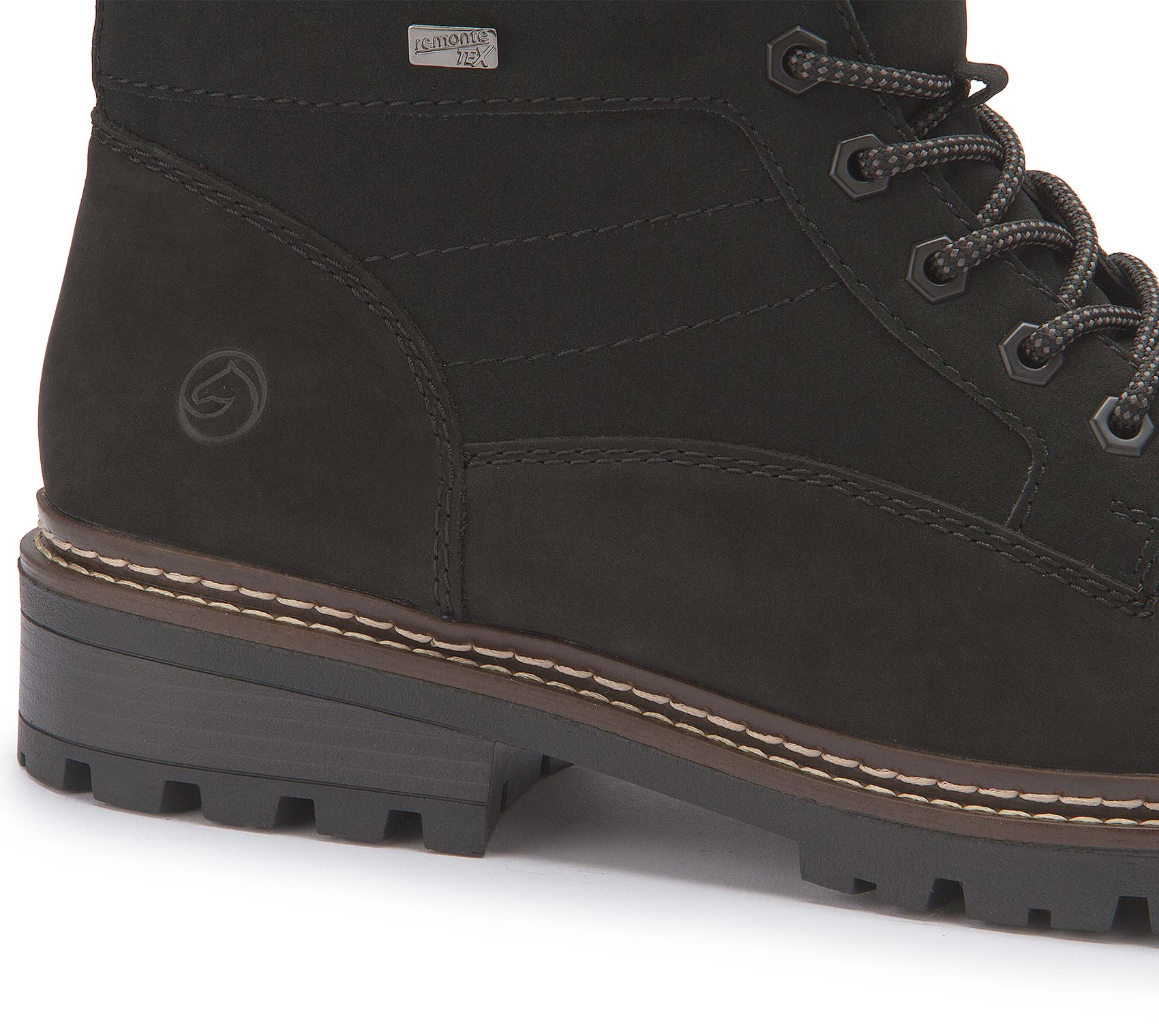 Diese stylischen schwarzen remonte Schnürboot für Damen sind ein Lichtblick an grauen Tagen. Die Schnürung wird durch einen Reißverschluss ergänzt und garantiert somit optimalen Halt und eine perfekte Passform. Der Schaftrand mit Fell rundet das moderne Design perfekt ab. Mit der flexiblen und griffigen Sohle ist trittsicheres Gehen eine Selbstverständlichkeit. Ein Wohlfühlfaktor on top ist die Komfortweite, die mehr Freiraum im Schuh bietet. Dank der remonte Features ist der Schuh optimal für das Winterwetter ausgestattet. Die Füße bleiben dank der kuscheligen und sehr warmen Schurwolle den ganzen Tag lang angenehm warm! Bequemer wird’s nicht mehr!