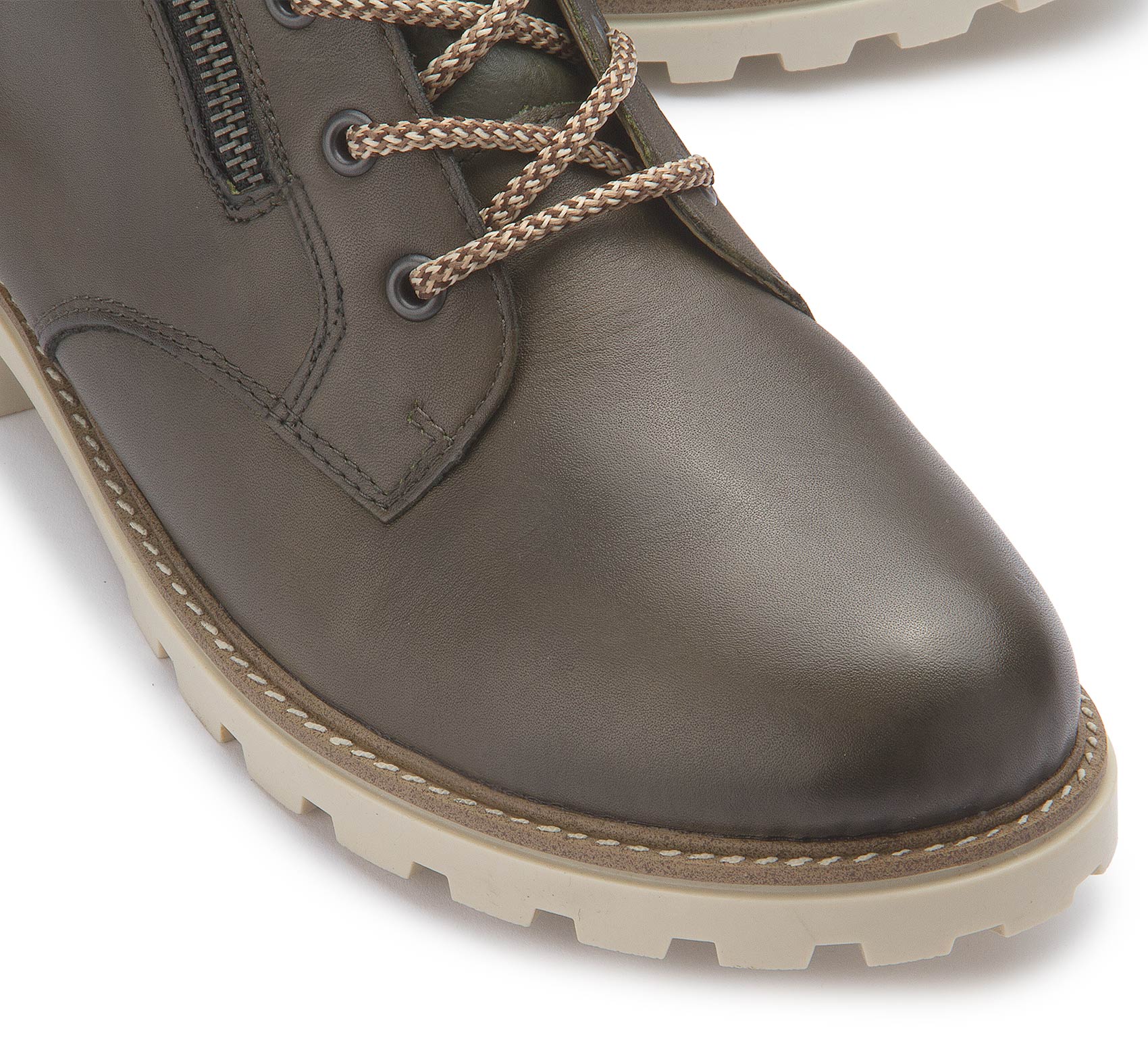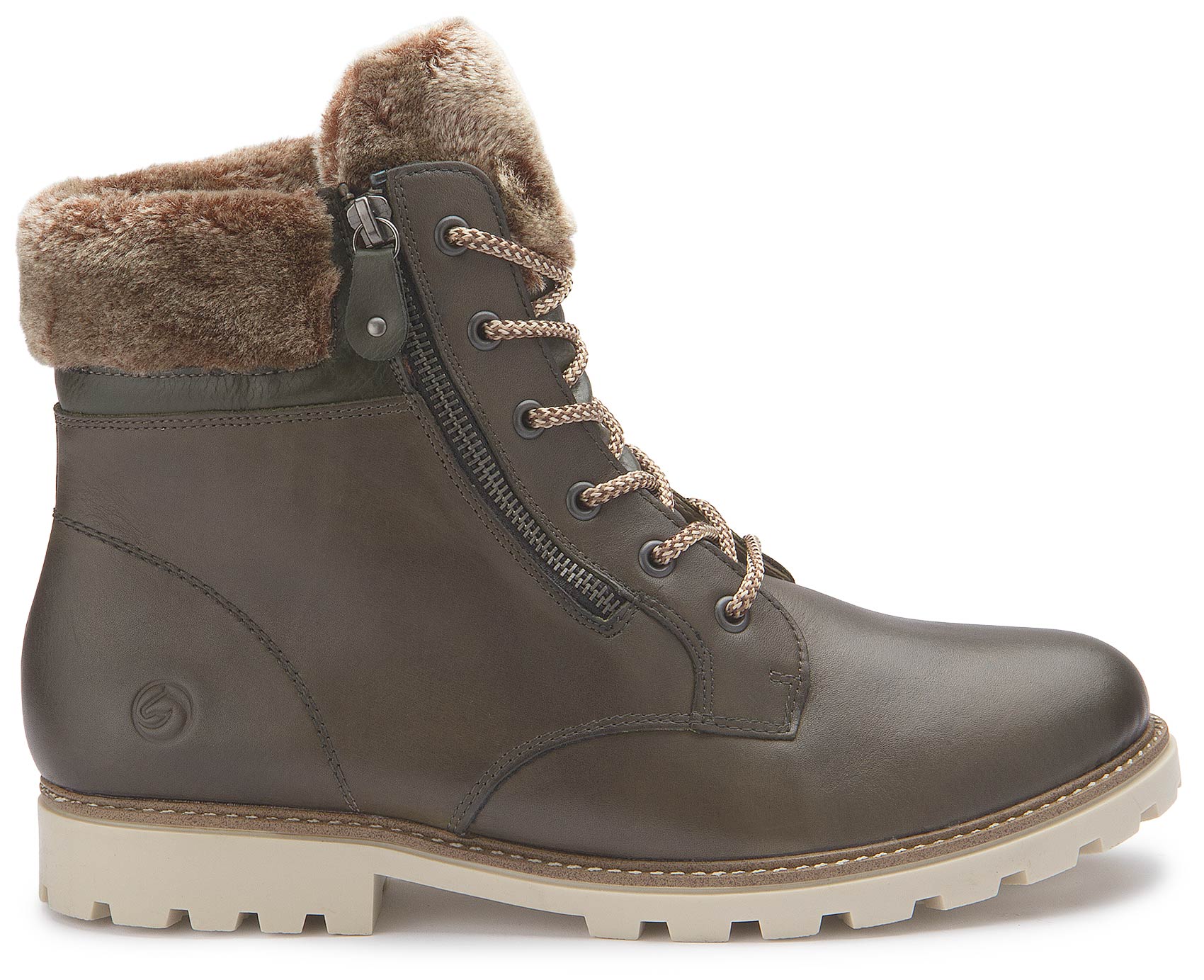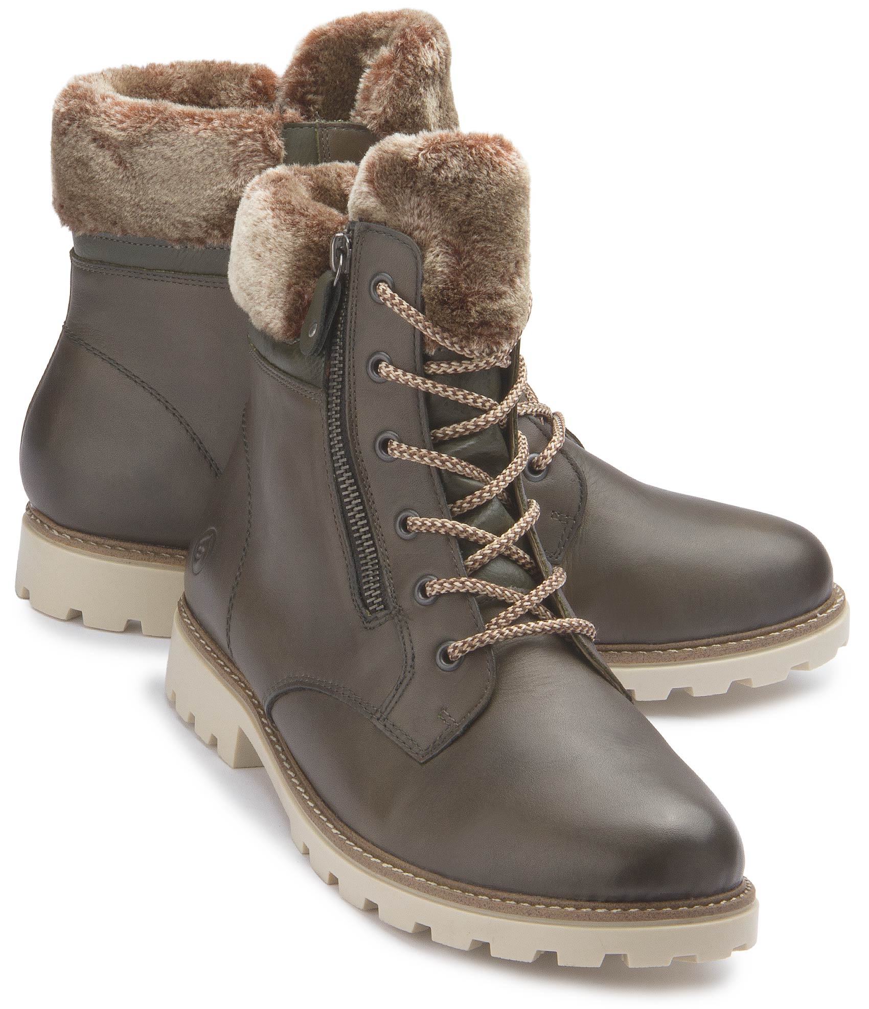 Dieser dunkelgrüne Remonte Schnürstiefel ist mit seiner derben Profilsohle ist und dem kuschligen Fake-Fur-Schaft winterlich designt und bietet guten Tragekomfort. Er hat ein warmes Innenfutter aus echter Lammwolle und einen funktionalen Reißverschluss neben der Schnürung. Das Wechselfußbett lässt sich schnell und bequem gegen individuelle Einlagen austauschen. Dieser Schnürboot ist ein perfekter Winter-Allrounder, denn dank der THERMO INSOLE mit der eingearbeiteten Thermofolie trotzen Sie mit diesem Schnürboot nicht nur Kälte, sondern auch Frost.