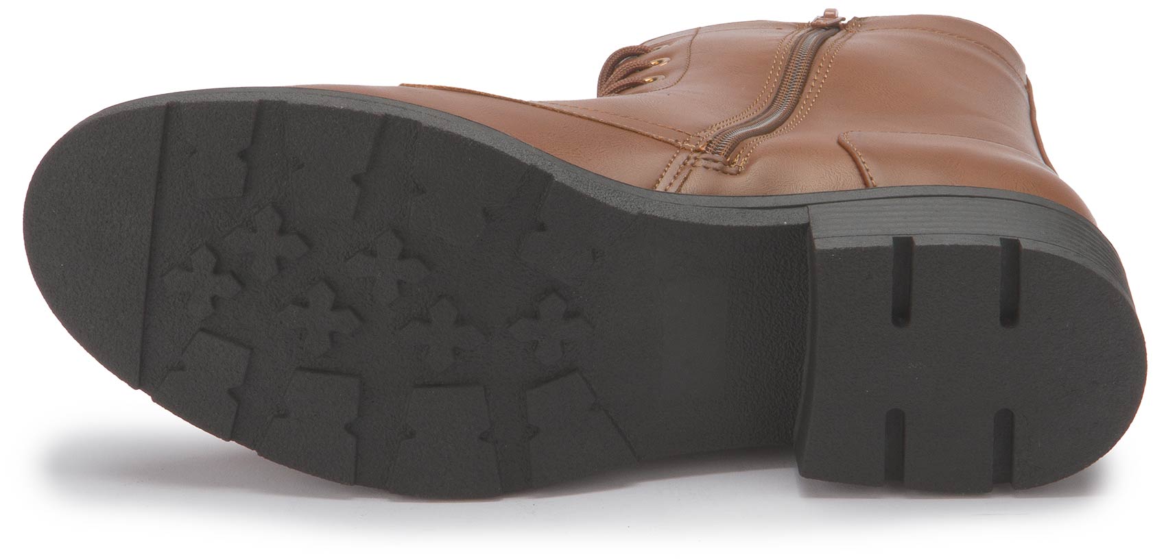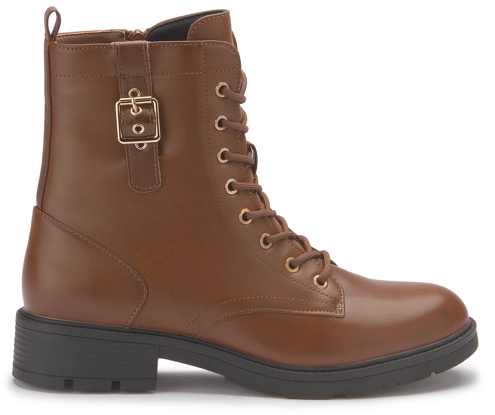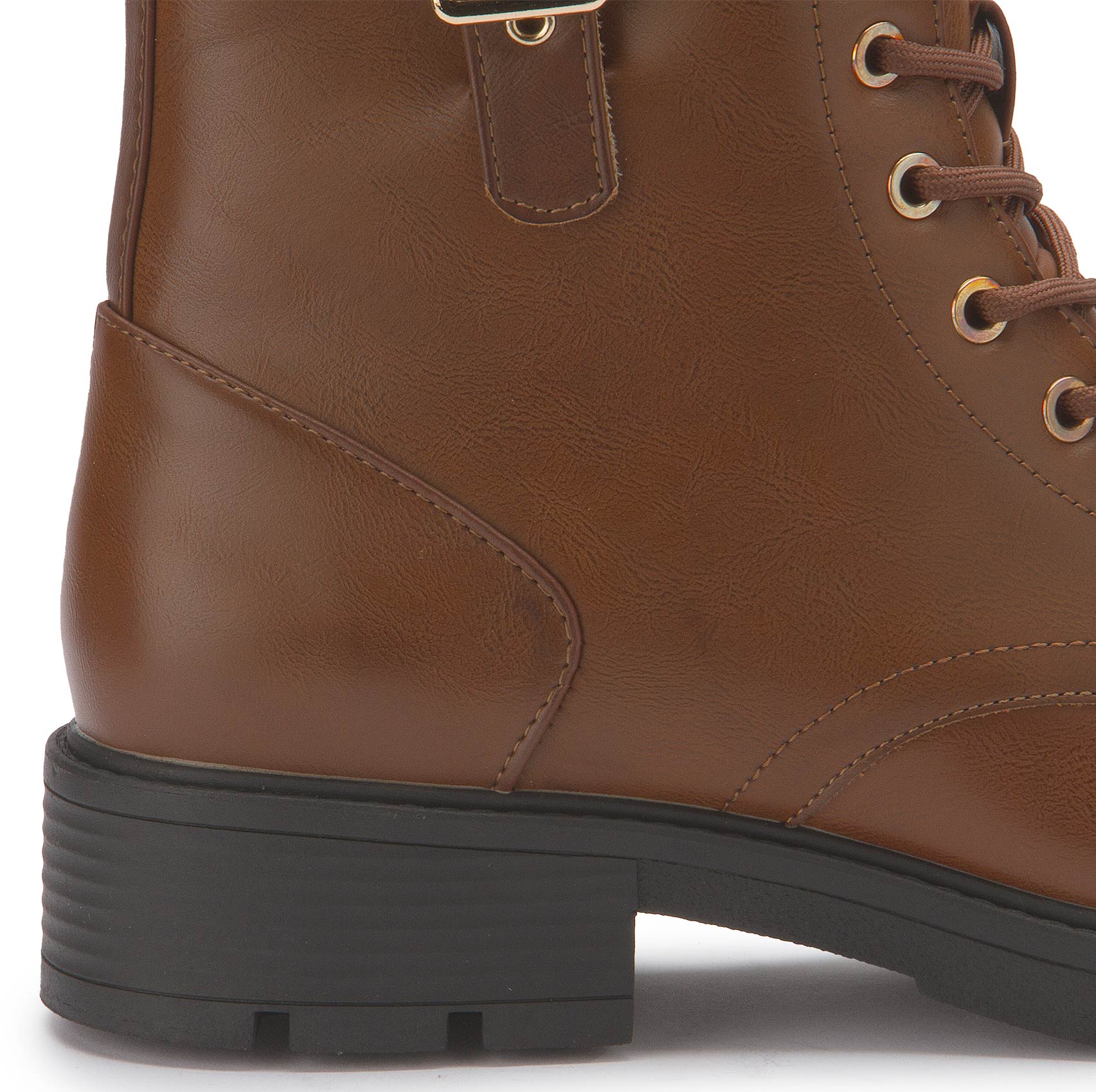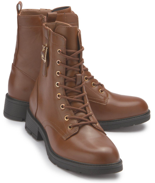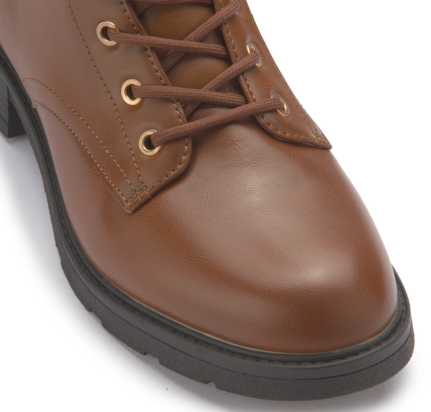 Dieser Schnürboot verkörpert die neuesten Schuhtrends durch sein klares, beeindruckendes Design. Das braune Kunstleder fügt sich nahtlos in jede Garderobe ein und bietet vielseitige Kombinationsmöglichkeiten für verschiedene Outfits - von schick bis lässig.