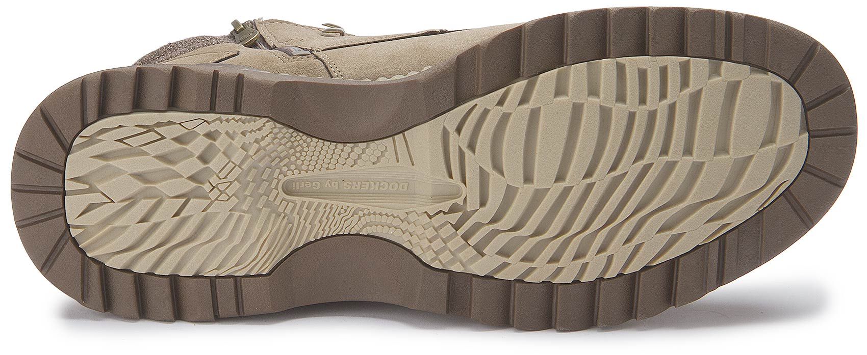 Robuster Boot von Dockers in attraktivem Design! Gefertigt aus hochwertigem Lederimitat überzeugt der Schuh durch seine strapazierfähige Verarbeitung und angenehmen Tragekomfort. Das wasserabweisende Obermaterial macht ihn zudem zum praktischen Begleiter bei jedem Wetter. Für ein angenehmes Laufgefühl sorgen der weich gepolsterte Schaftrand sowie das wärmende Innenfutter.