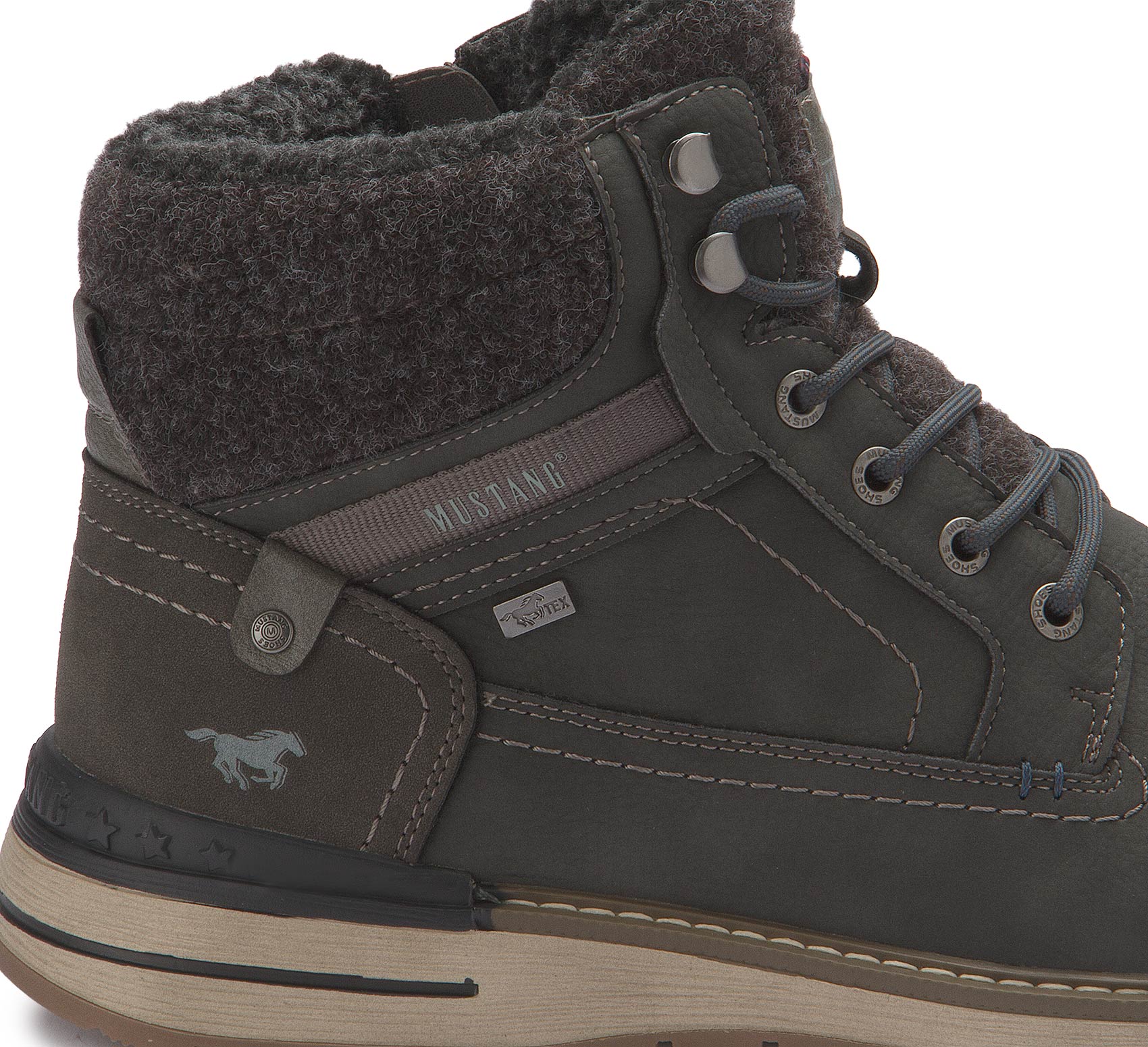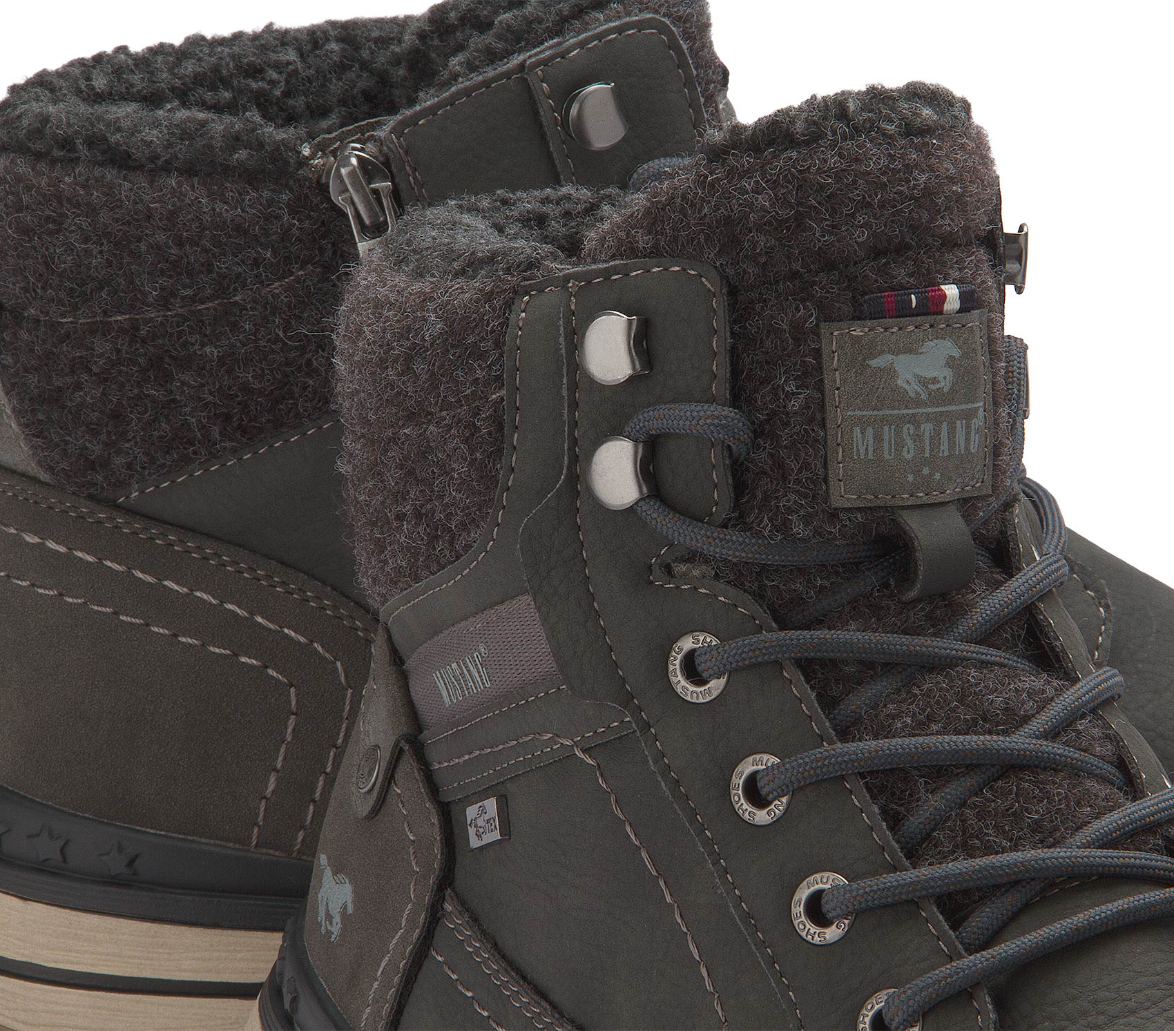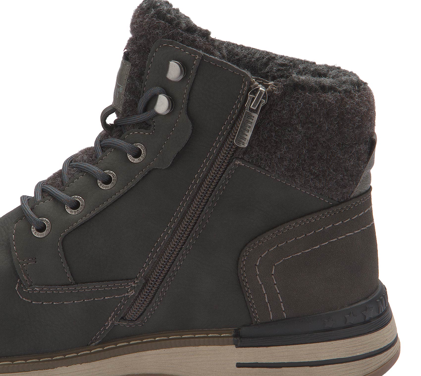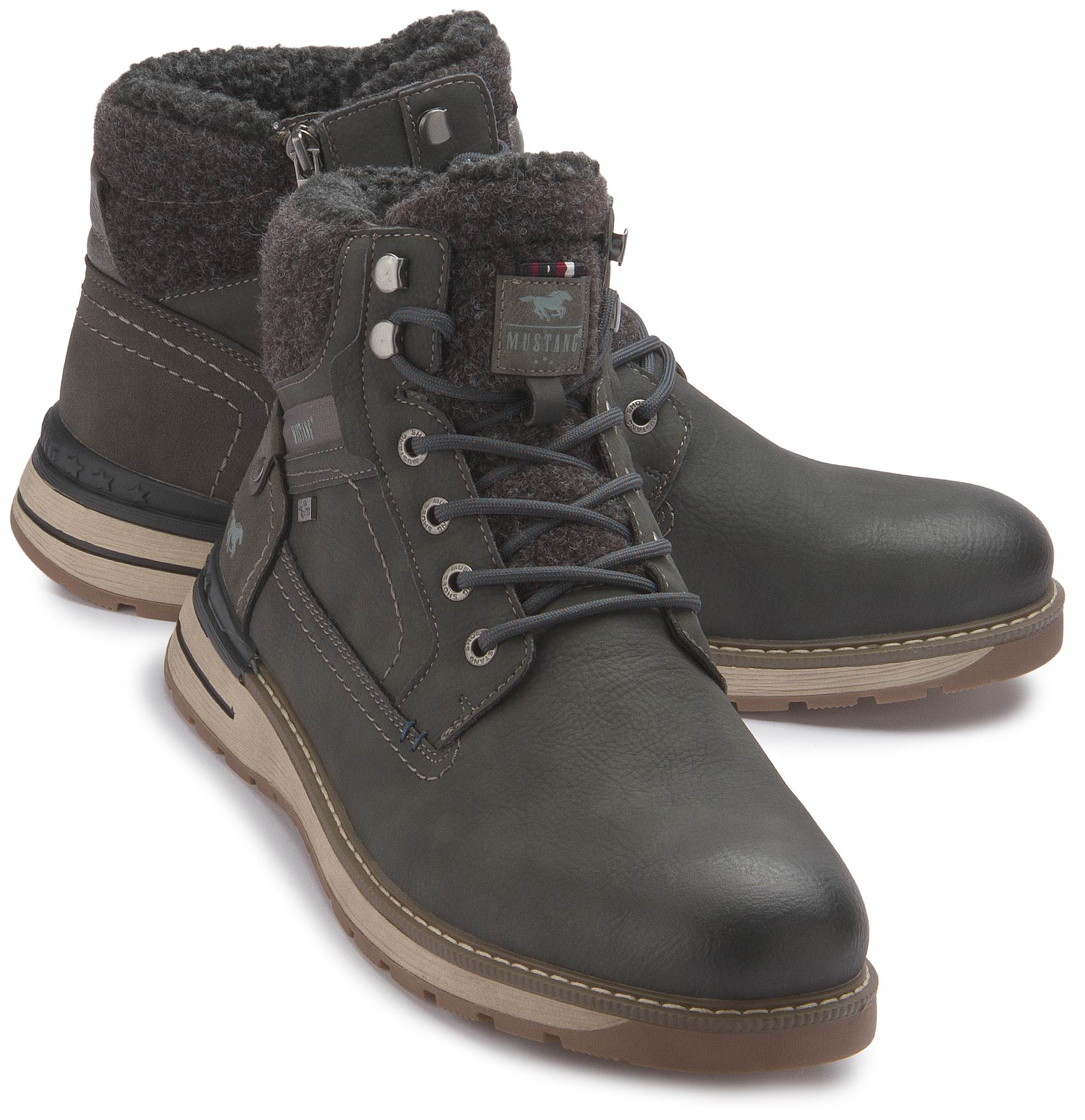 Robust, warm und stylisch – dieser Mustang-Boot ist der perfekte Begleiter für die kalte Jahreszeit. Das Innenfutter aus kuscheligem Textil sorgt für angenehme Wärme, während die stabile Sohle mit Profil sicheren Halt bietet. Mit klassischer Schnürung und praktischem Reißverschluss verbindet er Komfort mit lässigem Design.