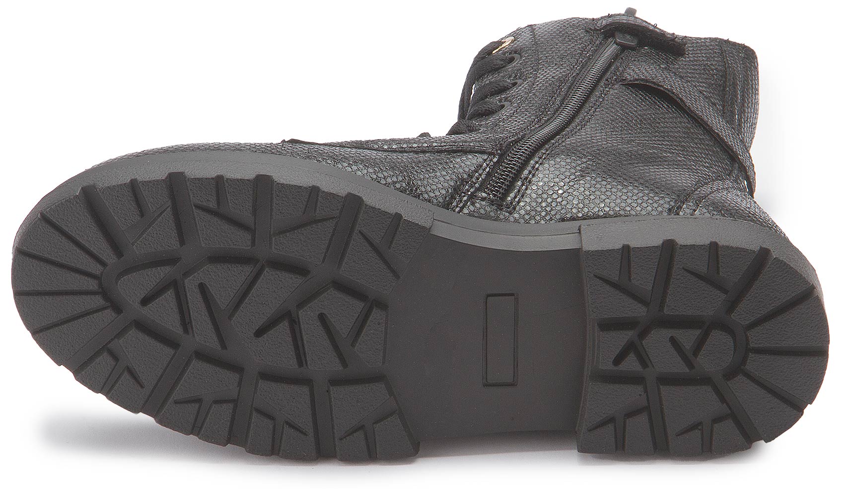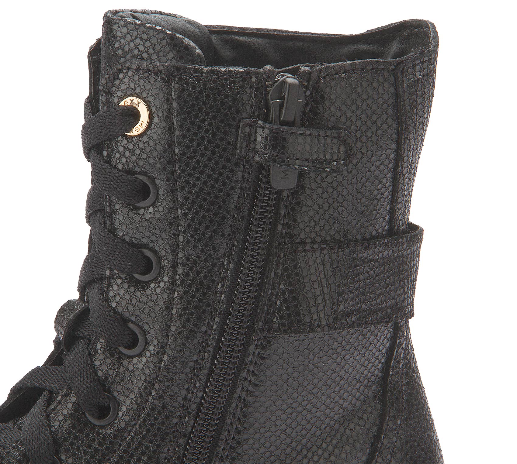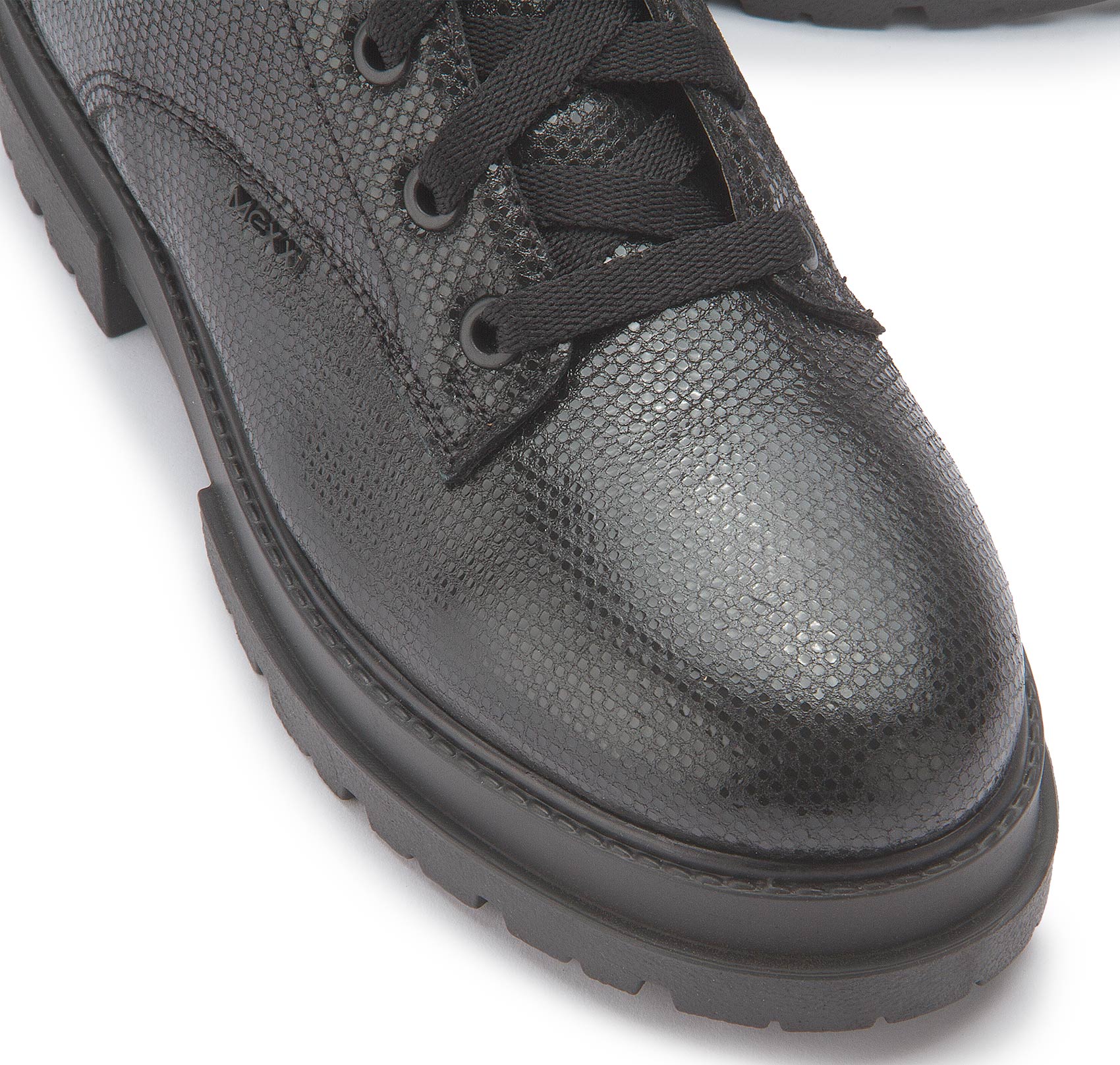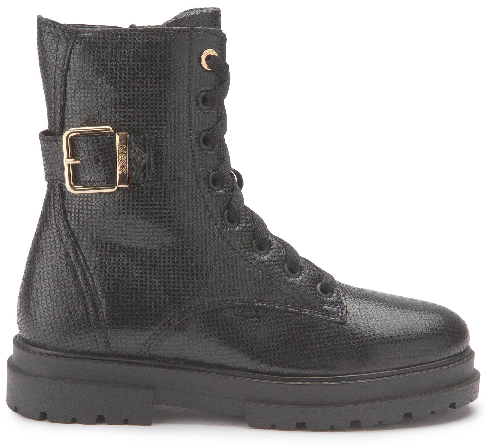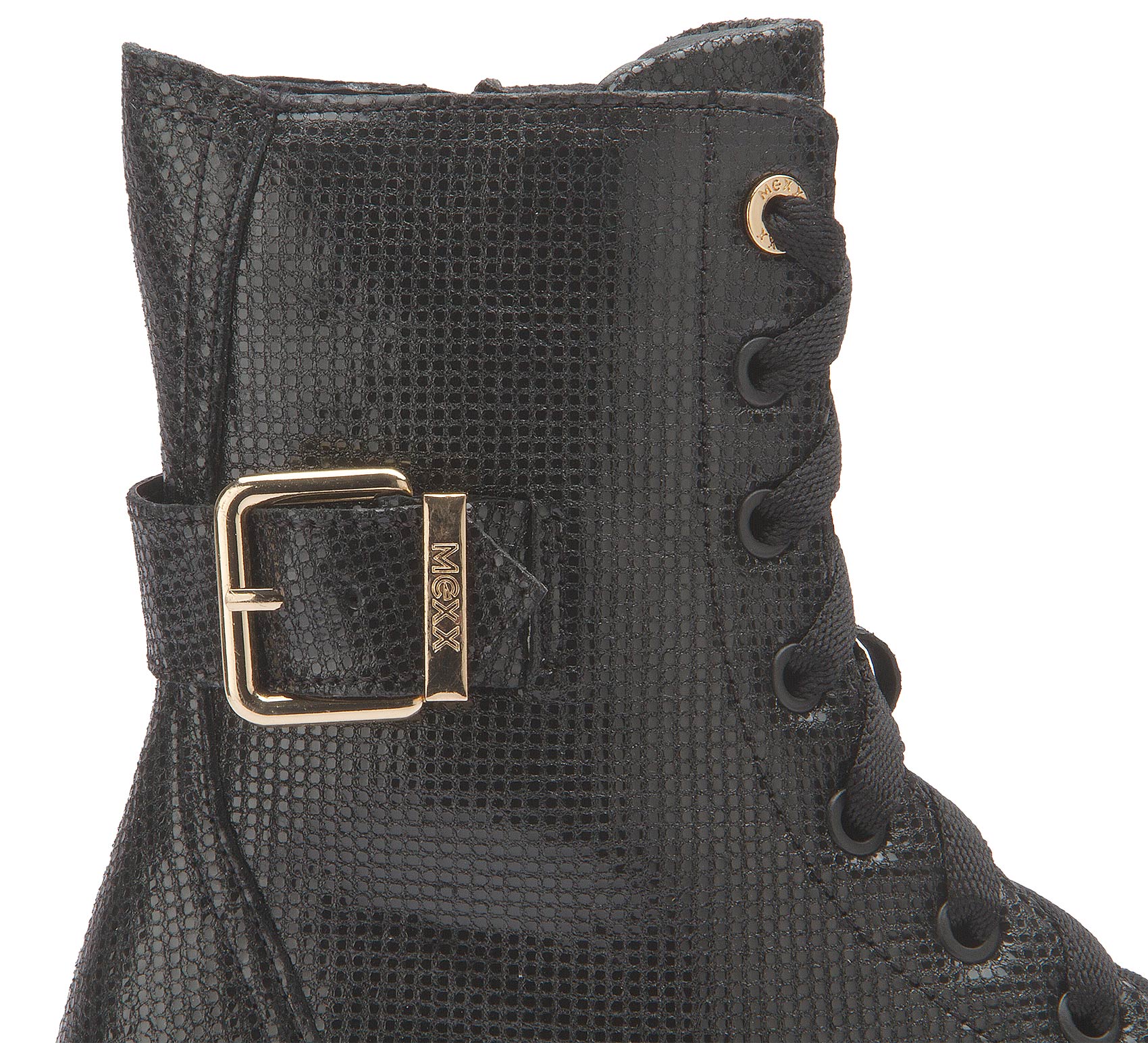 Mit diesen Schnürboot von Mexx hat man einen angesagten Alltagsbegleiter parat, mit dem man tolle Styles zaubern kann. Der Schuh hat einen Reißverschluss an der Seite und gibt einem durch sein hochwertiges Leder in modischer Prägung ein super Tragegefühl bei jedem Schritt. Auch der komfortable Absatz trägt seinen Teil zum gelungenen Gesamtbild bei. Dieser Schnürboot ist ein unschlagbares Must-have.