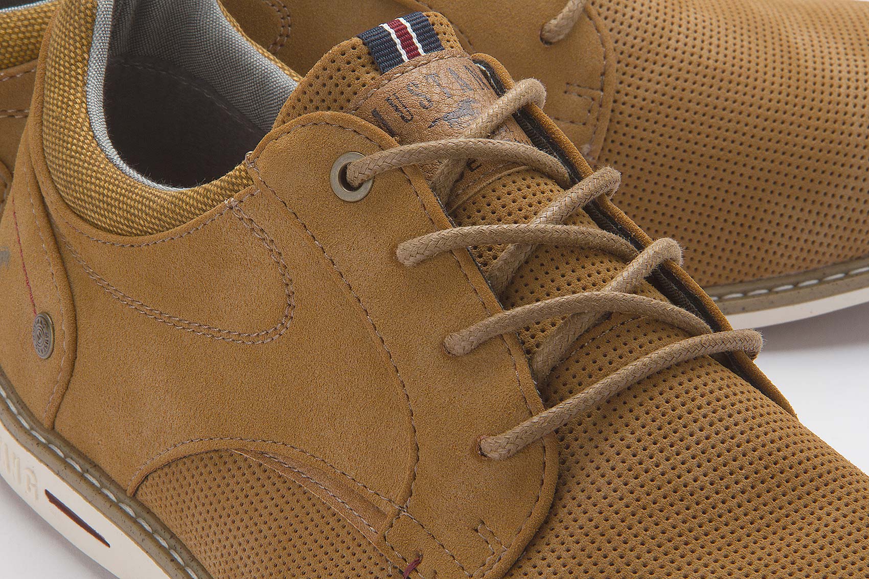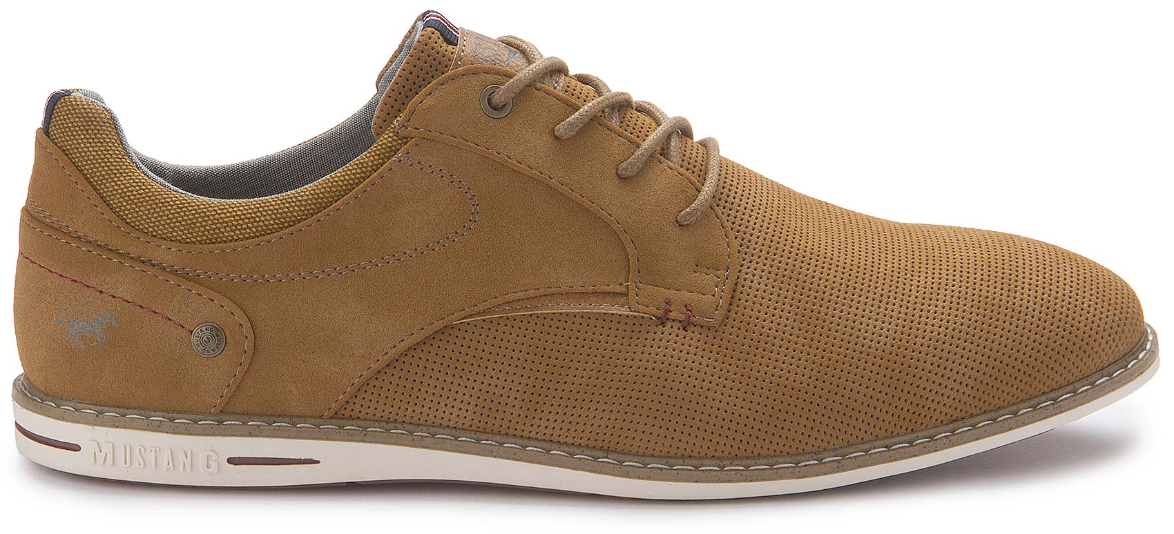 Schöner Schnürer von Mustang aus hochwertigem Nubuk-Imitat in Cognac. Die weiche Gummisohle und der leicht gepolsterte Schaftkragen sorgen für Komfort. Egal ob lässig zur Jeans oder schicker zur Stoffhose. Mit diesem Schnürschuh von Mustang haben Sie die richtige Wahl getroffen!