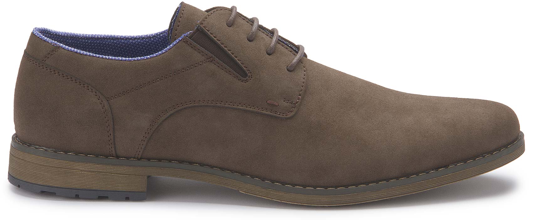 Klassischer Schnürschuh aus hochwertigem Lederimitat in Nubuk-Optik. Die Gummisohle mit leichten Profil sorgt auch bei herbstlichen Wetter für einen guten Stand. Der dezente Gummieinsatz seitlich der Schnürung sorgt für eine gute Passform.