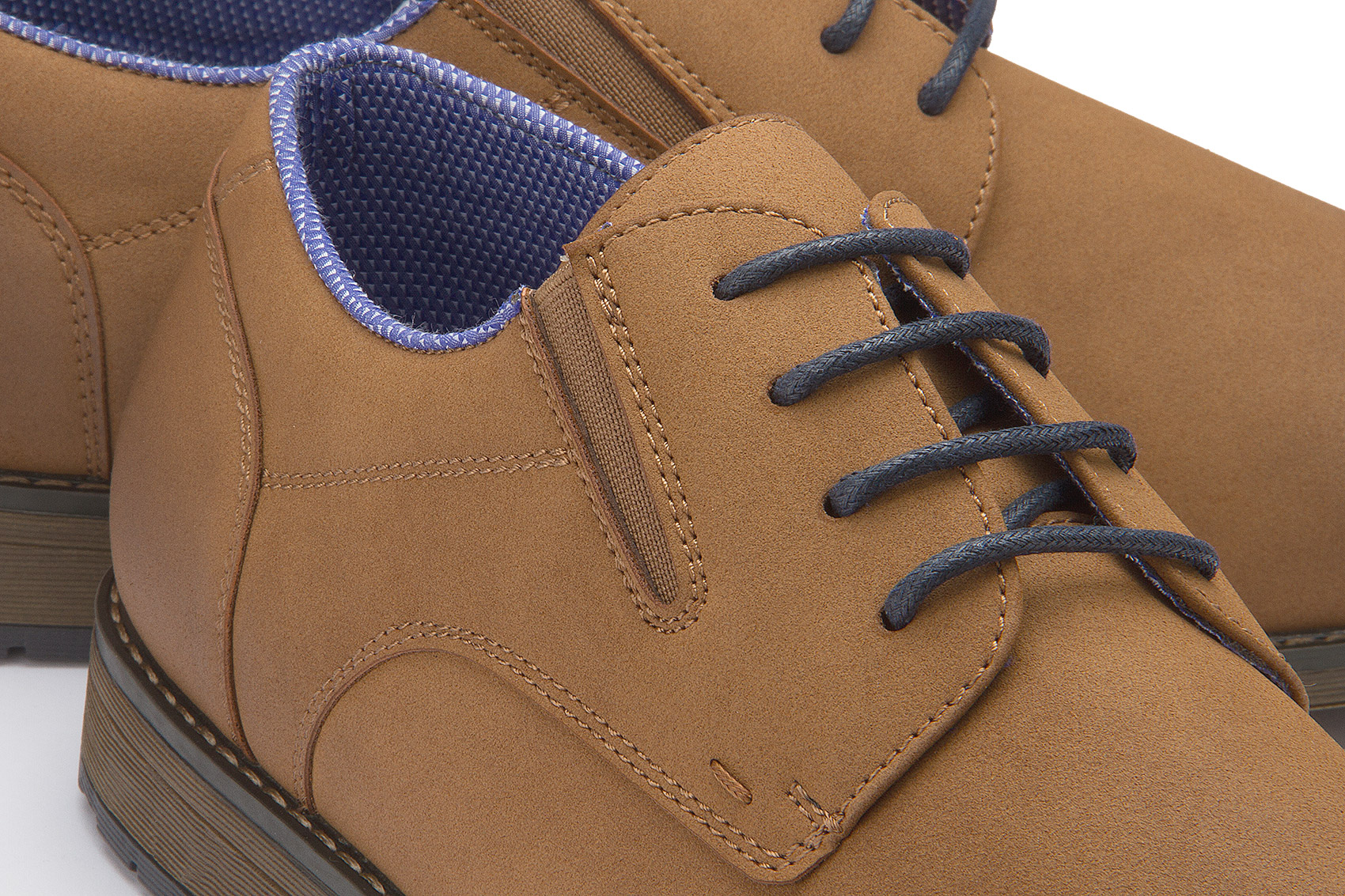 Klassischer Schnürschuh aus hochwertigem Lederimitat in Nubuk-Optik. Die Gummisohle mit leichten Profil sorgt bei jedem Wetter für einen guten Stand. Der dezente Gummieinsatz seitlich der Schnürung sorgt für eine gute Passform.