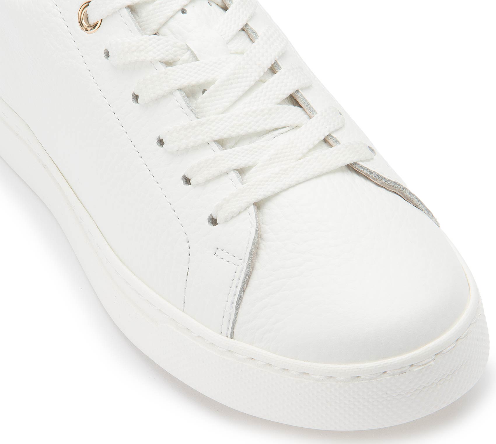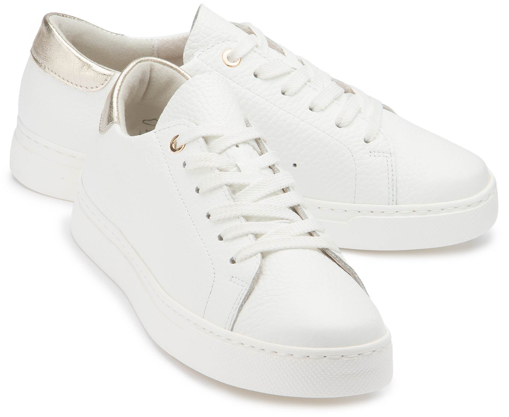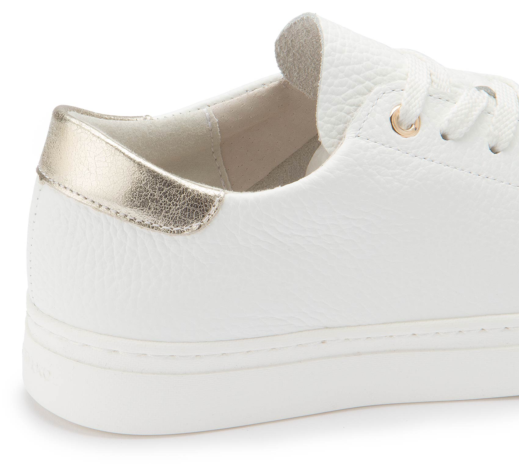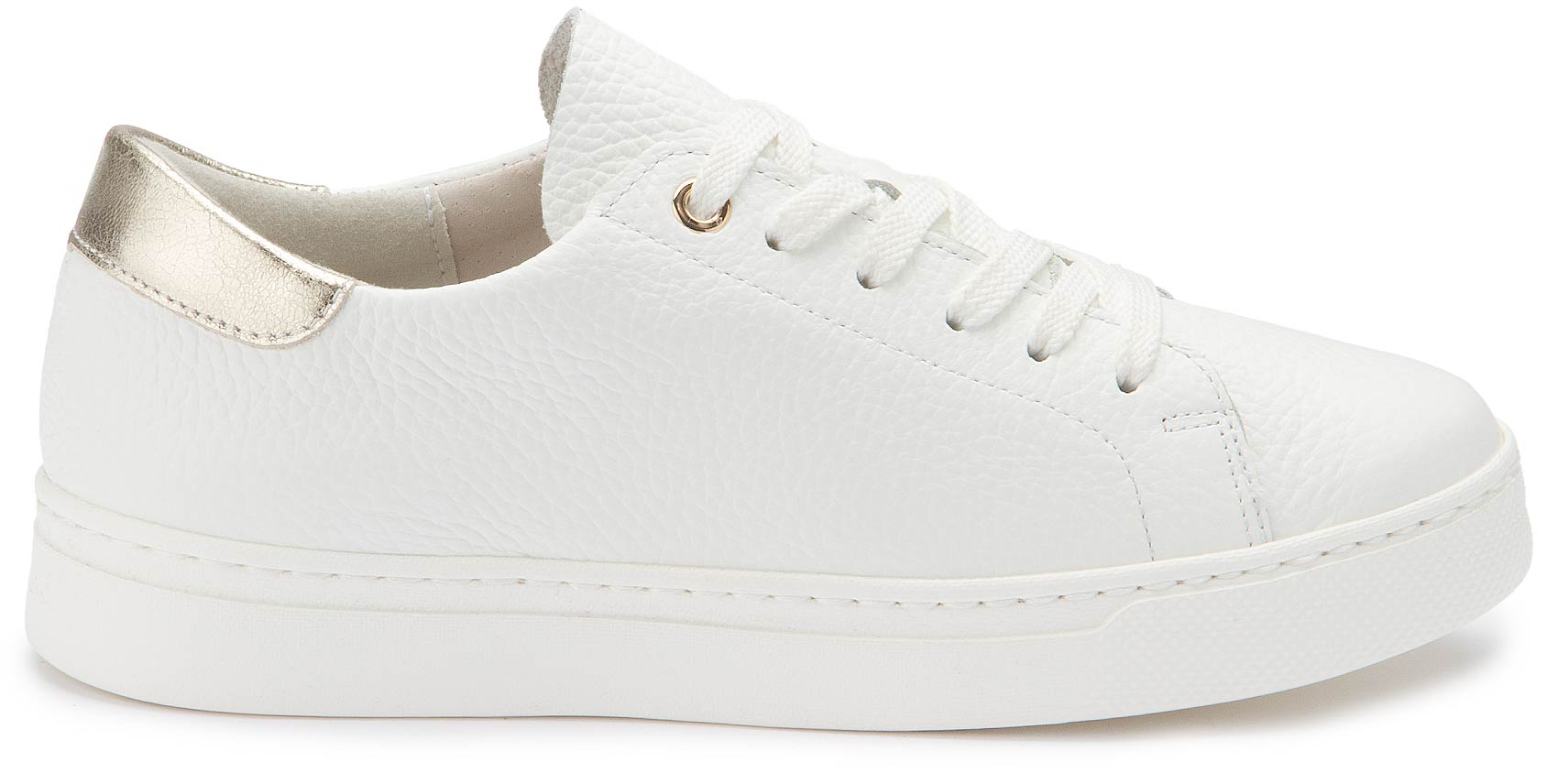 Dieser Schnürschuh aus weißem Leder überzeugt mit cleanem Design und hohem Tragekomfort. Das weiche Lederfutter sorgt für ein angenehmes Tragegefühl, während der goldfarbene Akzent an der Ferse einen dezenten, modischen Akzent setzt. Ideal für stilvolle Alltagslooks mit einem Hauch Eleganz.