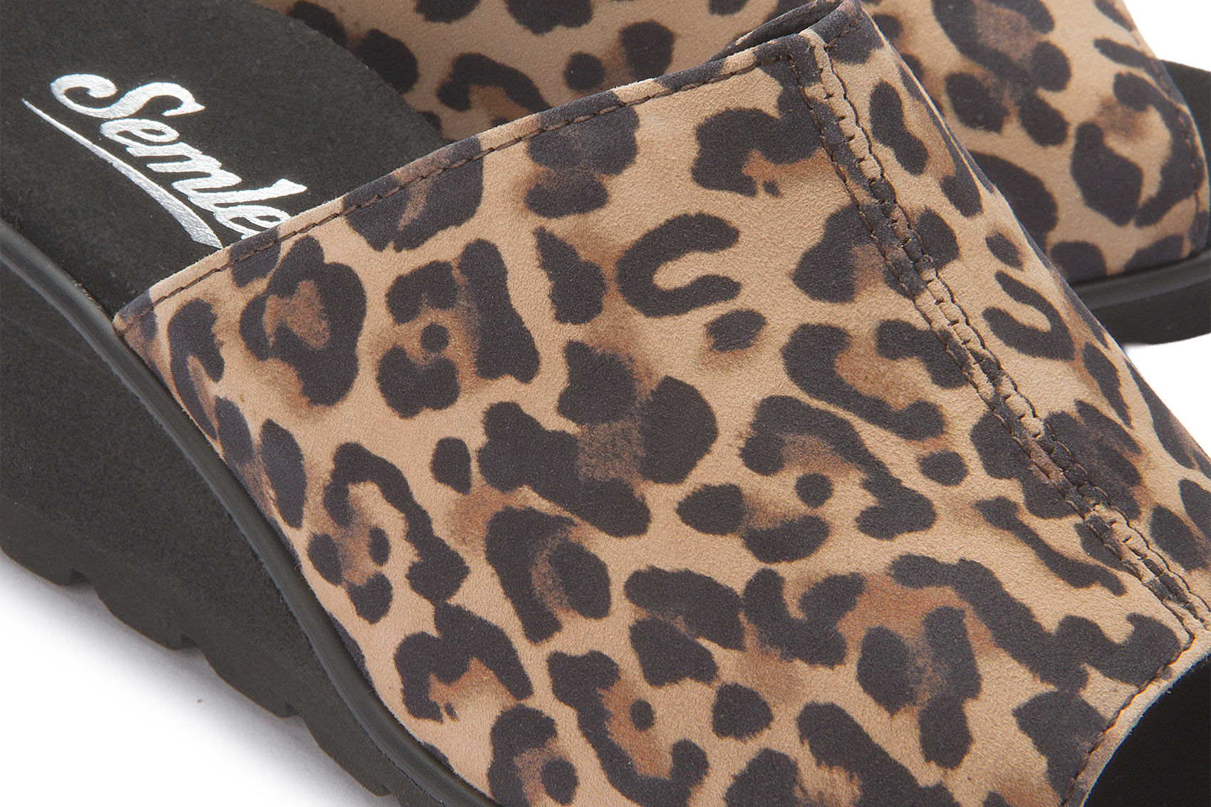 Elegante Wedge-Pantolette von Semler aus feinstem Rauleder in trendiger Leooptik. Der herausragende Tragekomfort wird durch die großzügige G-Weite und die weich gepolsterte Gummisohle perfekt abgerundet.