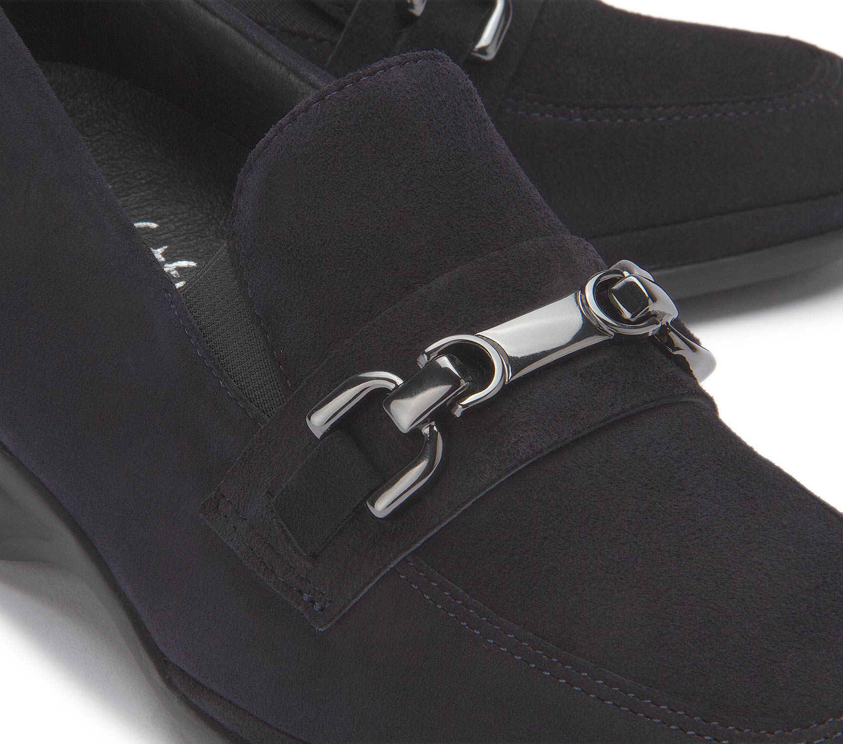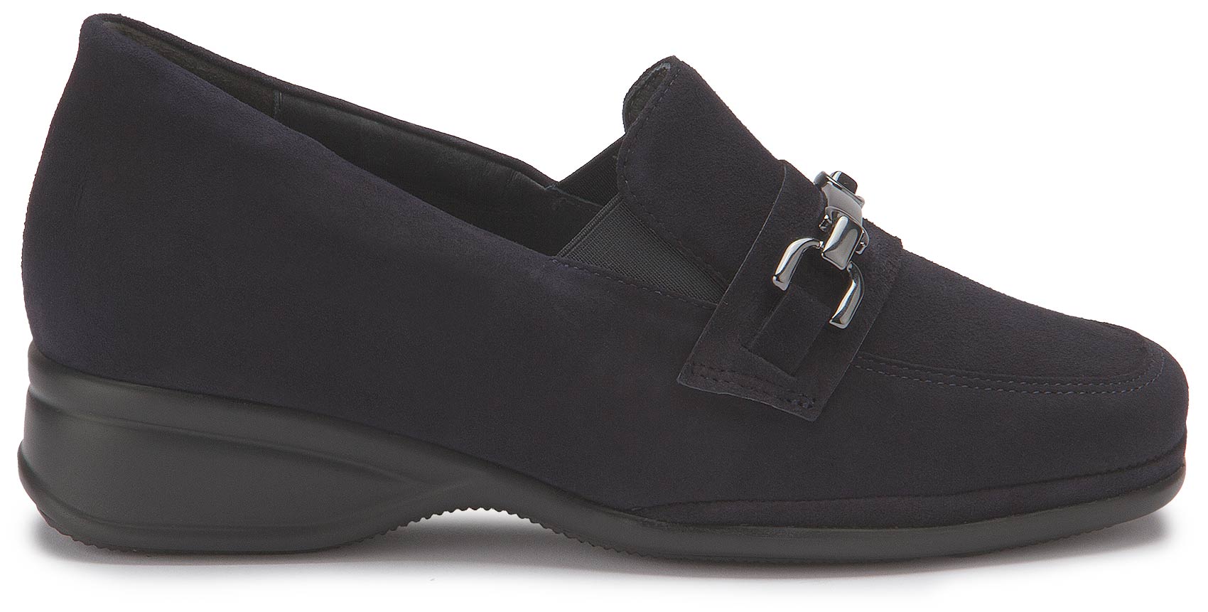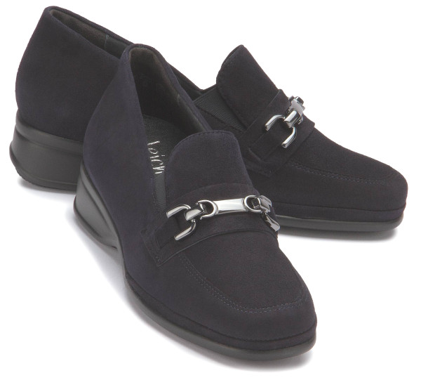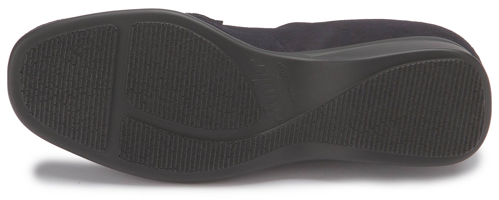 Besonders weich ist dieser Slipper der Marke Semler. Das Leder-Obermaterial ist angenehm zu tragen und sieht gleichzeitig schick aus. Die zwei Elasteinsätze erleichtern den Einstieg und passen sich dem Fuß dank ihrer Flexibilität optimal an. Das lederbezogene Vario-Fußbett ist herausnehmbar und macht so bei Bedarf Platz für eigene Einlagen. Der Gummiboden mit dem angenehmen Absatz ist für den Alltagsgebrauch ideal.