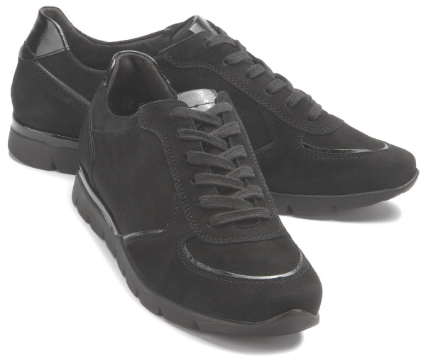 Außergewöhnlich schick ist dieser sportliche Schnürschuh der Marke Semler. Einen sportiven Effekt bildet die flexible Gummisohle. Ein Wechselfußbett ermöglicht es, diesen klassischen Sneaker mit der Weite H auch mit individuellen Einlagen zu tragen.