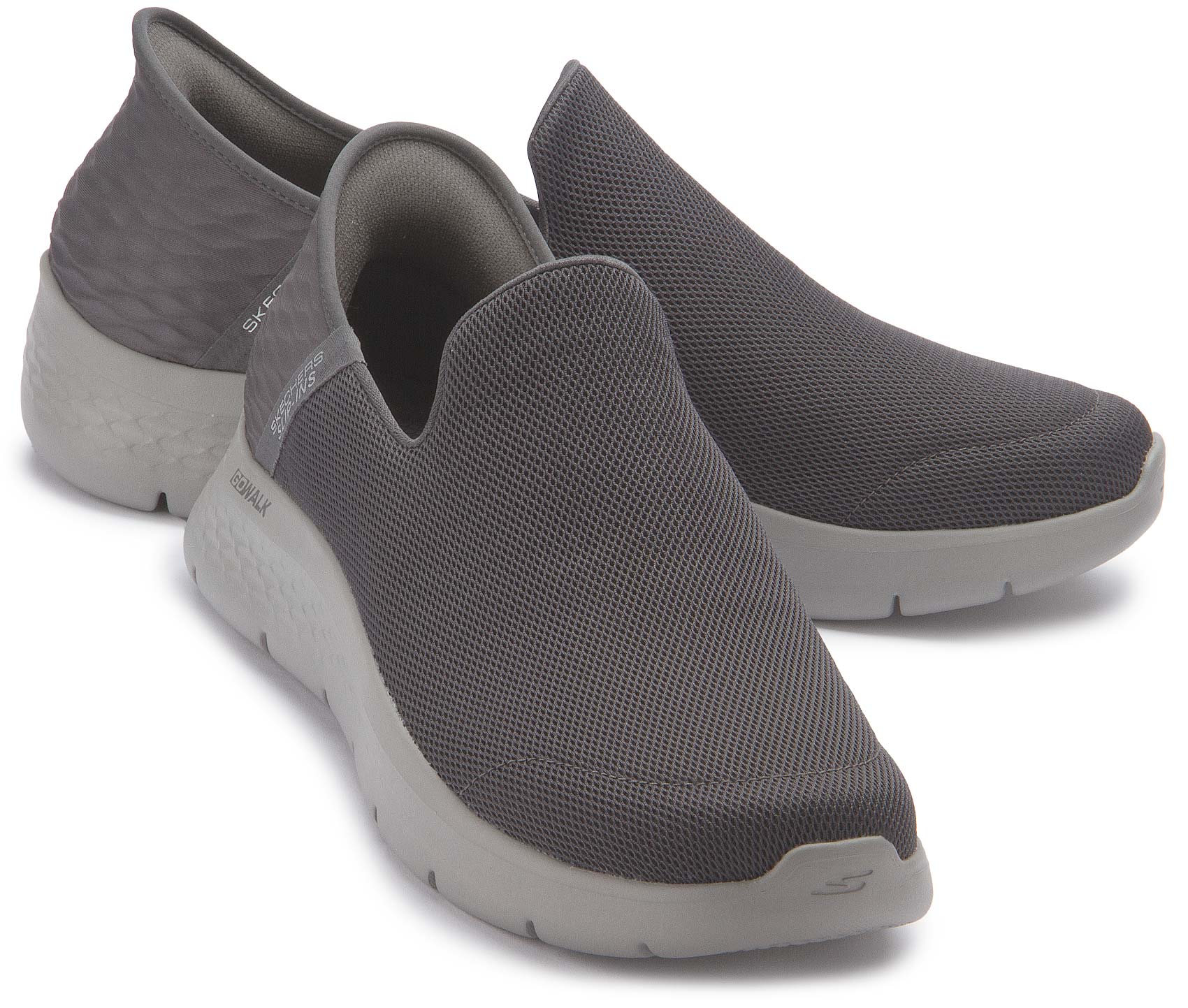 Mit den Skechers Hands Free Slip-Ins® GO WALK® Flex – No Hands kannst du einfach durchstarten und flexiblen Komfort und Stil genießen. Dieser Schuhtyp verfügt über das exklusive Skechers Fersenkissen (Heel Pillow), eine Skechers Air-Cooled Memory Foam-Innensohle und eine leichte, gepolsterte ULTRA GO® Zwischensohle.