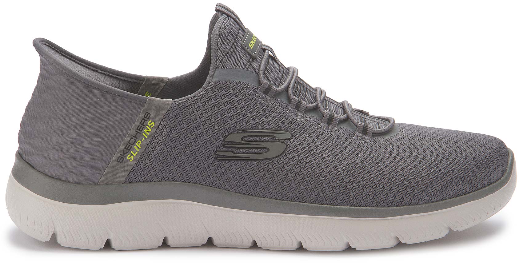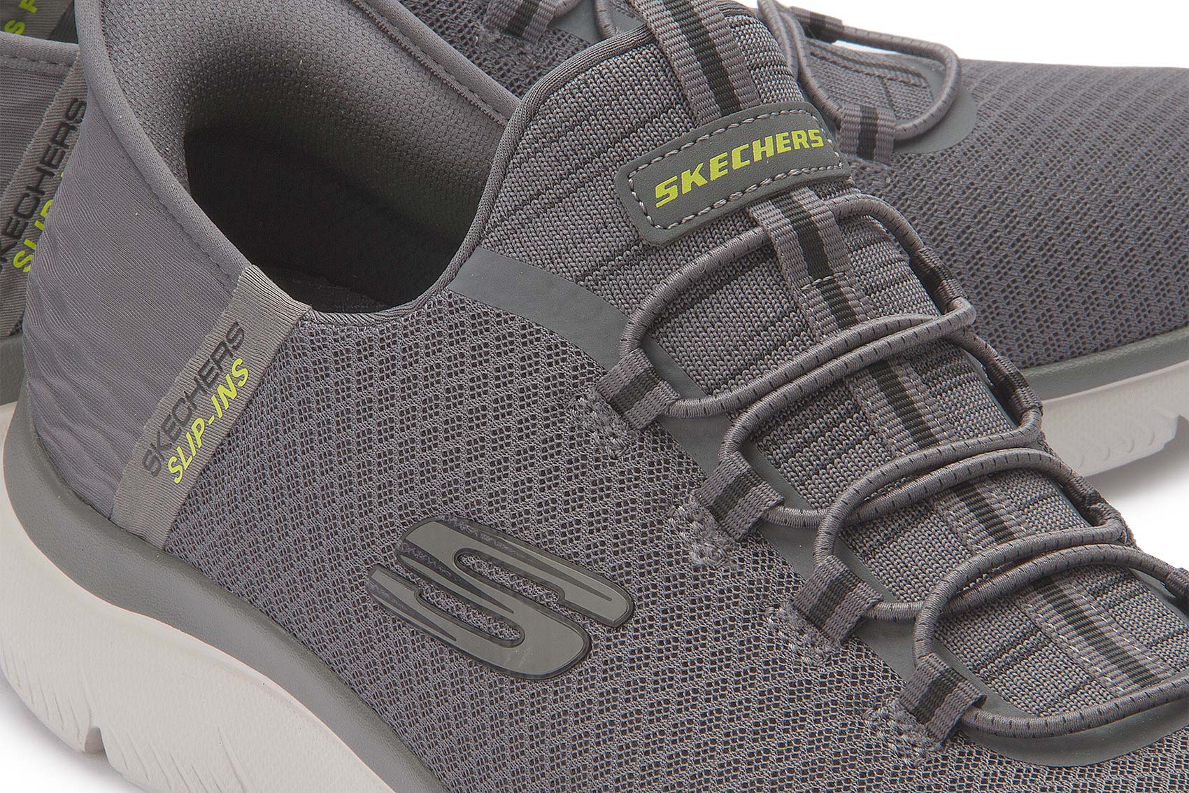 Ultimativer Tragekomfort mit Skechers Hands Free Slip-ins®: Summits - High Range. Dieser vegane Schuh ist mit dem exklusiven Skechers Fersenkissen (Heel Pillow) ausgestattet, das deinen Fuß sicher an Ort und Stelle hält, und verfügt über das einzigartige geformte Slip-Ins™ Fersenpanel, ein Obermaterial aus Mesh mit angedeuteter Schnürung und eine gepolsterte Skechers Air-Cooled Memory Foam-Innensohle.