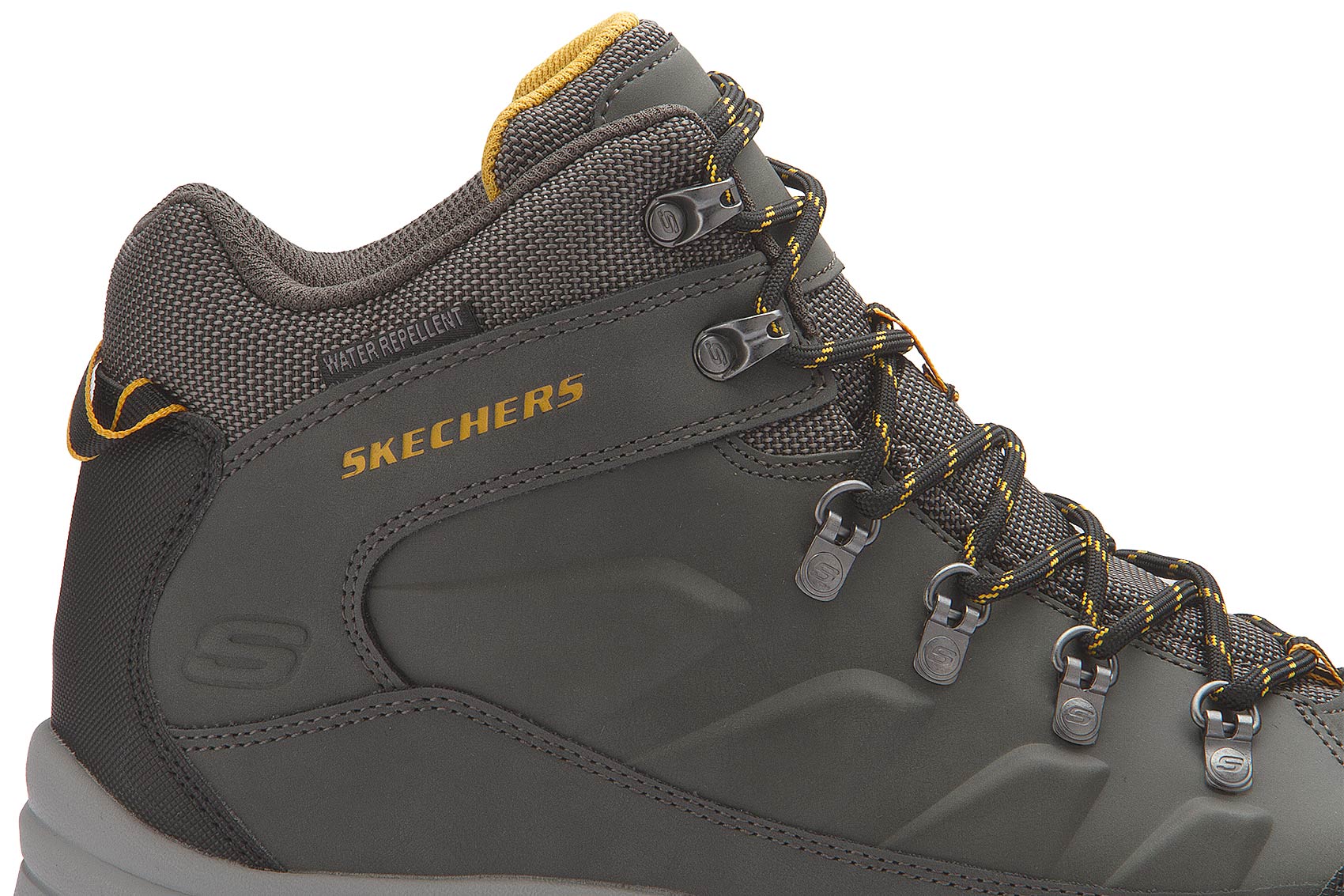 Gönn dir neue Abenteuer und stets maximalen Halt – jetzt mit dem strapazierfähigem Skechers Relaxed Fit®. Dieser Schnürschuh für Outdoor-Trails verfügt über ein wasserabweisendes teilsynthetisches Obermaterial aus Mesh sowie eine gepolsterte Skechers Air-Cooled Memory Foam®-Innensohle.