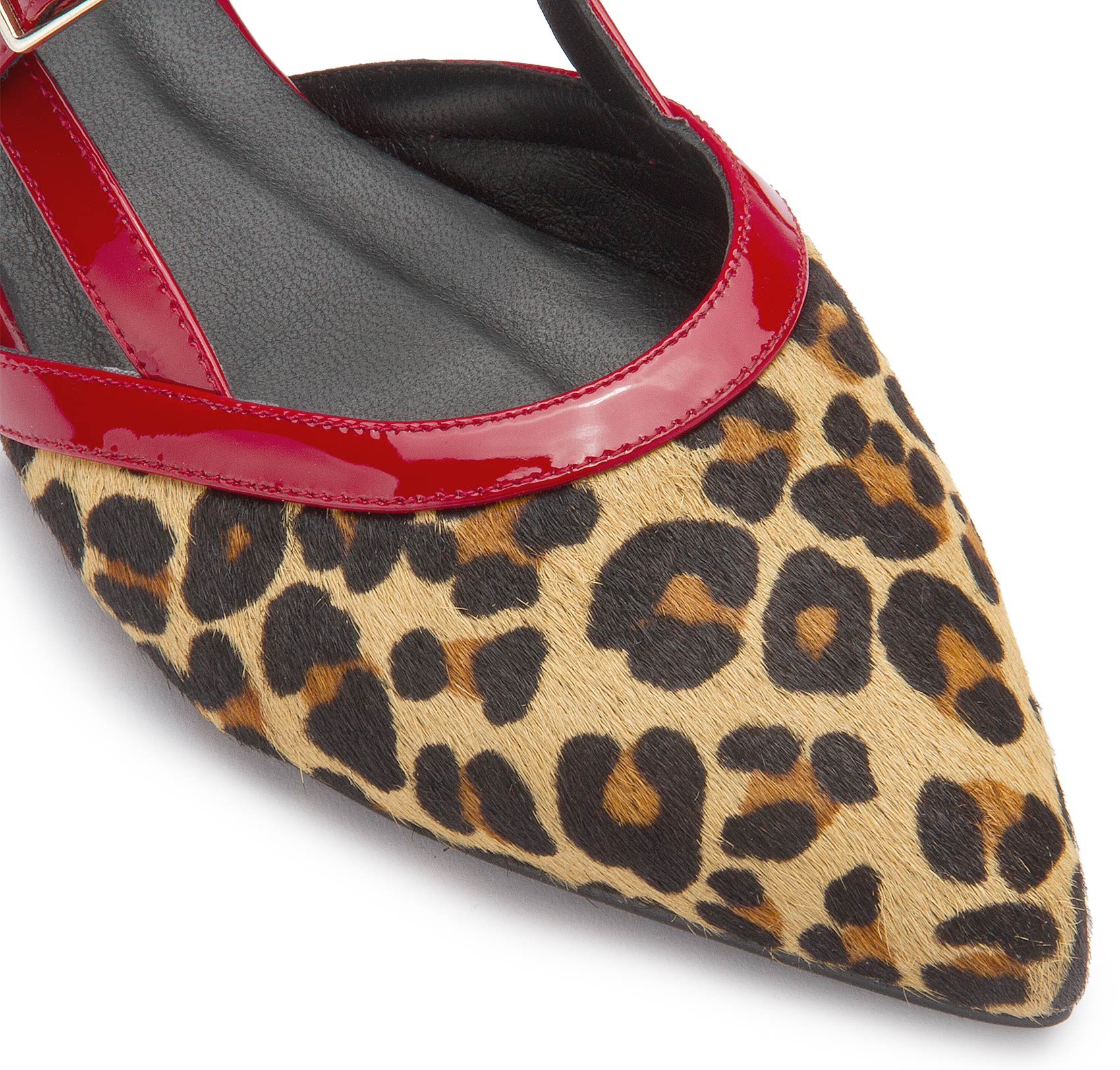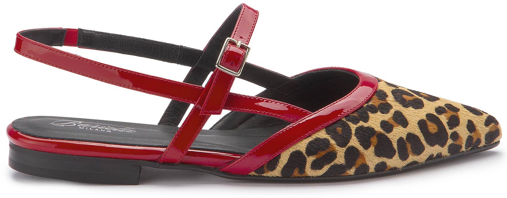 Dieser Sling von Bariello wird alle neidisch machen! In Leo-Optik und Riemchen aus bordeaux farbenen Lackleder ist dieser Sling ein absolutes Highlight! Das Lederfutter und die geposterte Innensohle garantieren Komfort auf ganzer Linie. Worauf also noch warten?
