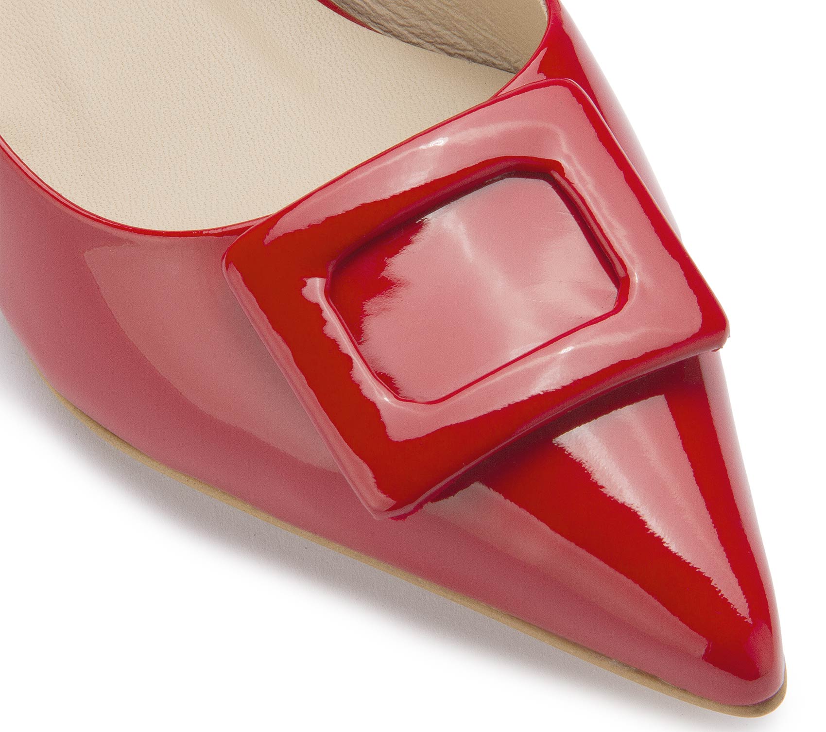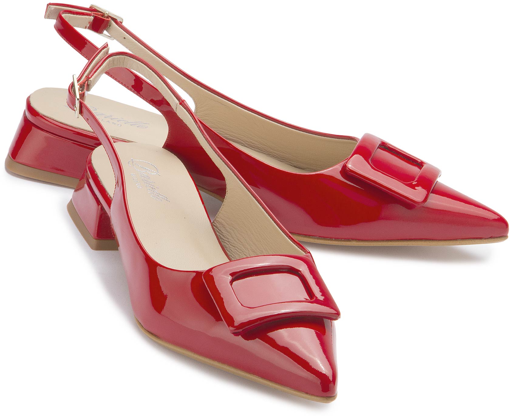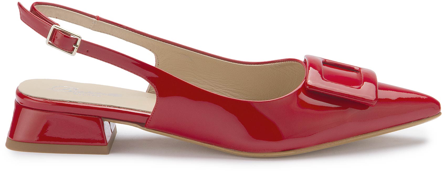 Dieses Schmuckstück von Bariello präsentiert sich in kirschrotem Lackleder, spitzer Zehenkappe und quadratischer Dekoschnalle. Das Lederfutter garantiert Komfort, wie auch der Blockabsatz, der alltagstauglich und gleichzeitig elegant wirkt. Diese Sling Pumps von Bariello werten wirklich jedes Outfit auf!