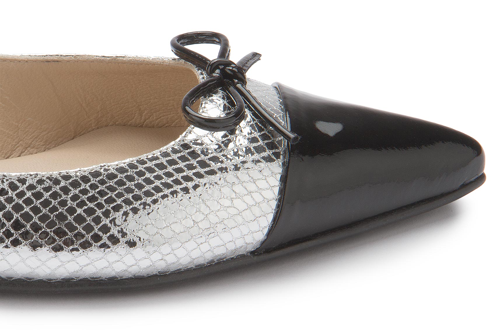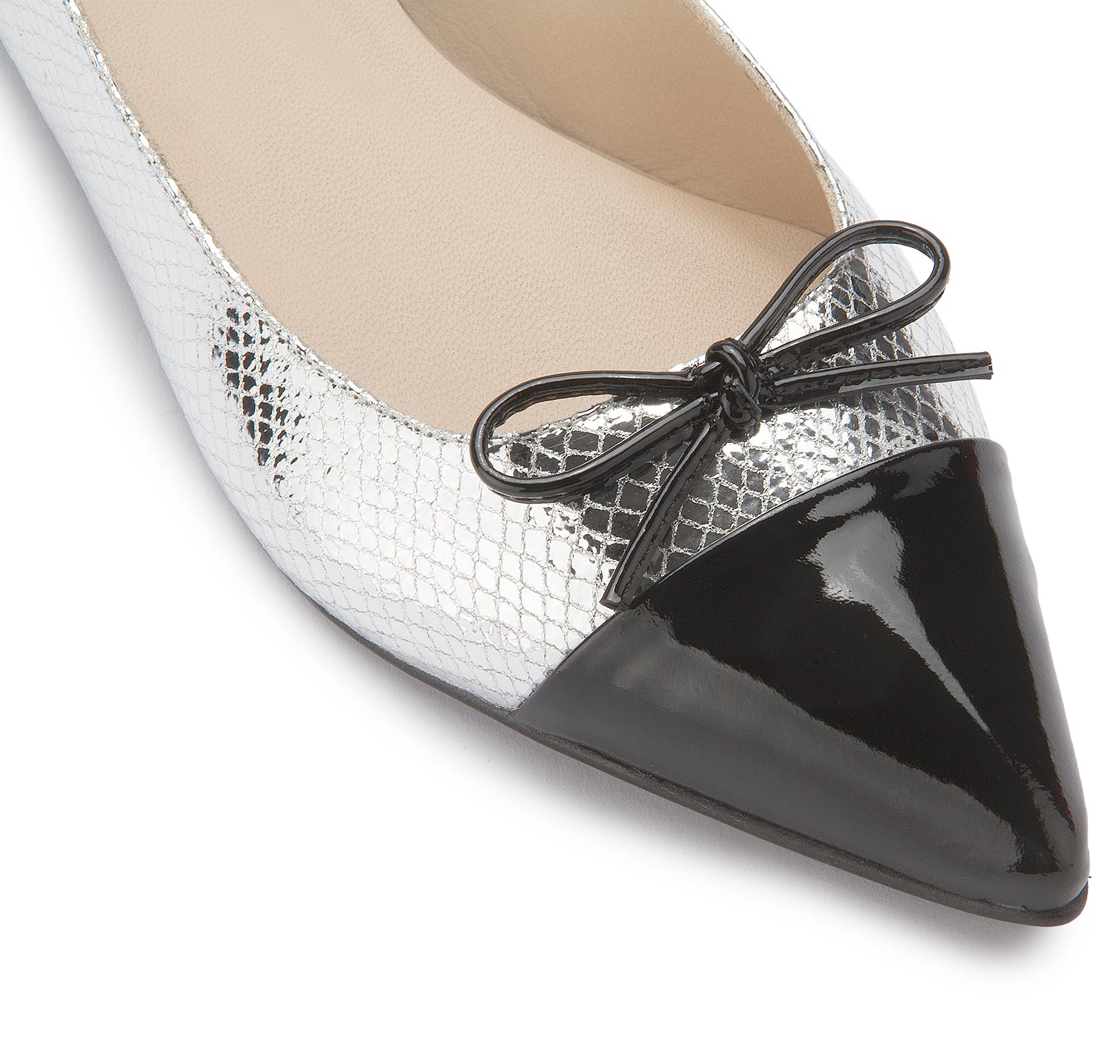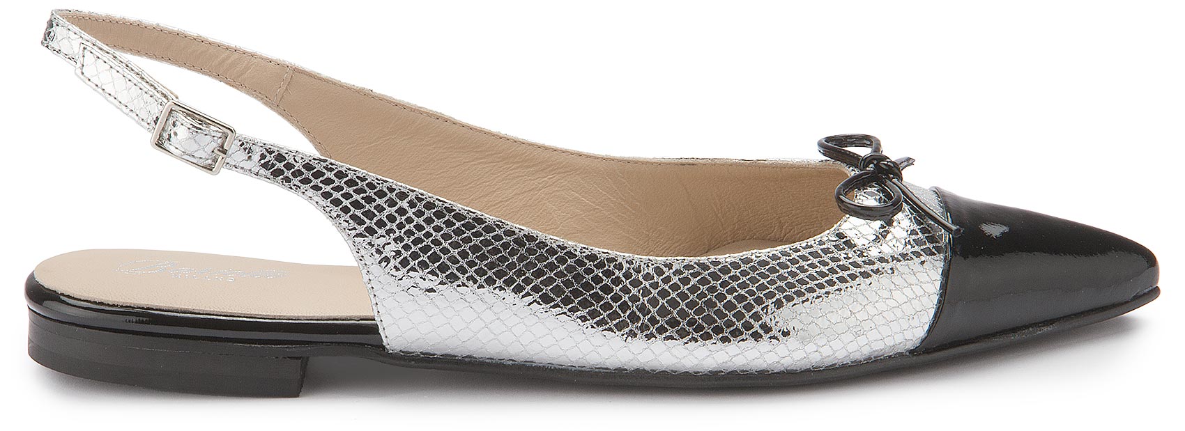 Diese silberne Slings sind der Inbegriff von Eleganz und Stil. Mit ihrem atemberaubenden Reptilmuster verleihen sie jedem Outfit eine glamouröse Note. Die Vorderkappe aus Lack sorgt für einen edlen Look, während die Schleife einen verspielten Akzent setzt. Diese Schuhe sind perfekt für besondere Anlässe, sei es eine Hochzeit, eine Gala oder einfach nur ein luxuriöses Abendessen. Sie verleihen jedem Look eine Extraportion Raffinesse und machen dich zum Star des Abends!