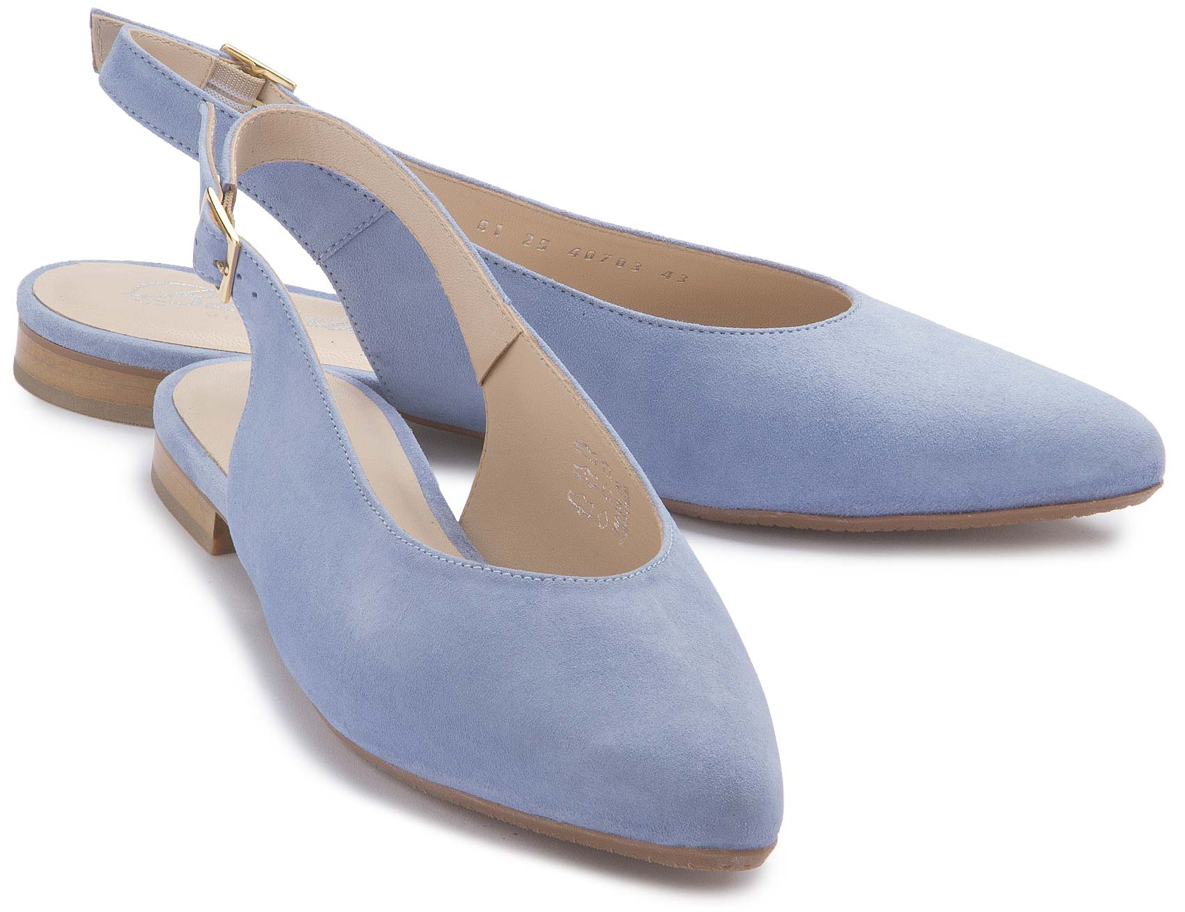 Die spitz zulaufenden Sling-Ballerinas von Bariello Milano überzeugen im angesagten Look. Die schlanke Form und das trendstarke Design verleihen Ihrem Outfit ein elegantes Finish. Sehr bequeme Passform durch das weiche Nubukleder und das gepolsterte Fußbett. Schreiten Sie ladylike wie auf Wolken durch Ihren Alltag!