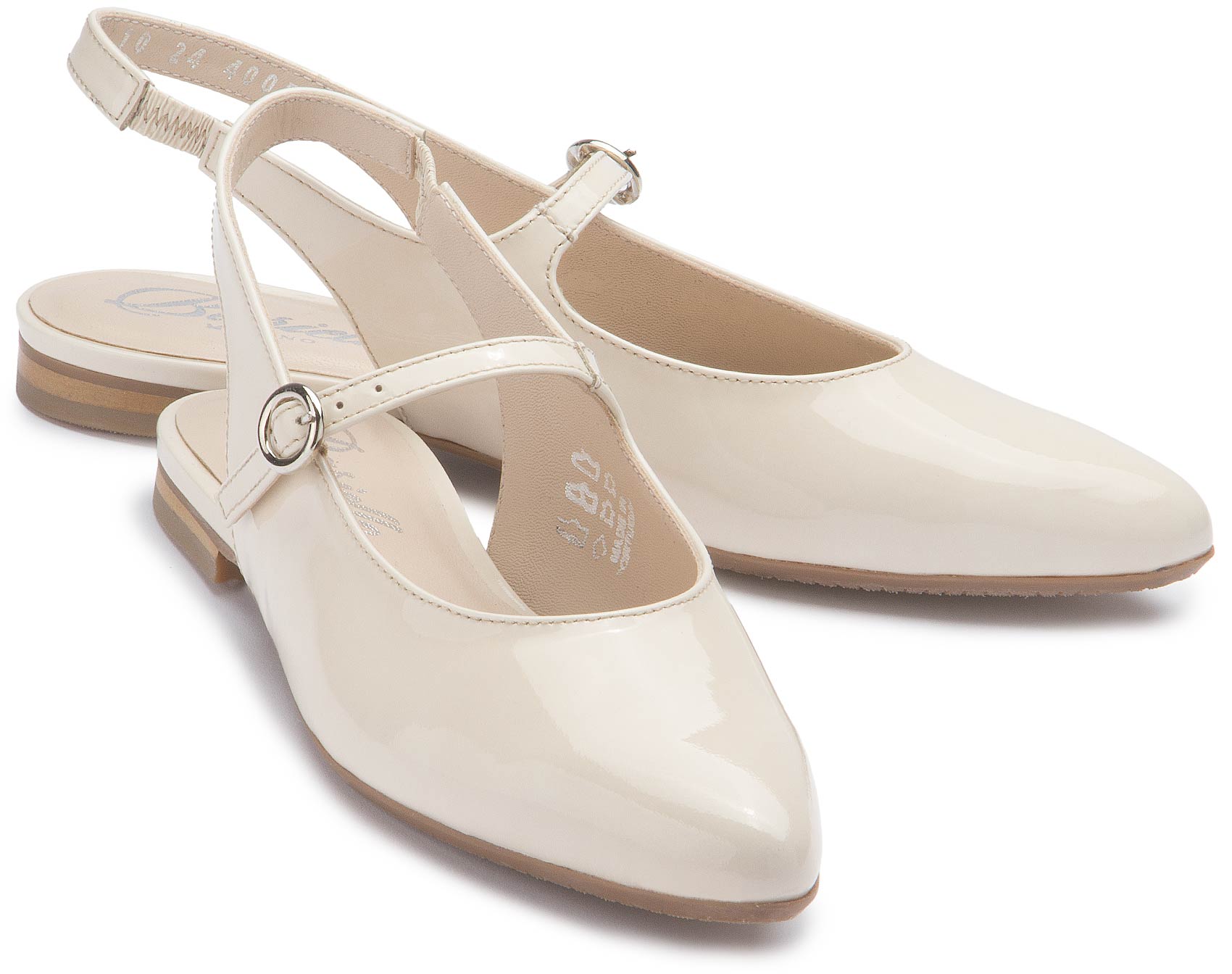 Dieser raffinierte Sling Ballerina von Bariello wird alle Blicke auf sich ziehen! Hochwertiges Lackleder, gepolsterte Innensohle und der kleine Absatz garantieren höchsten Komfort. Ob lässig zur Jeans oder im Büro-Alltag zur Stoffhose, die Kombinationsmöglichkeiten sind unendlich!