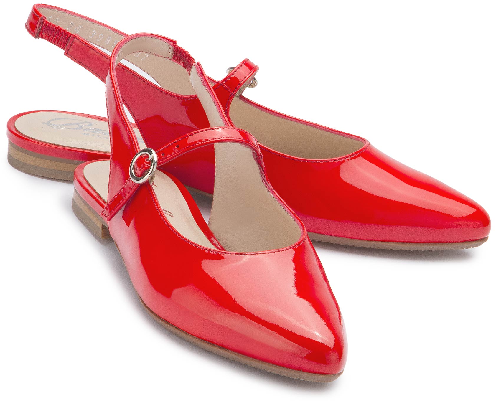Dieser raffinierte Sling Ballerina von Bariello wird alle Blicke auf sich ziehen! Hochwertiges Lackleder, gepolsterte Innensohle und der kleine Absatz garantieren höchsten Komfort. Ob lässig zur Jeans oder im Büro-Alltag zur Stoffhose, die Kombinationsmöglichkeiten sind unendlich!
