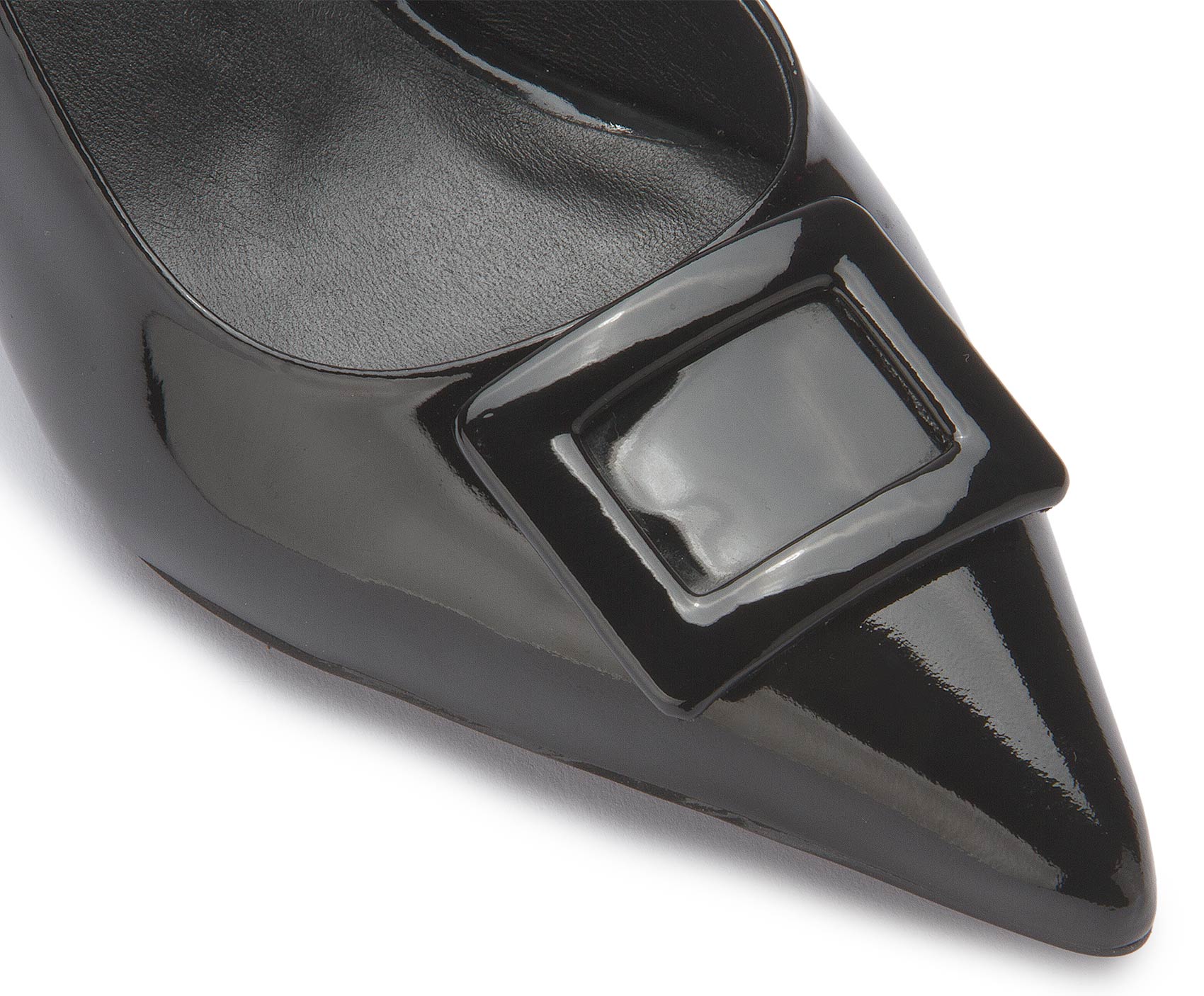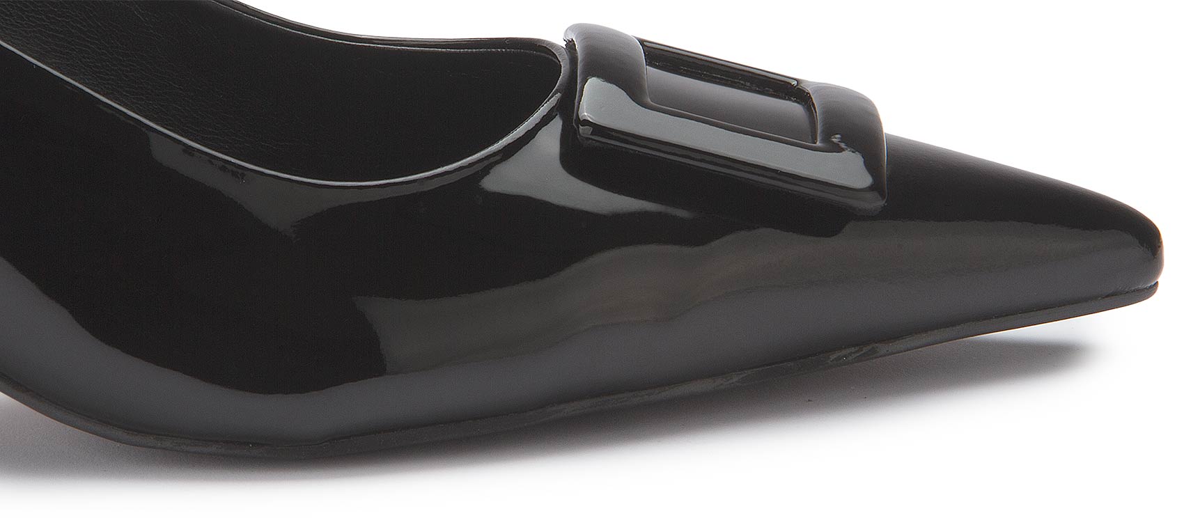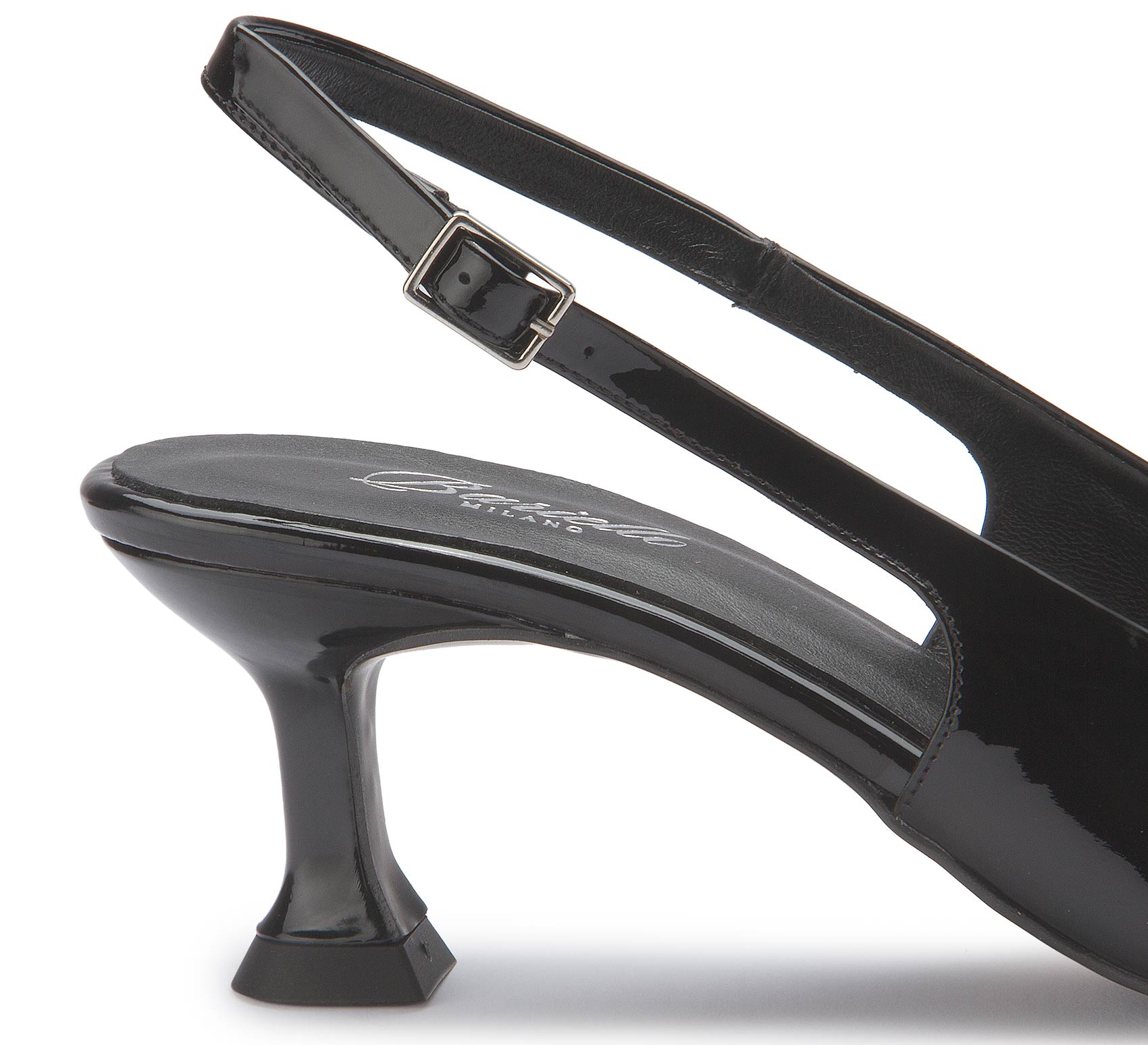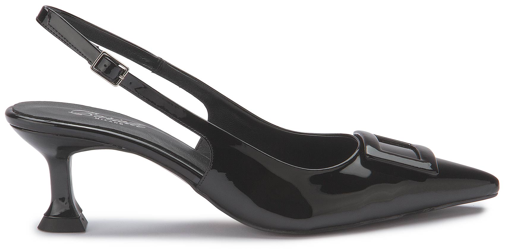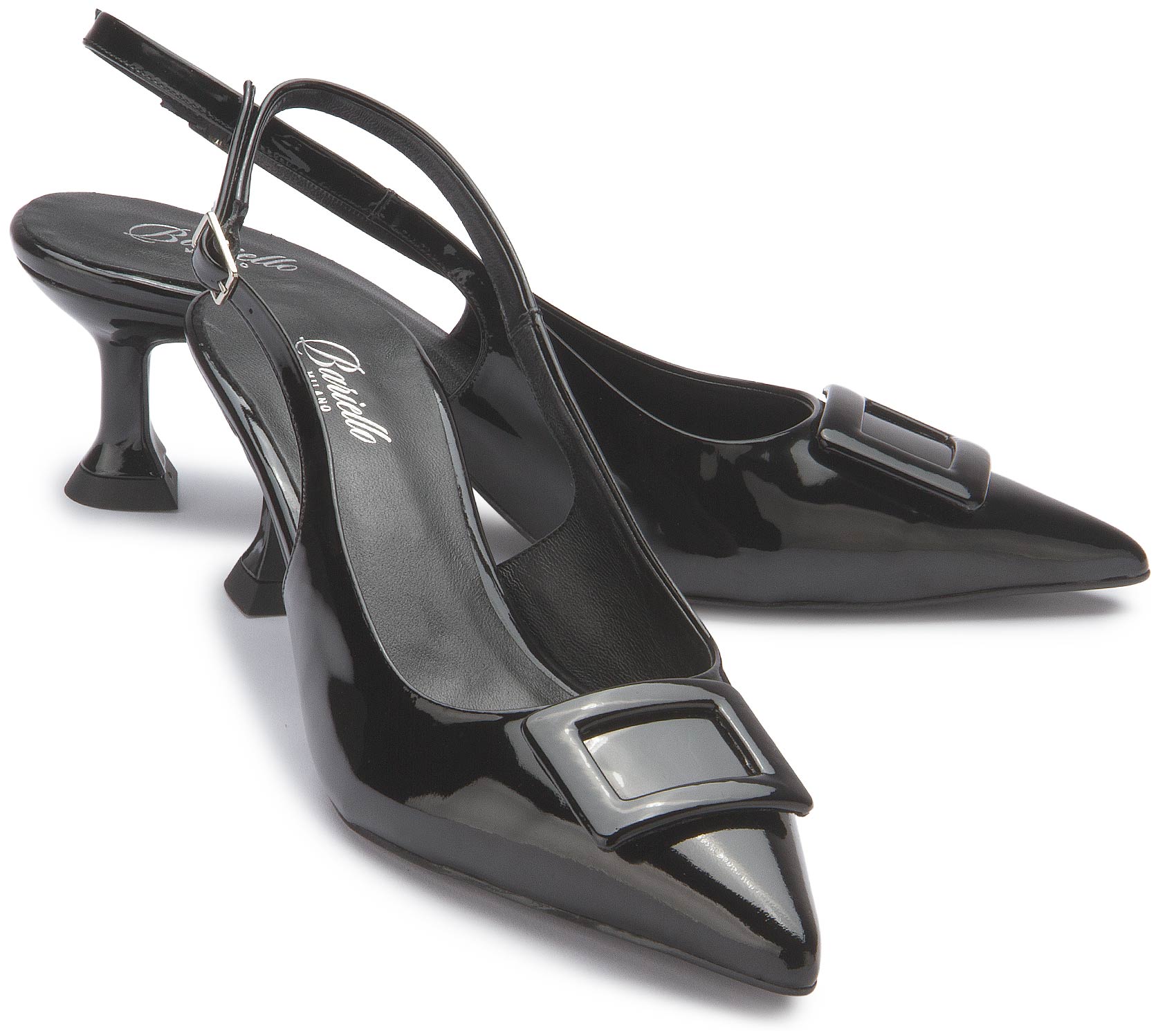 Dieser elegante Sling-Pump von Bariello überzeugt mit hochwertigem Lackleder, einer spitzen Zehenkappe und einer auffälligen, quadratischen Dekoschnalle. Das weiche Lederfutter sorgt für angenehmen Tragekomfort. Ein wahrer Blickfang, der jedes Outfit stilvoll abrundet!