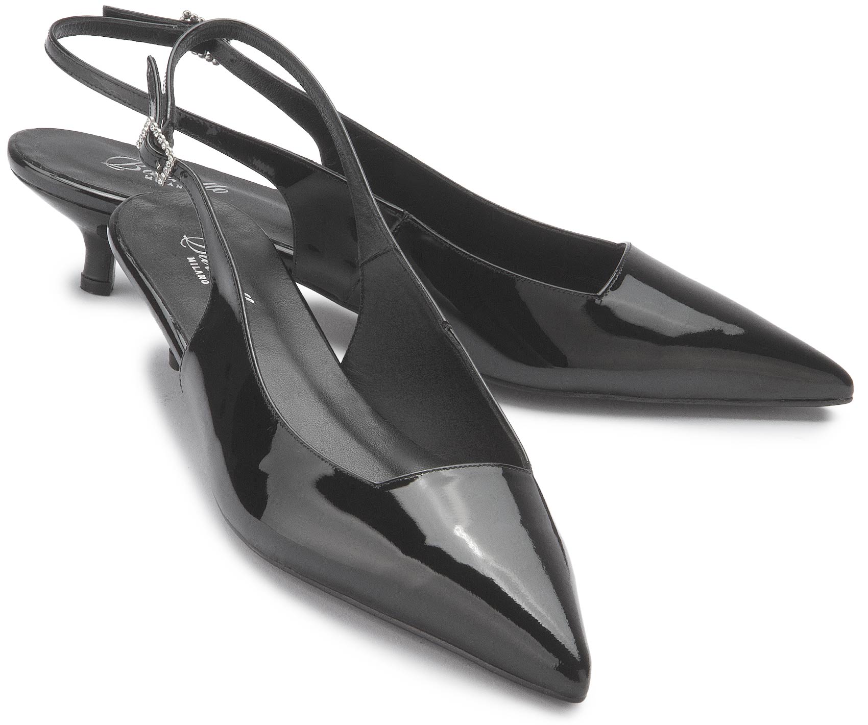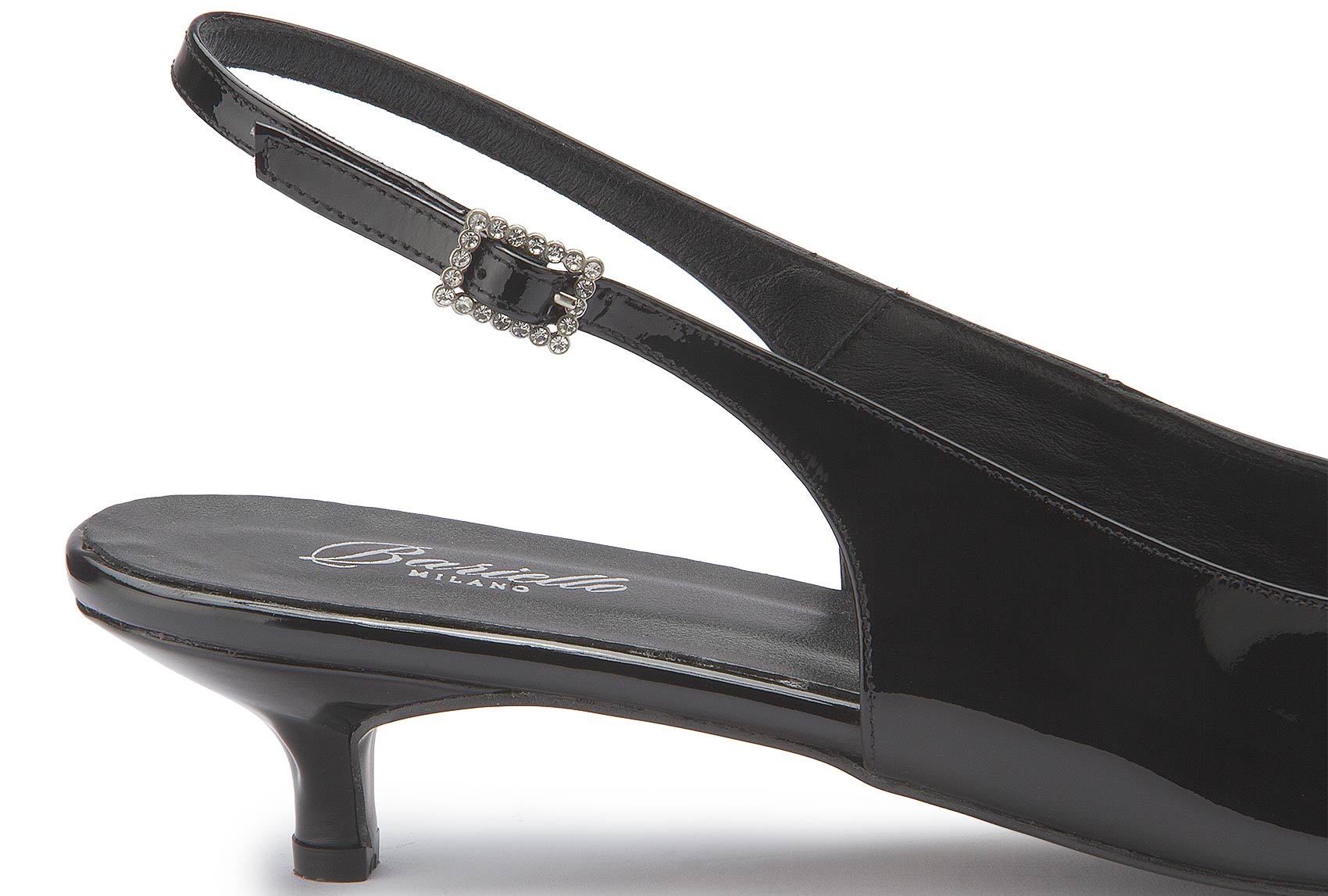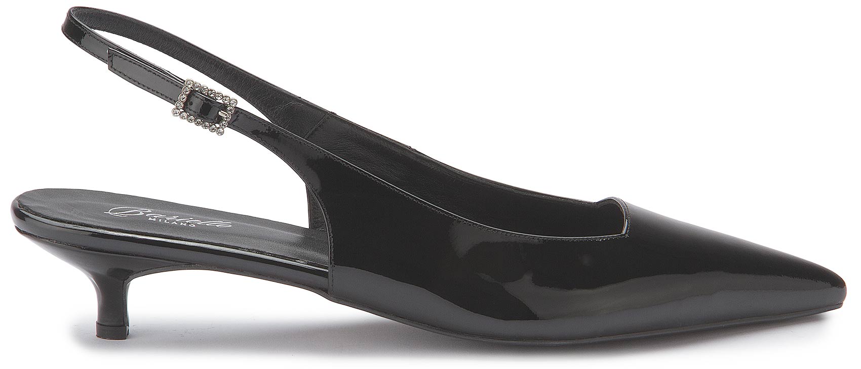 Dieser schwarze Sling von Bariello vereint klassische Eleganz mit modernem Chic. Das weiche Leder-Innenfutter sorgt für angenehmen Tragekomfort, während der verstellbare Riemen eine optimale Passform garantiert. Ein stilvoller Begleiter für besondere Anlässe oder den eleganten Alltagslook.