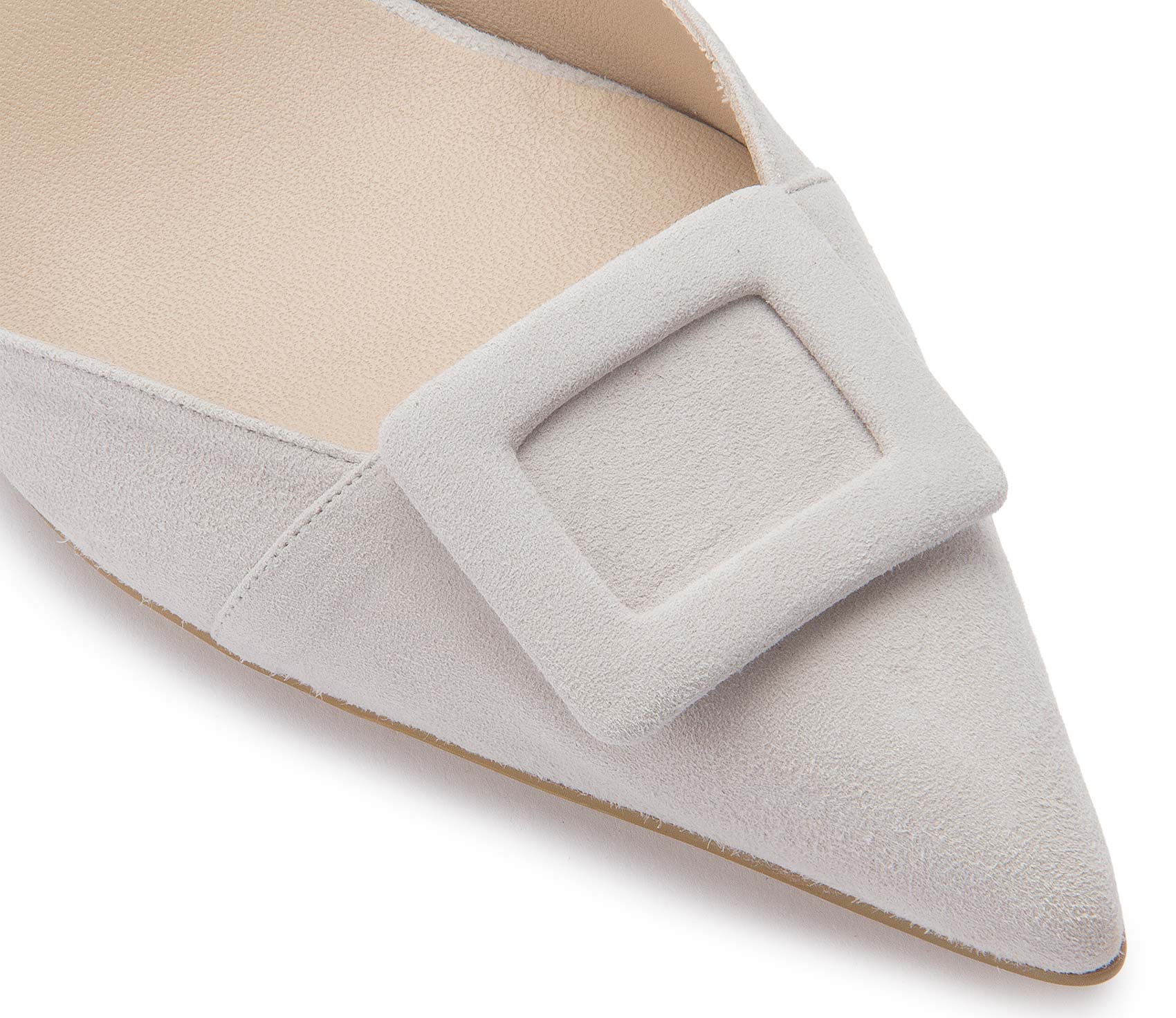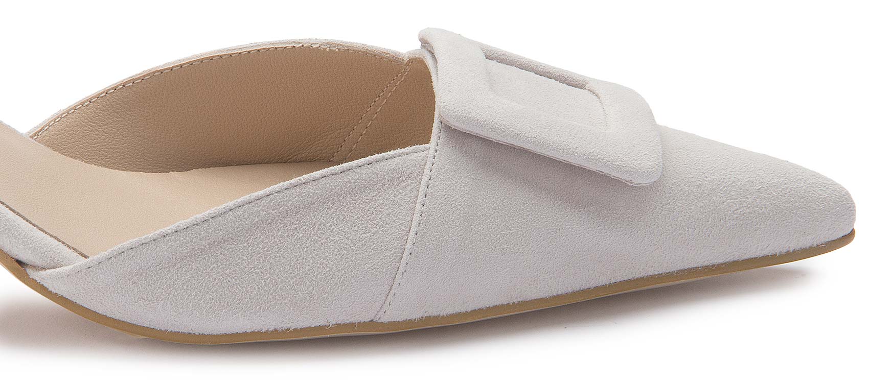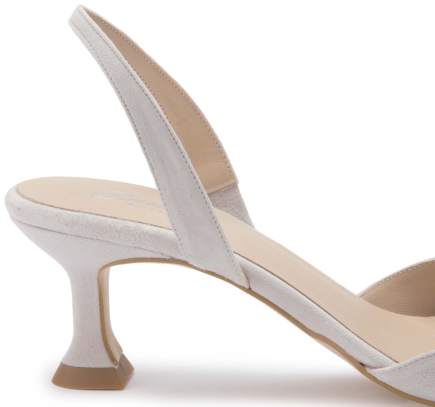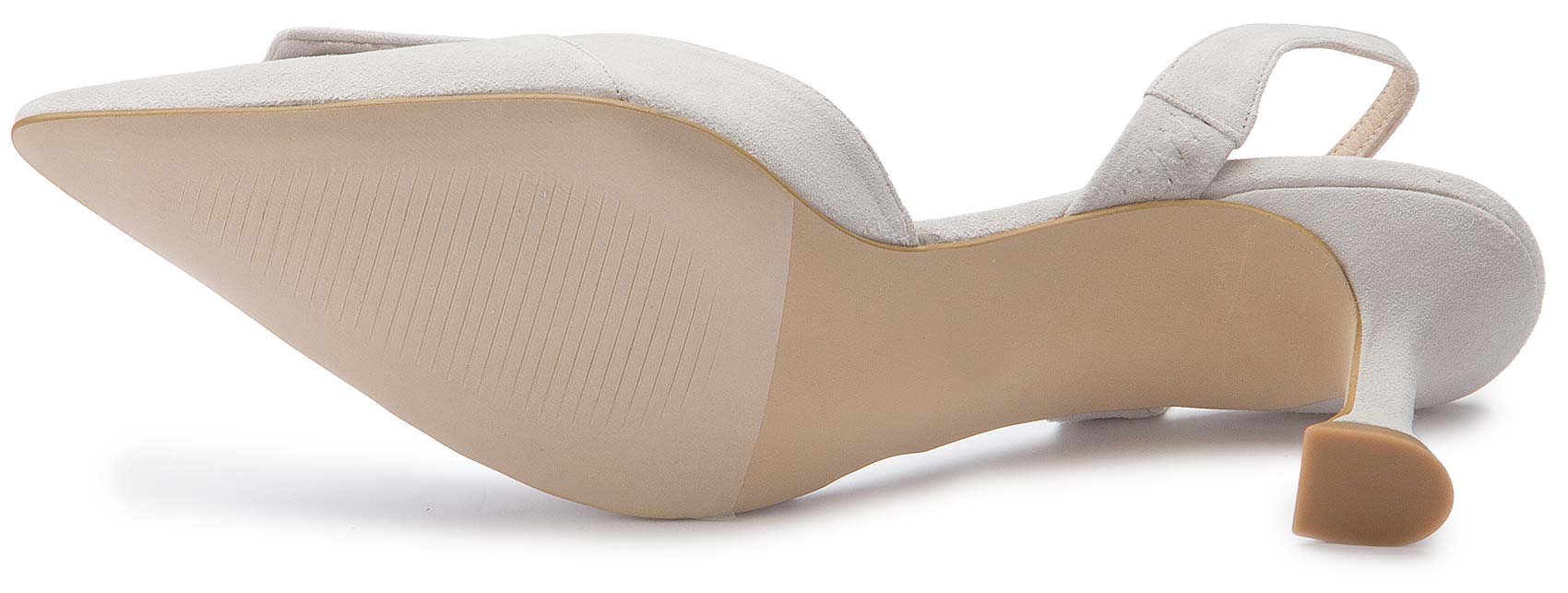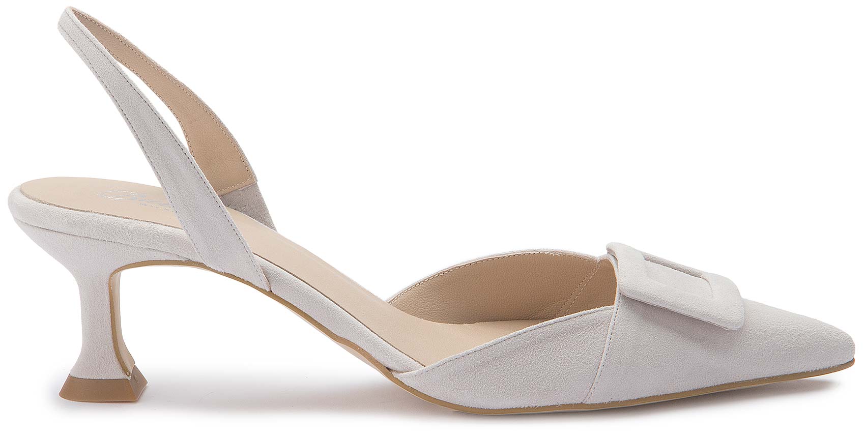 Dieses Schmuckstück von Bariello präsentiert sich in einem sehr hellgrauen Rauleder, spitzer Zehenkappe und quadratischer Dekoschnalle. Das Lederfutter garantiert Komfort, wie auch der Blockabsatz, der alltagstauglich und gleichzeitig elegant wirkt. Diese Sling Pumps von Bariello werten wirklich jedes Outfit auf!