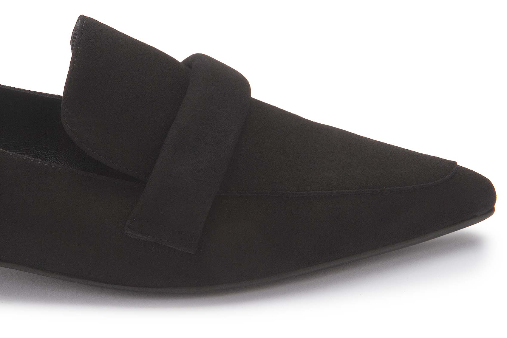 Dieser Bariello Slipper zeichnet sich durch sein minimalistisches und elegantes Design aus. Das weiche, schwarze Nubukleder sorgt für einen stilvollen und zugleich komfortablen Auftritt. Der flache Absatz und die dezente, überlappende Zierlasche auf der Vorderseite verleihen dem Schuh eine moderne, schlichte Ästhetik. Ideal für den Alltag und besondere Anlässe, kombiniert dieser Slipper zeitlose Eleganz mit praktischem Tragekomfort.