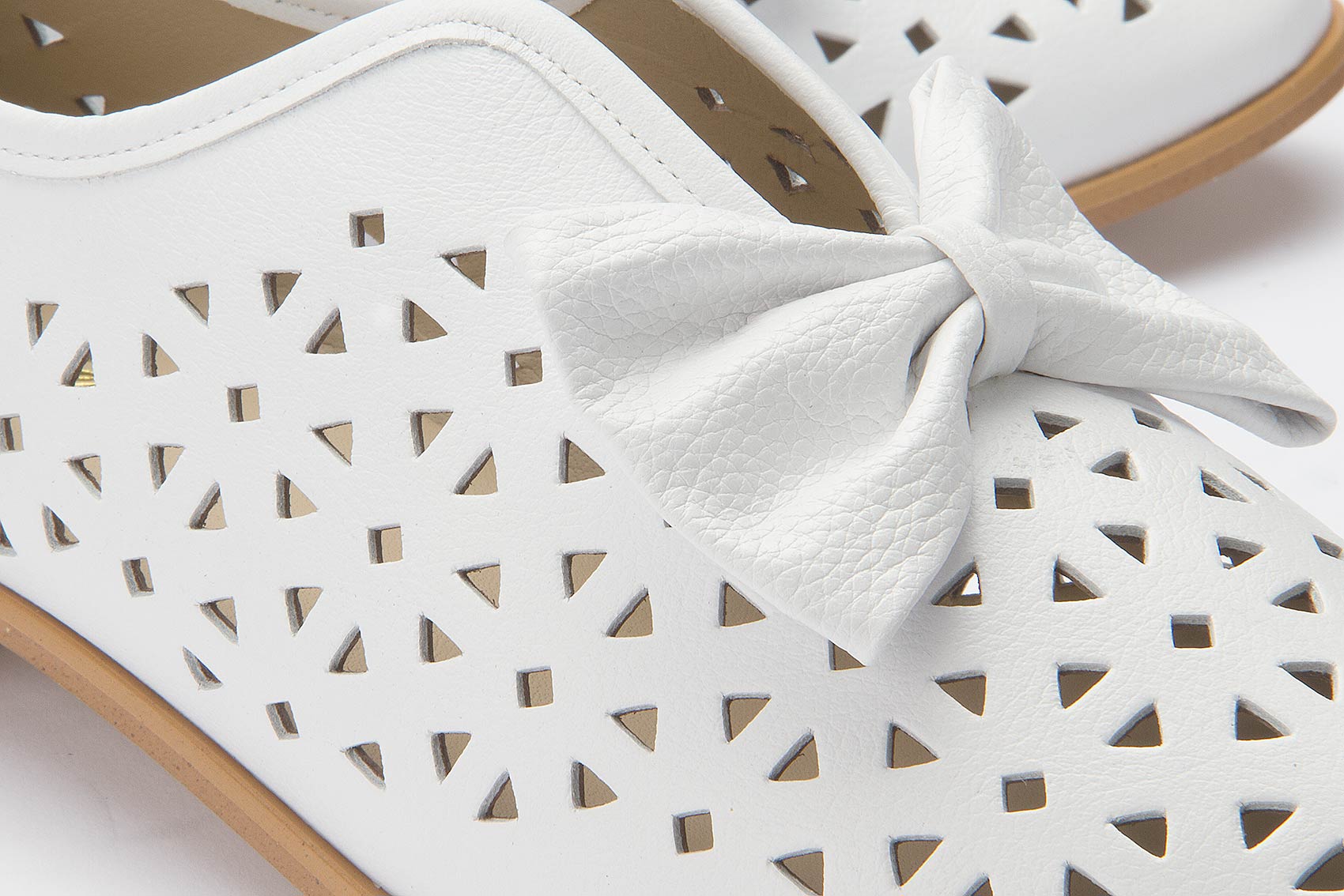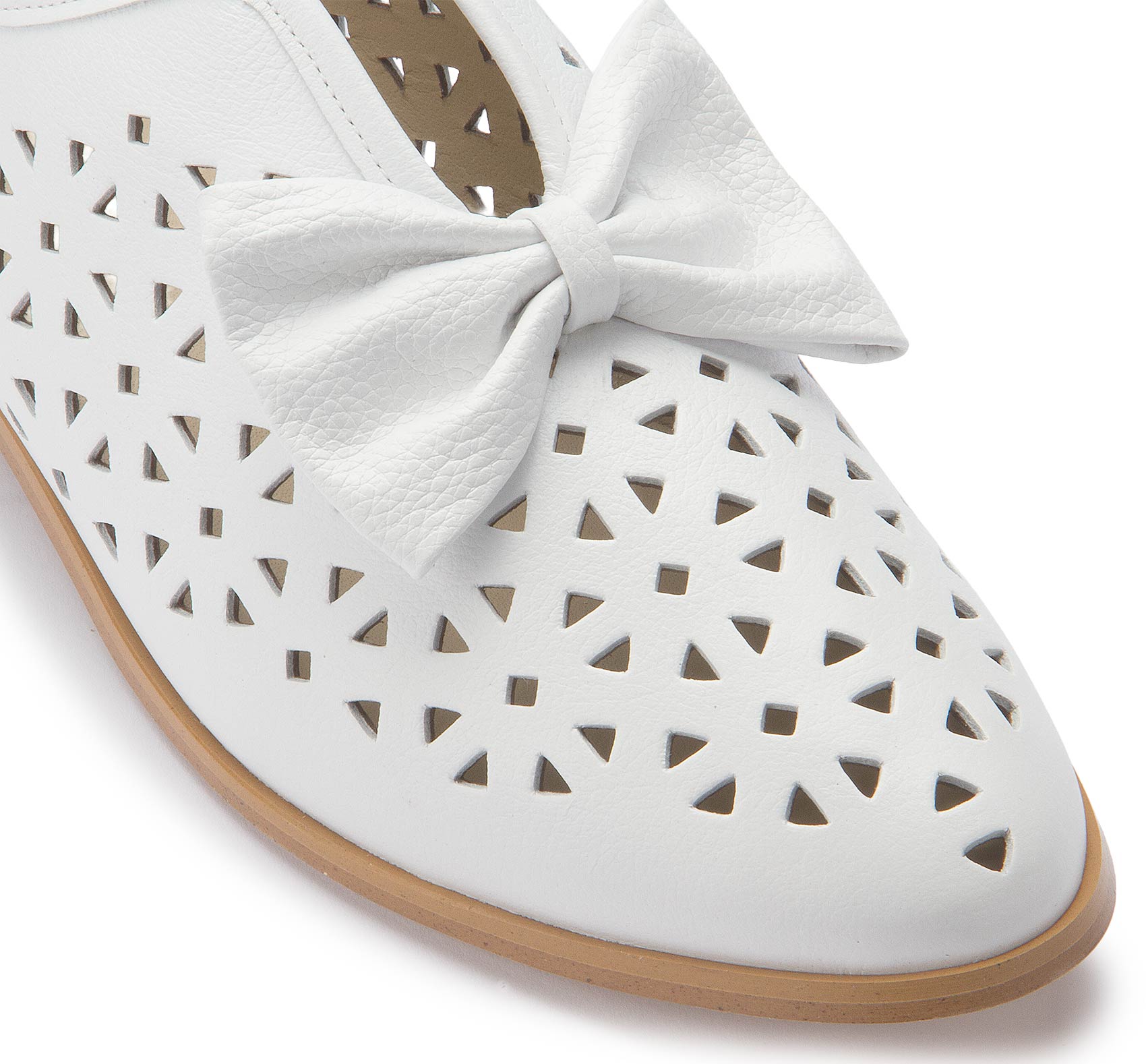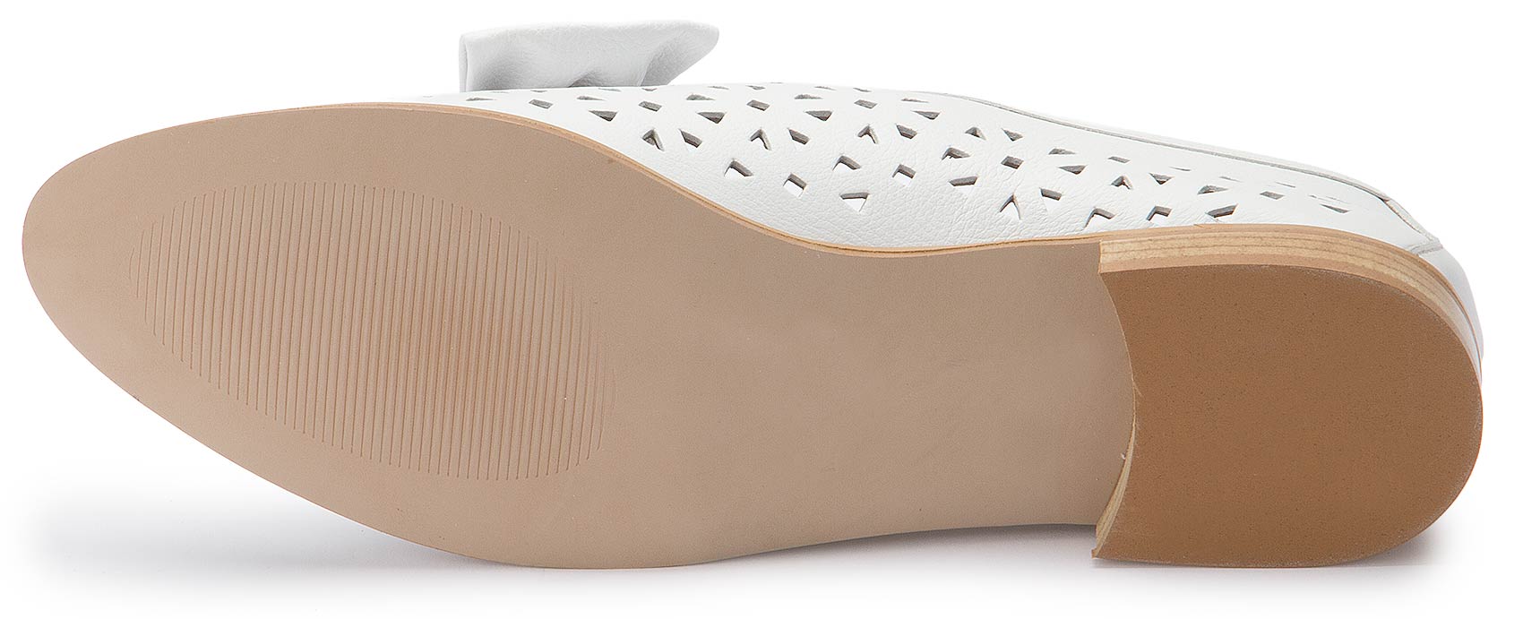 Der weiße Slipper von Bariello überzeugt mit feinem Leder, sommerlichen Lochdetails und einer charmant applizierten Schleife. Das weiche Leder-Innenfutter sorgt für angenehmen Tragekomfort – perfekt für warme Tage mit stilvollem Auftritt.
