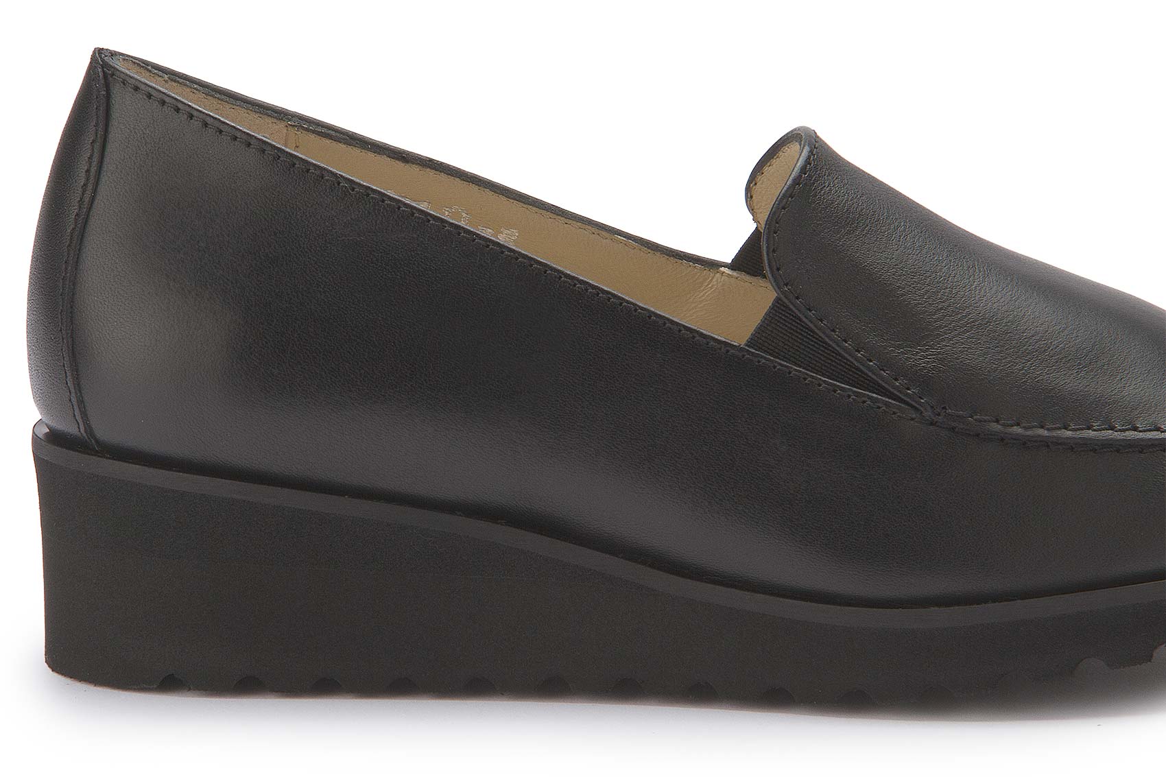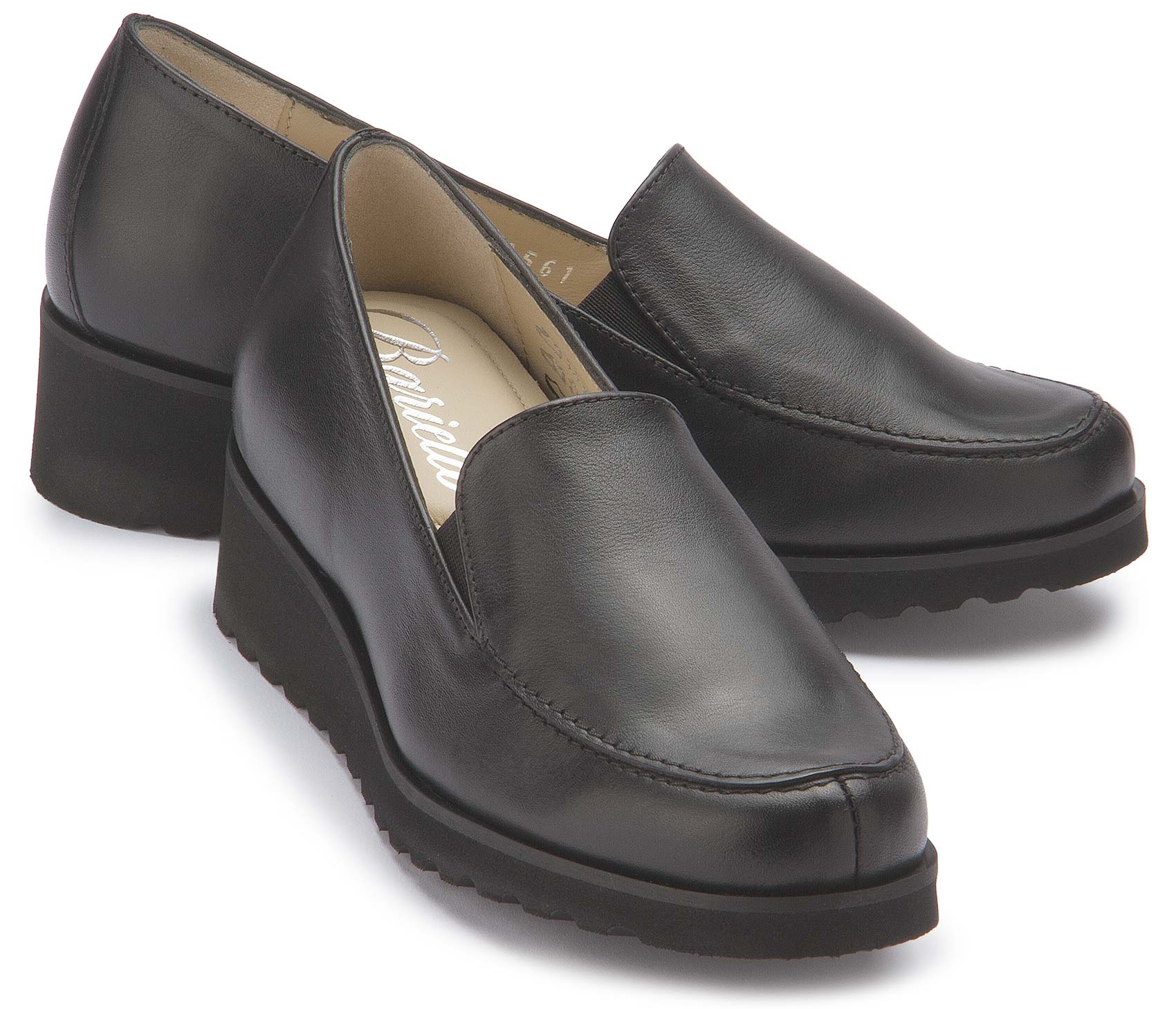 Der stilvolle Slipper von Bariello überzeugt durch sein klares Design und hochwertiges Glattleder. Der komfortable Blockabsatz und der elastische Einsatz an der Seite sorgen für ein angenehmes Tragegefühl – ideal für lange Tage im Büro oder unterwegs. Die dezente Plateausohle rundet den Schuh funktional und modern ab.