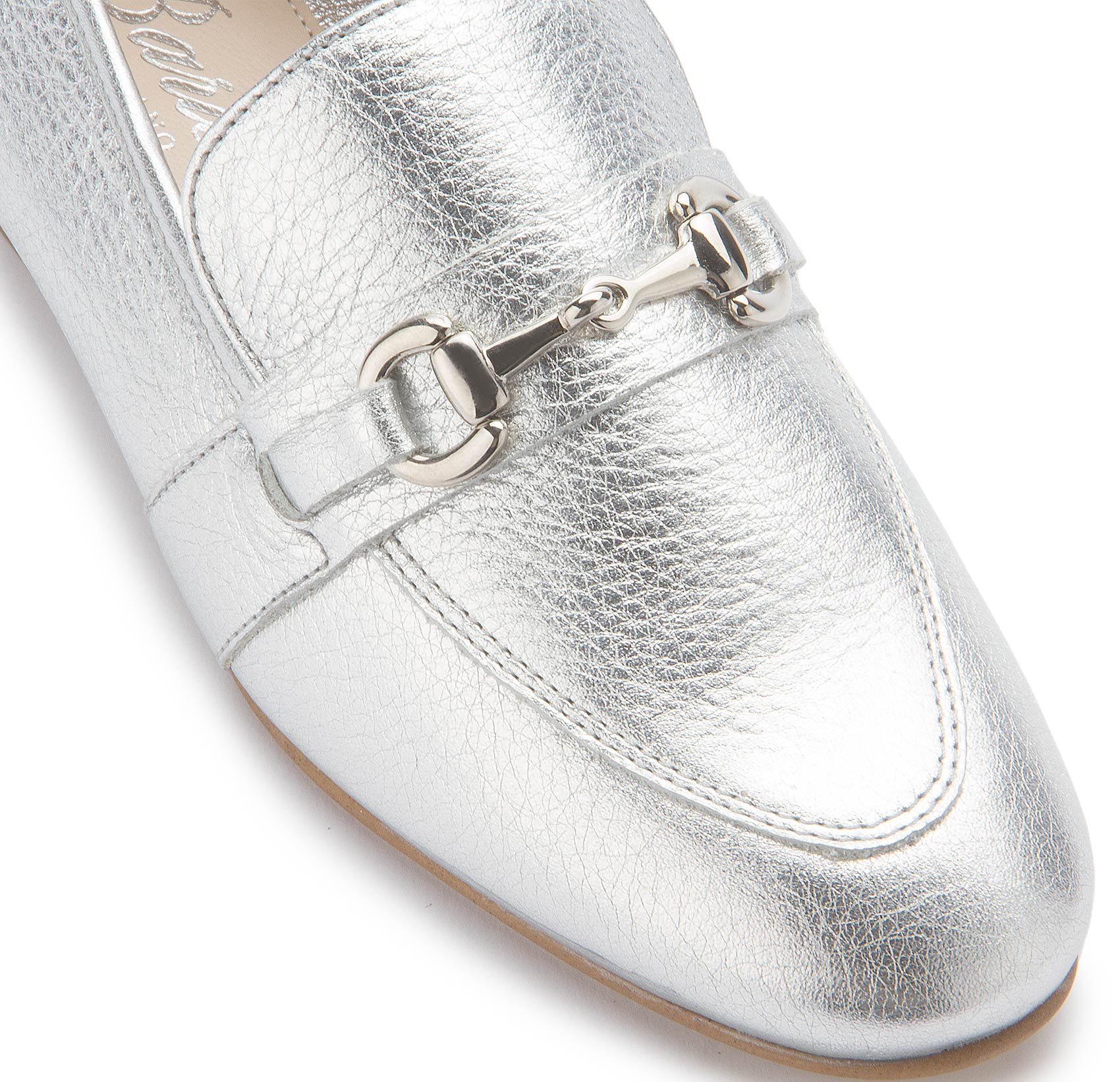 Die Bariello Slipper vereinen zeitlose Eleganz mit höchstem Komfort. Aus feinstem Glattleder gefertigt, präsentieren sie sich in einem coolen Silber. Das Innenmaterial besteht aus angenehmem Leder. Ein stilvolles Highlight ist die applizierte Trense. Perfekt für jede Gelegenheit - diese Slipper setzen ein modisches Statement und bieten Ihnen ein unvergleichliches Trageerlebnis.