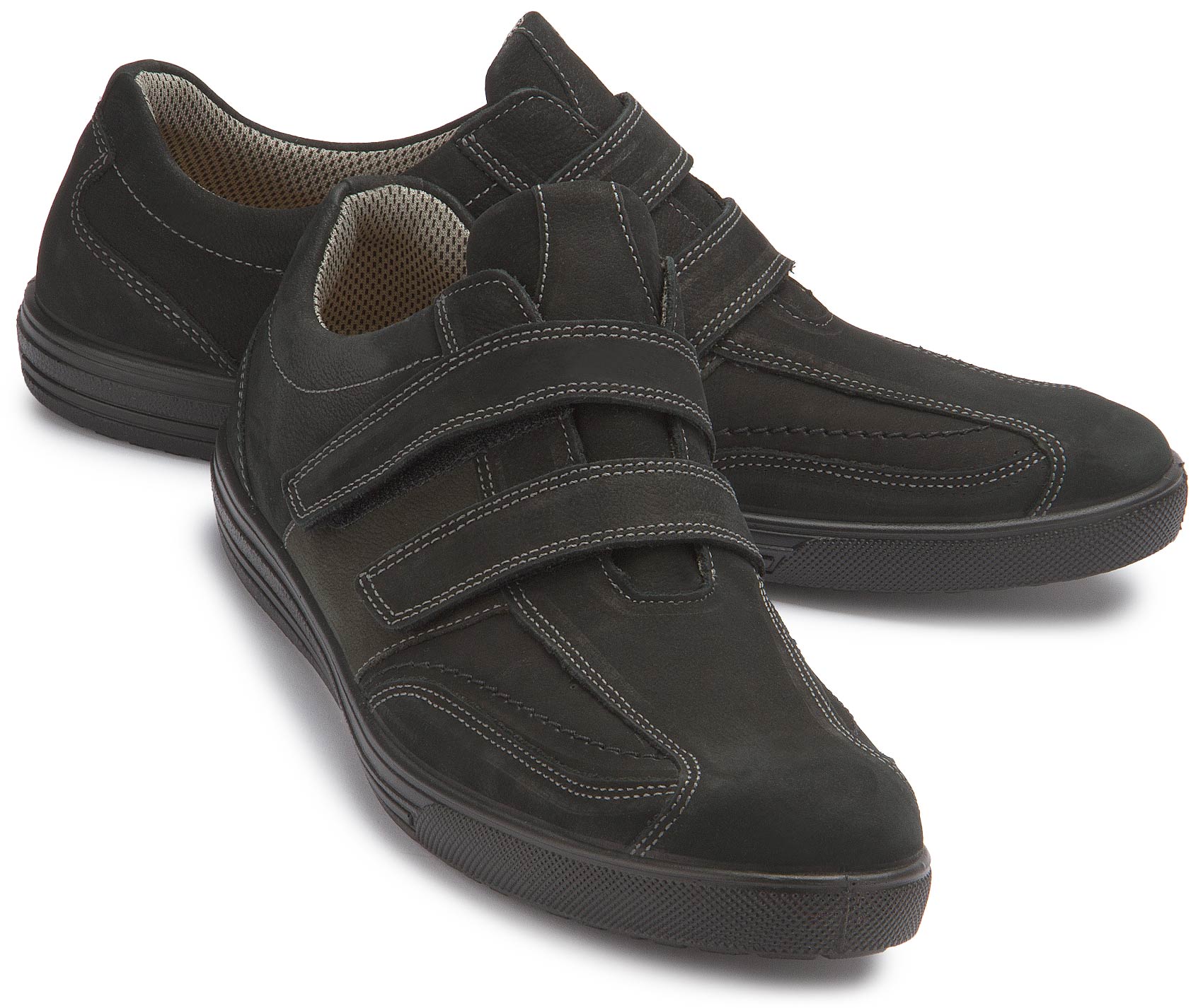 Hier präsentiert sich eine toller Slipper mit zwei Klettverschlüssen zum einfachen An-und Ausziehen. Das Obermaterial besteht aus Leder und der Tragekomfort lässt nicht zu Wünschen übrig.